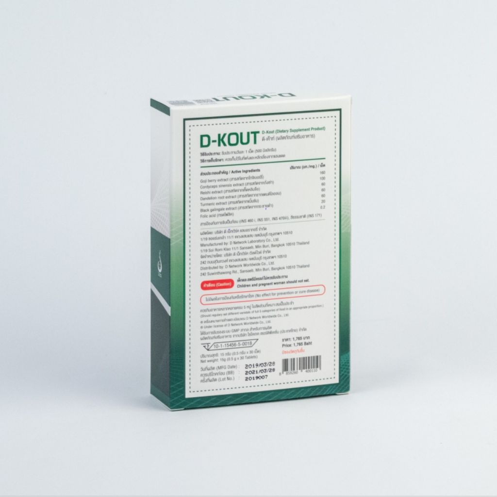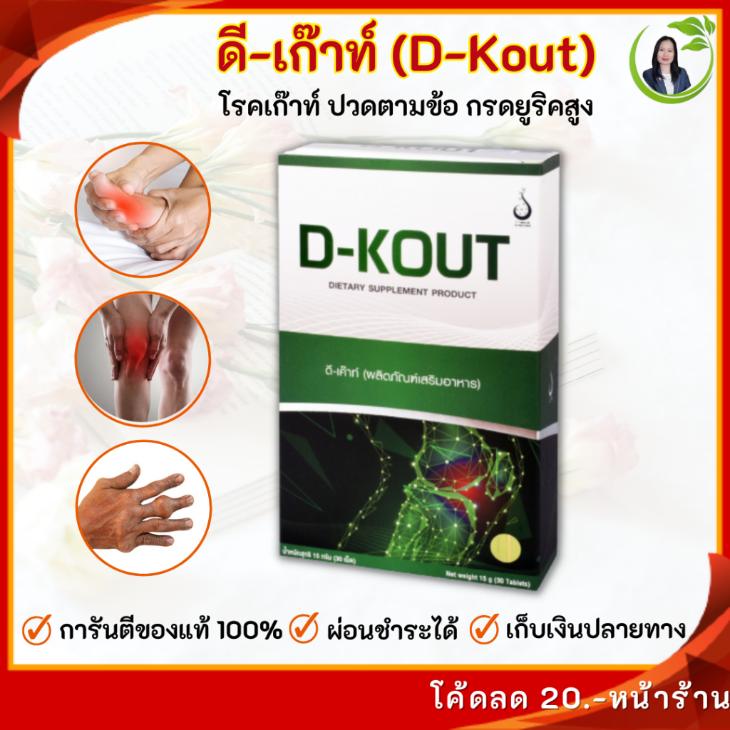 ดีเก๊าท์ (D-Kout) ฟื้นฟูโรคเก๊าท์ กรดยูริกสูง ปวดข้อเป็นๆหายๆ บำรุงไต ของแท้มีบาร์โค้ด