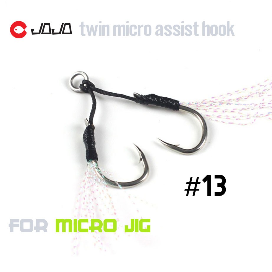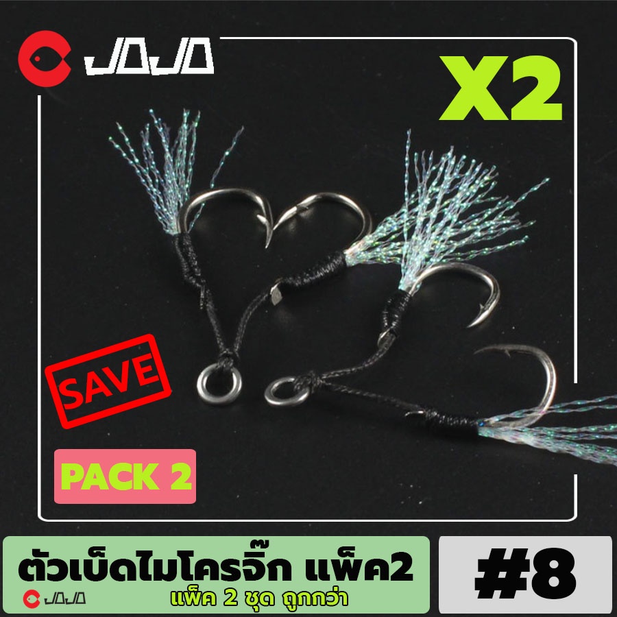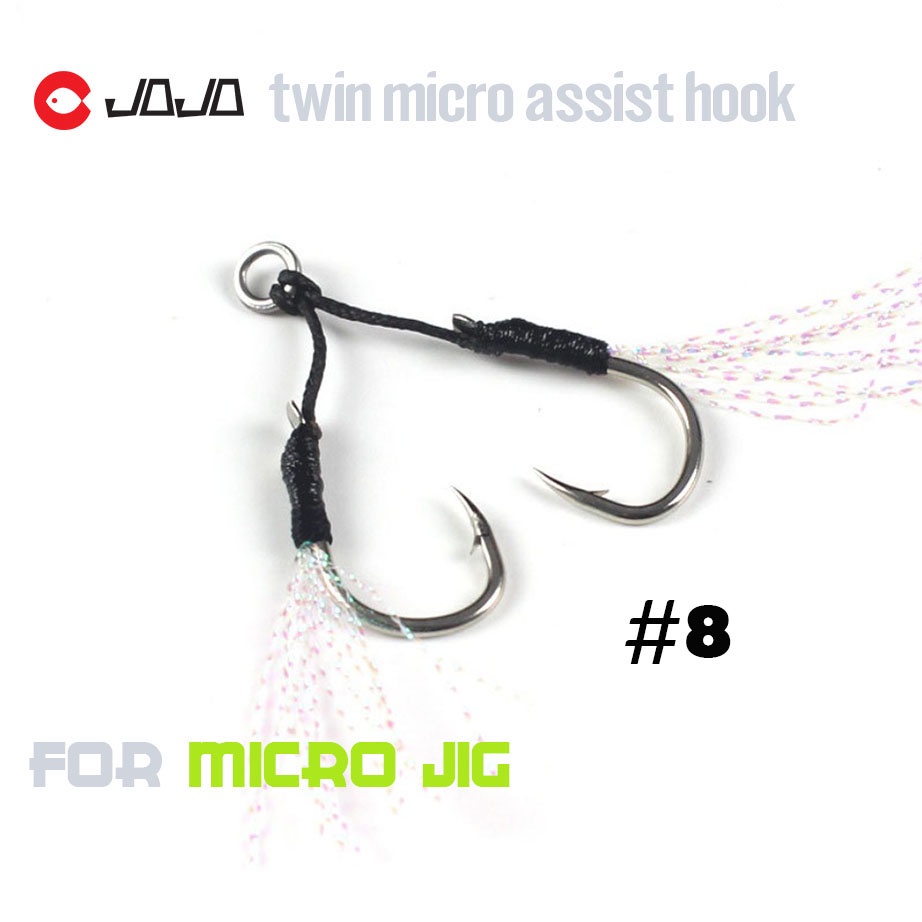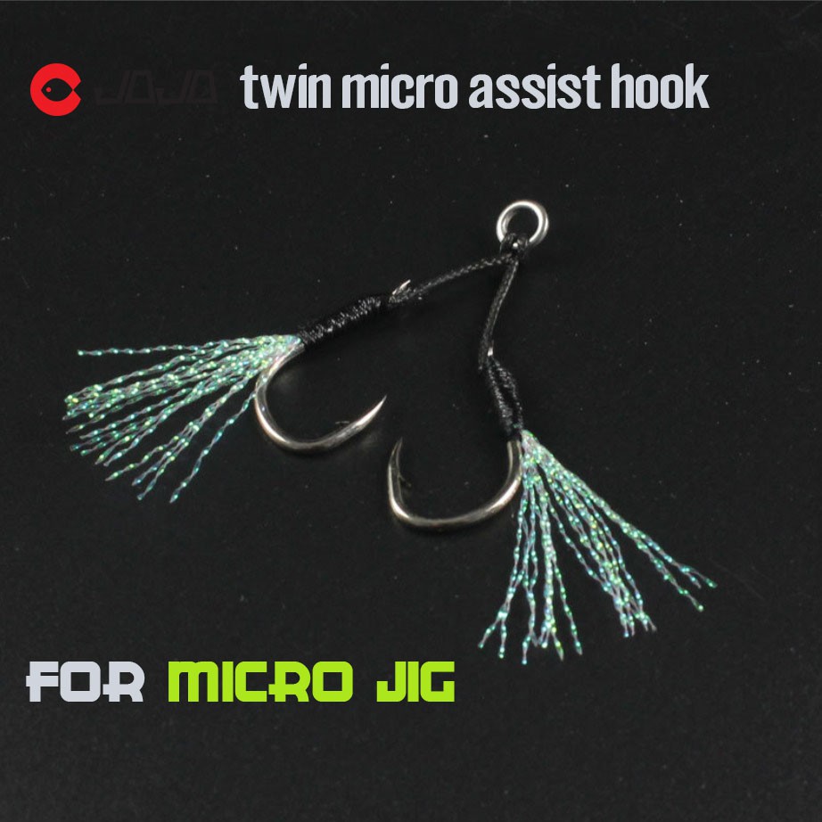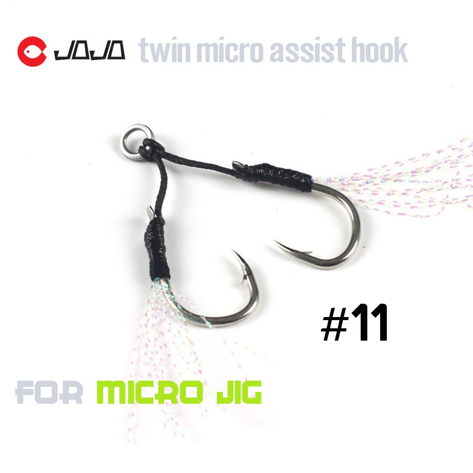 JOJO เบ็ดไมโครจิ๊ก แบบคู่ twin assist hook microjig เบอร์ 8 - 11 -13 สีดำ มีพู่แฟลช สำหรับ เหยื่อ ไมโครจิ๊ก ตัวเบ็ดจิ๊ก