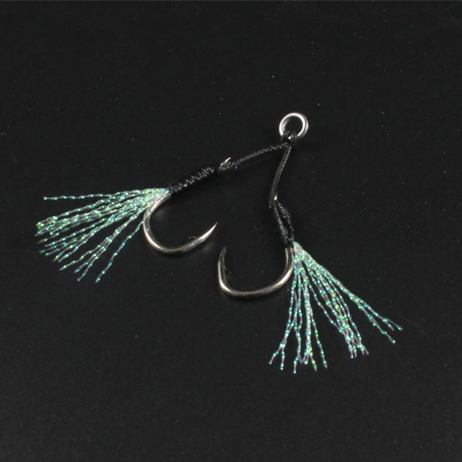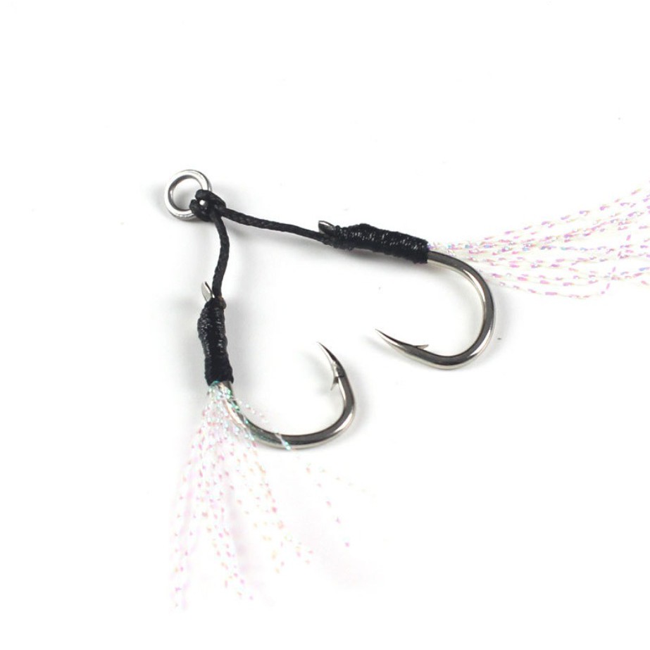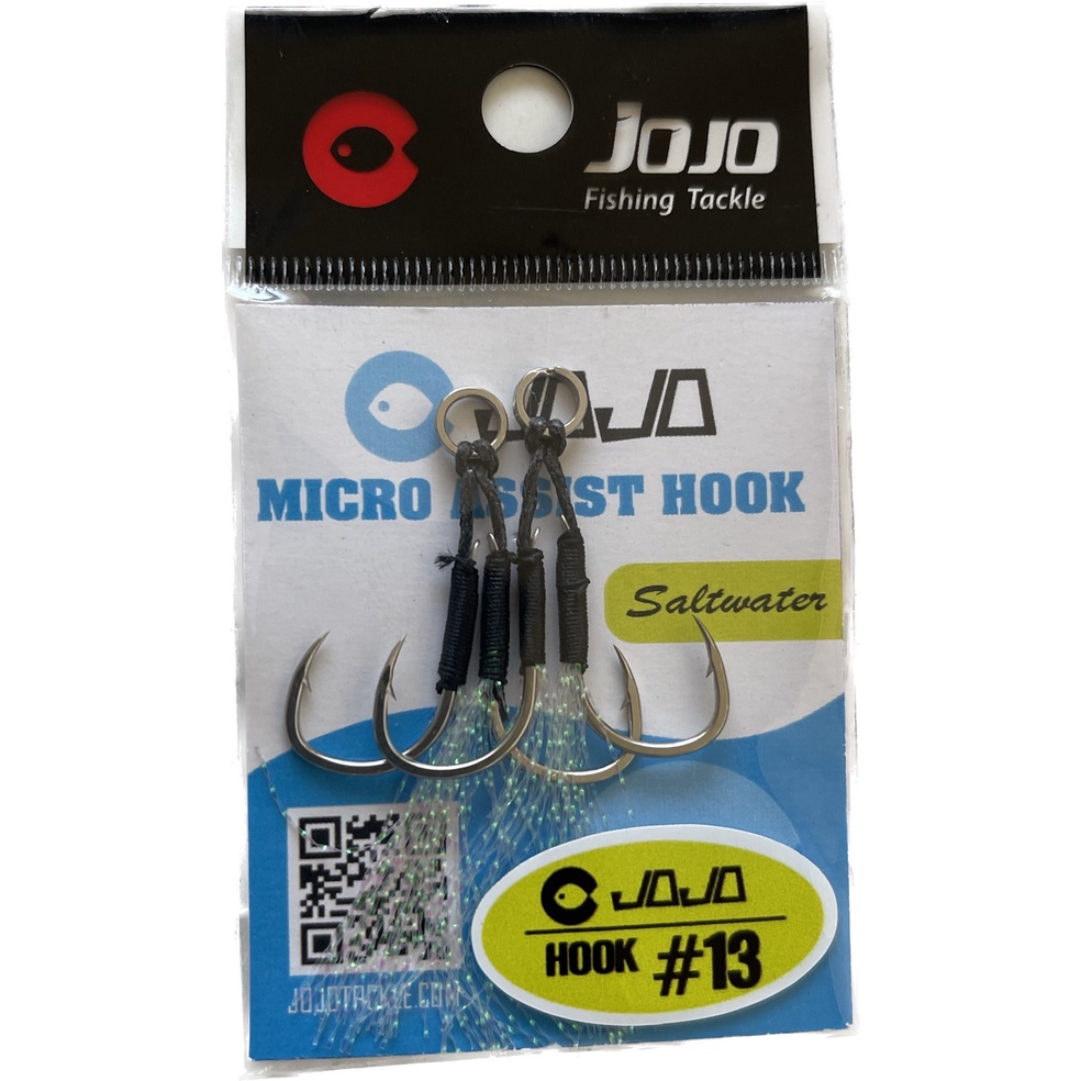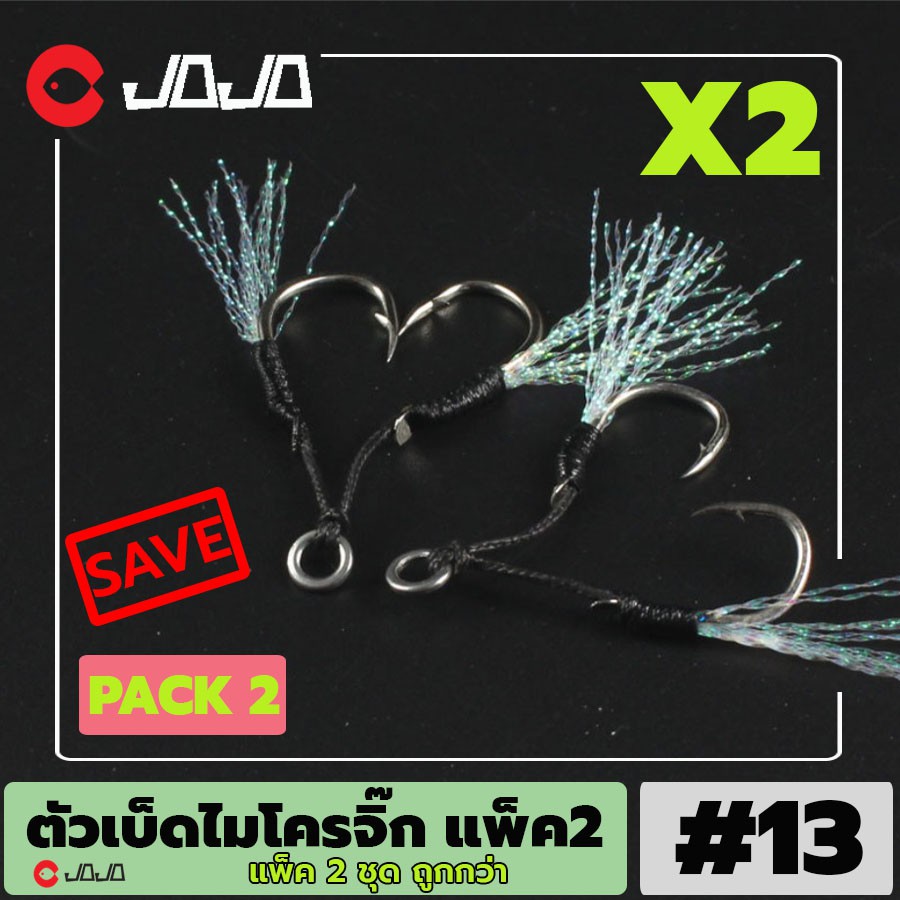 JOJO เบ็ดไมโครจิ๊ก แบบคู่ twin assist hook microjig เบอร์ 8 - 11 -13 สีดำ มีพู่แฟลช สำหรับ เหยื่อ ไมโครจิ๊ก ตัวเบ็ดจิ๊ก