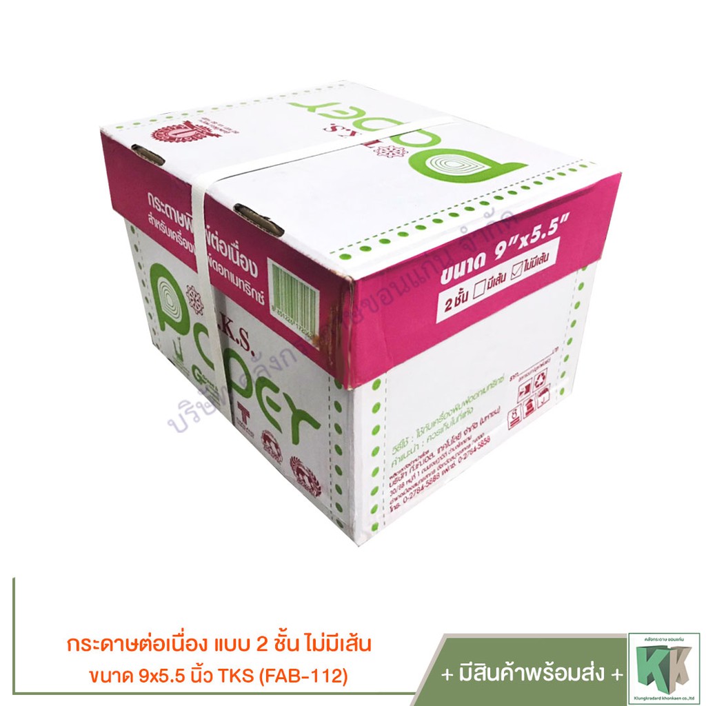 กระดาษต่อเนื่อง ขนาด 9x5.5 นิ้ว แบบ 2 ชั้น ไม่มีเส้น TKS (FAB-112) พิมพ์ต่อเนื่อง พิมพ์ใบเสร็จคาร์บอน | คลังกระดาษ