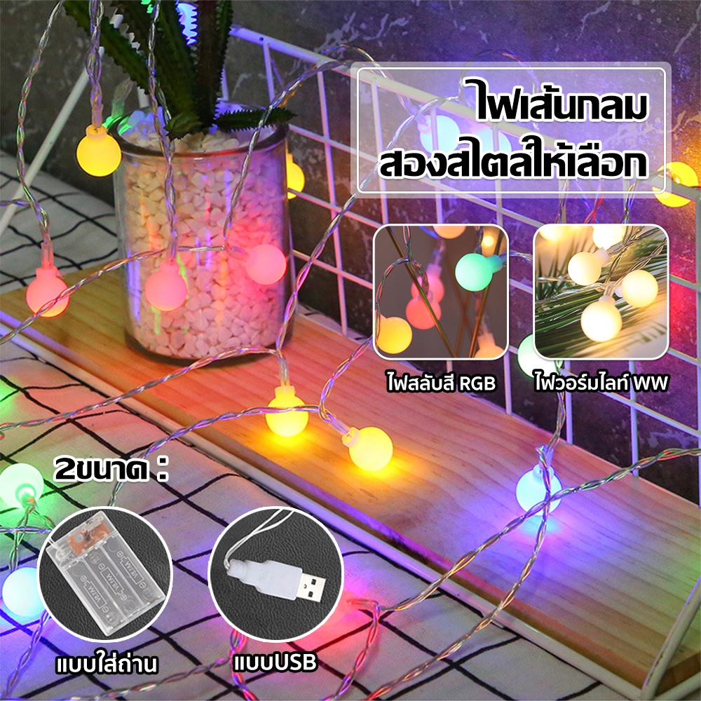 ไฟแต่งห้อง ไฟเชอรี่ ไฟติดห้องนอน LED Light ไฟประดับห้อง ไฟแต่งบ้าน มีไฟ10/20/40ดวง ไฟกระพริบ หลายสี