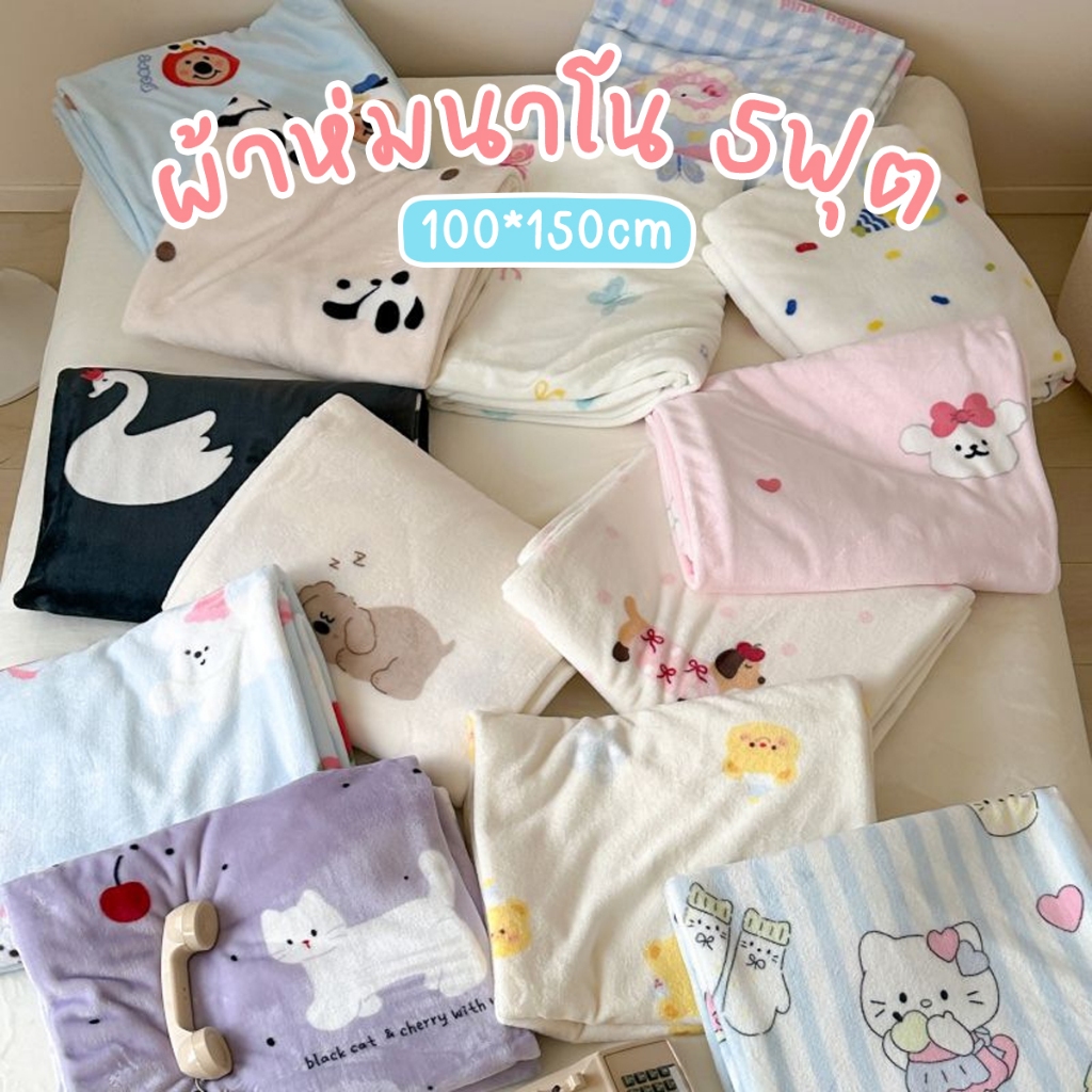 ผ้าห่ม ผ้าห่มนาโน 5ฟุต 100*150cm ผ้านุ่มนิ่ม เบาสบาย นุ่มฟิน พกพา เหมาะสำหรับโซฟาและเตียง