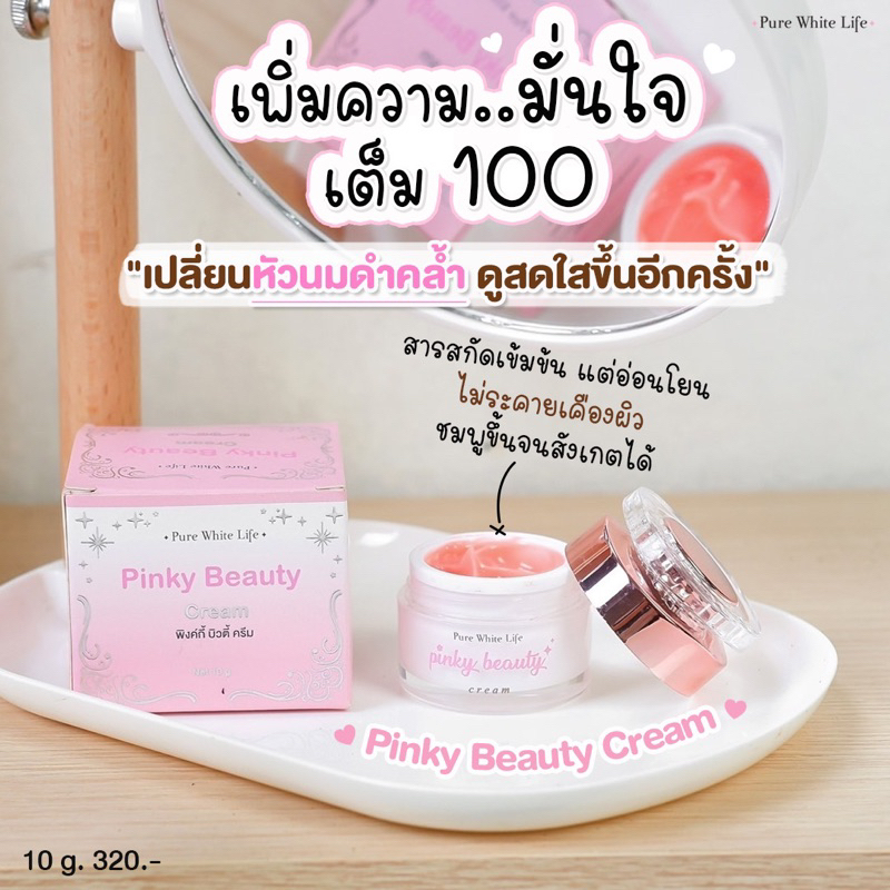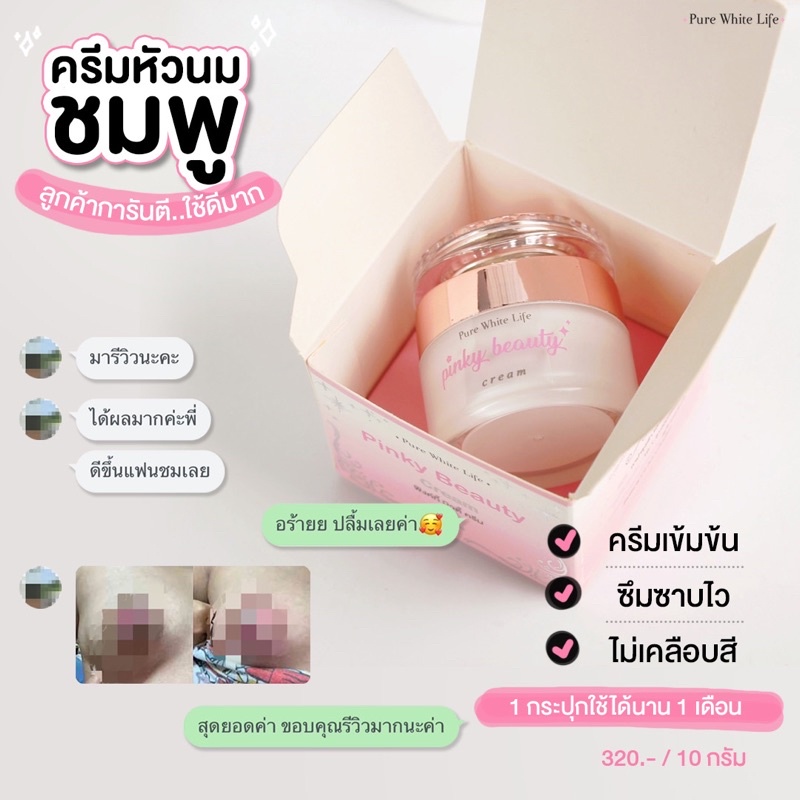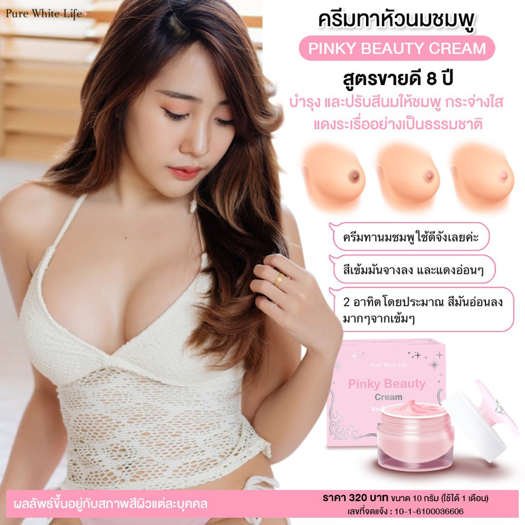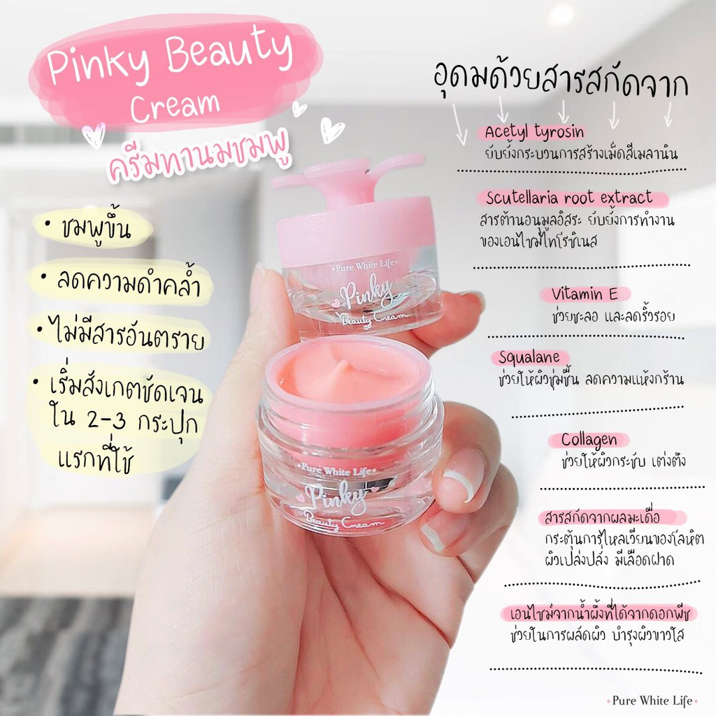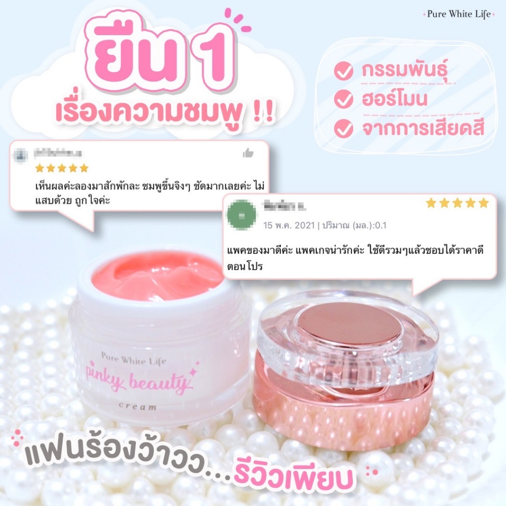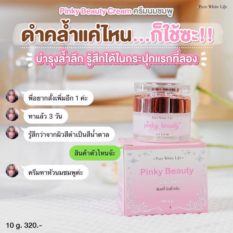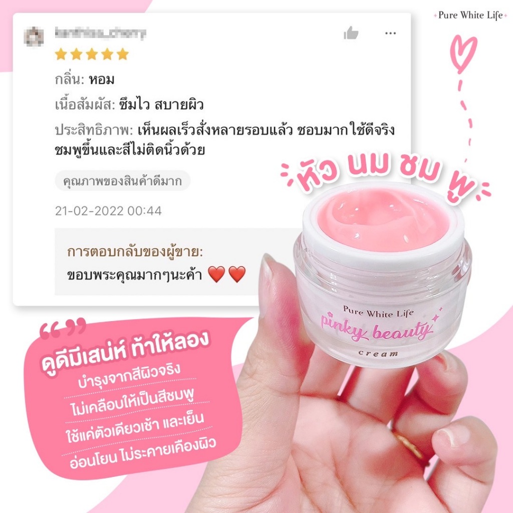 Purewhitelife Pinky Beauty Cream 10g เพียวไวท์ไลฟ์ ครีมบำรุงทรวงอก ให้แลดูอมชมพู อย่างเป็นธรรมชาติ อ่อนโยน