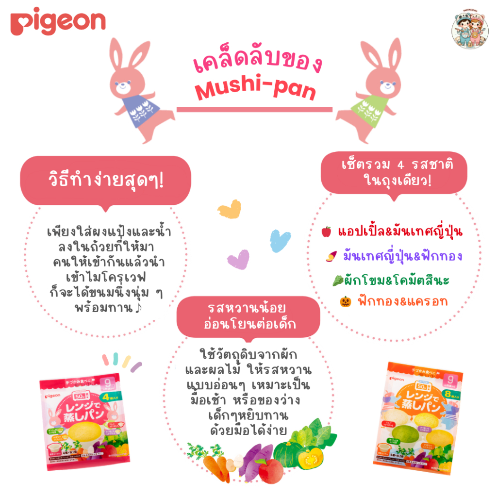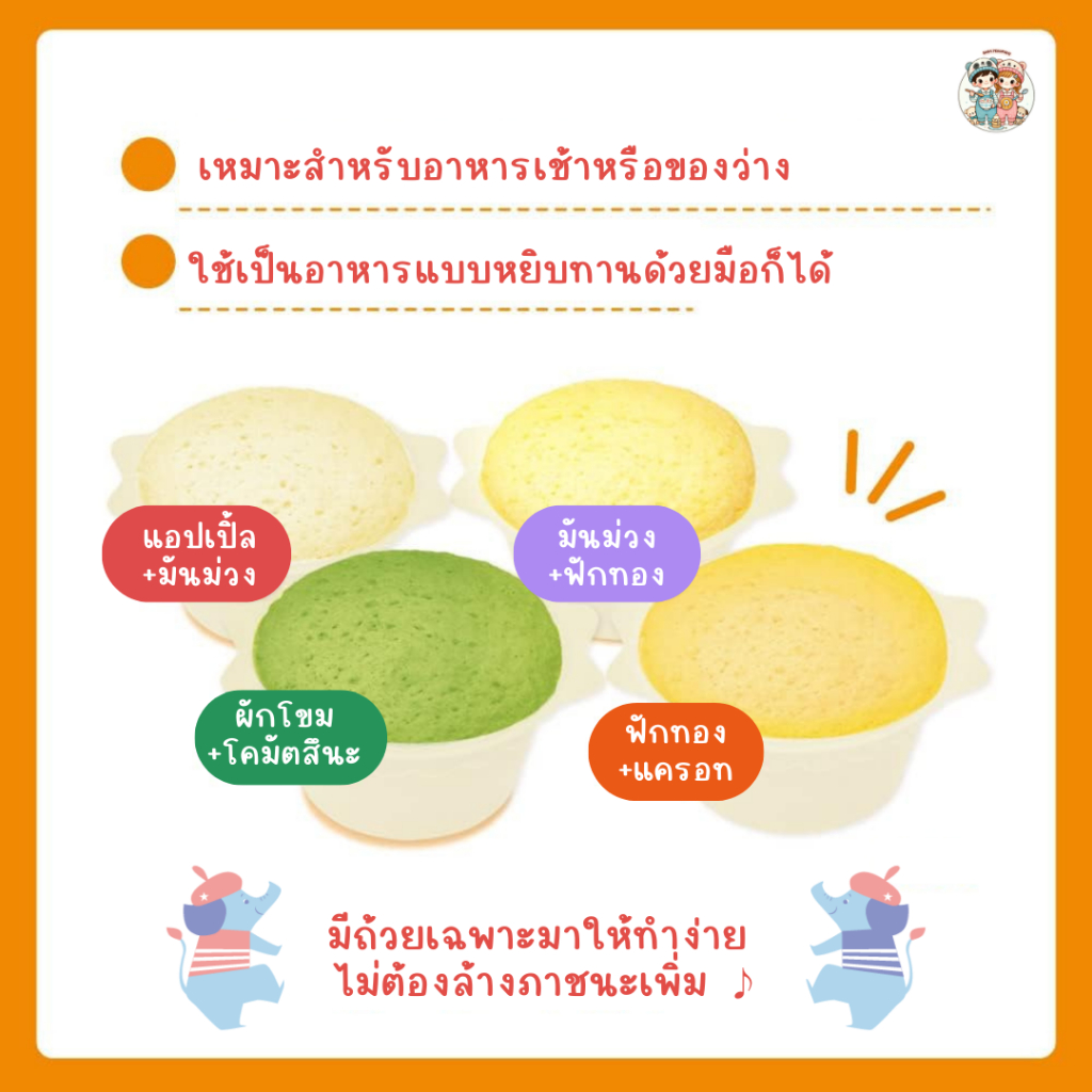 Pigeon Mushi-pan ขนมปังนึ่งไมโครเวฟ หวานน้อย มี 4 รสชาติใน 1 แพ็ก (พร้อมถ้วย) สำหรับเด็ก 9 เดือน+