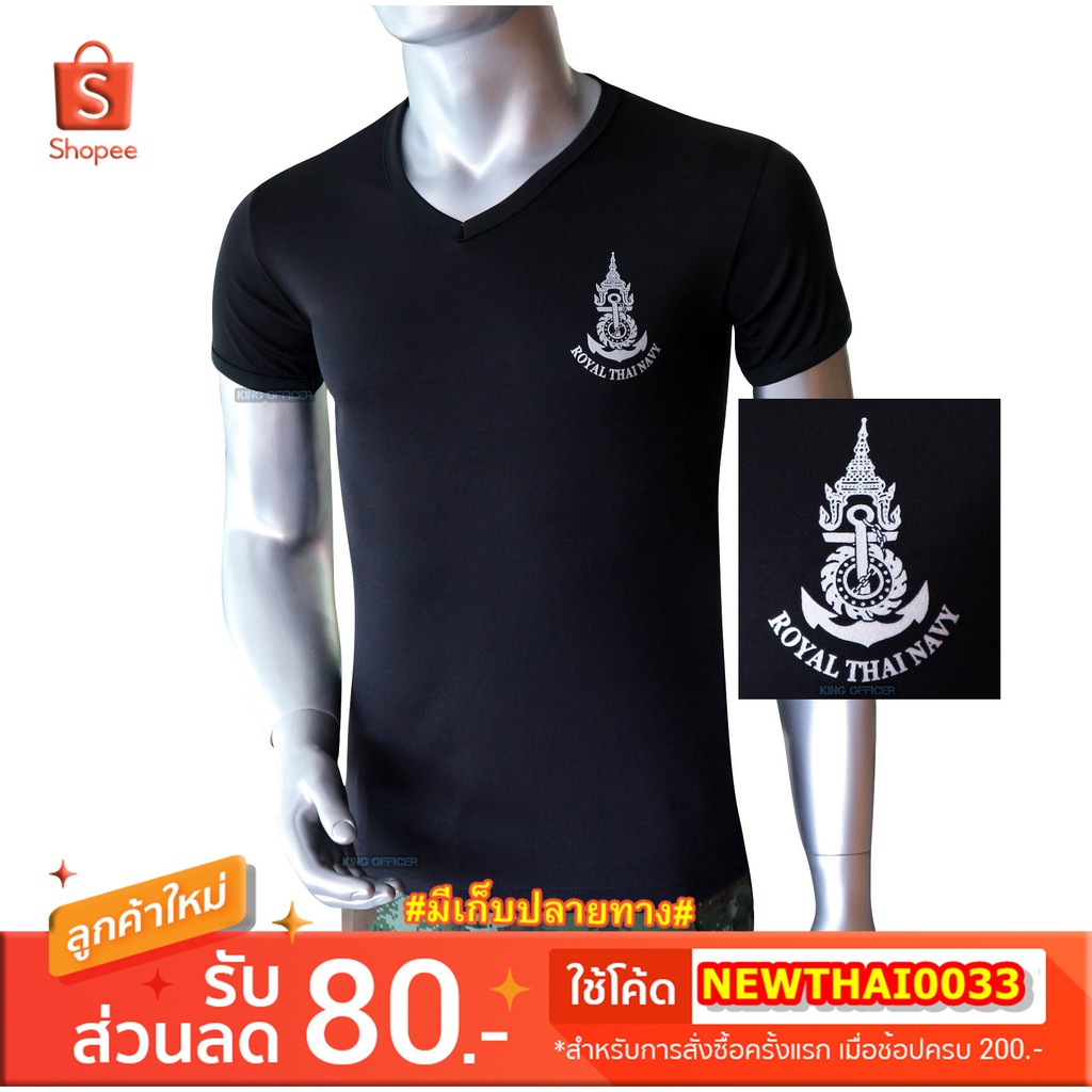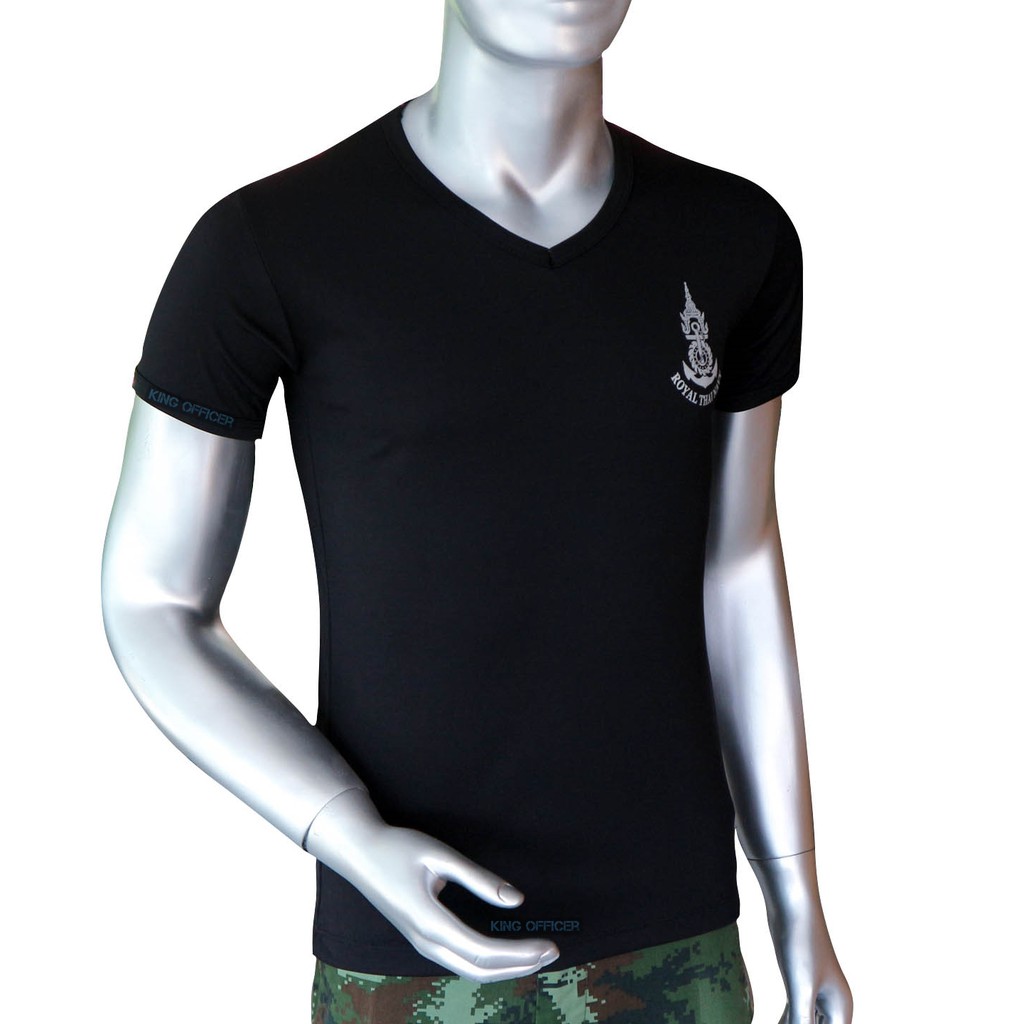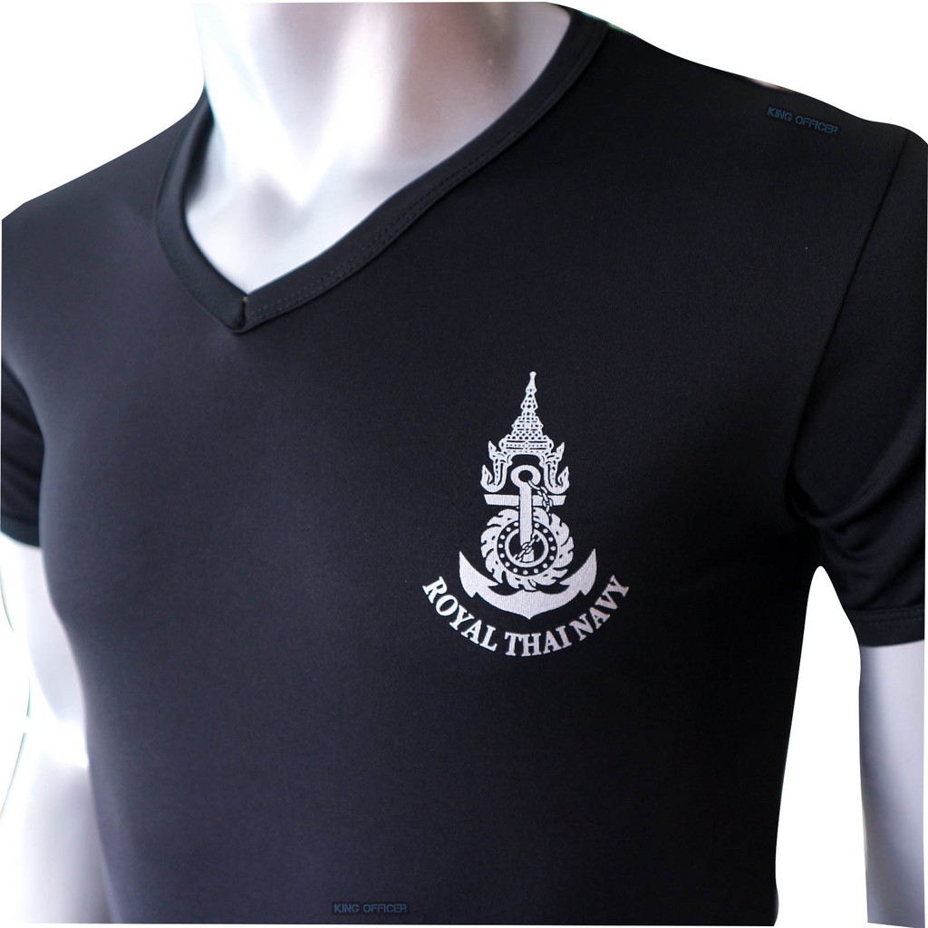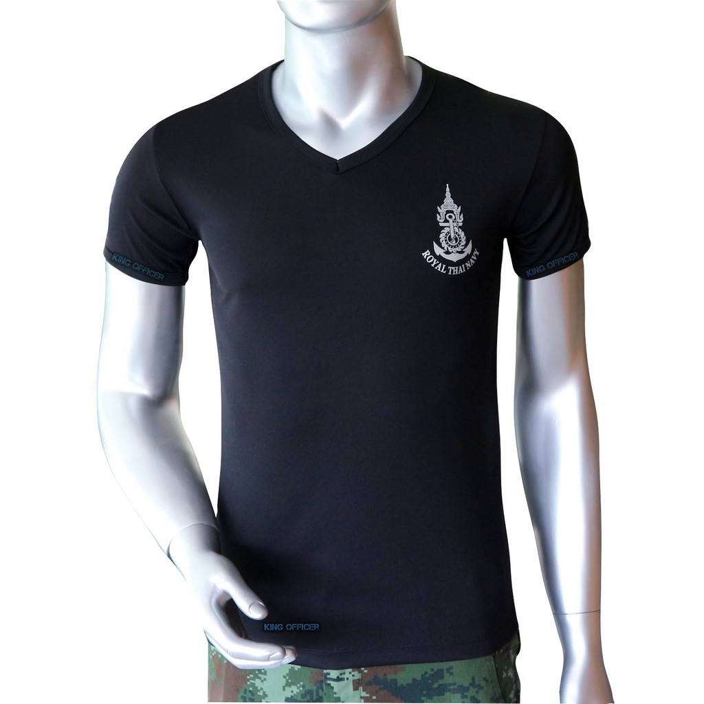 เสื้อยืด เสื้อซับใน ทหารเรือ สกรีนตรา กองทัพเรือ ( Royal Thai Navy) สีดำ คอวี (A335)