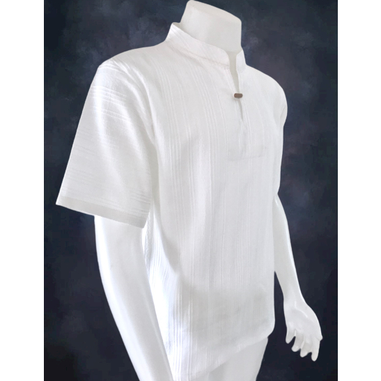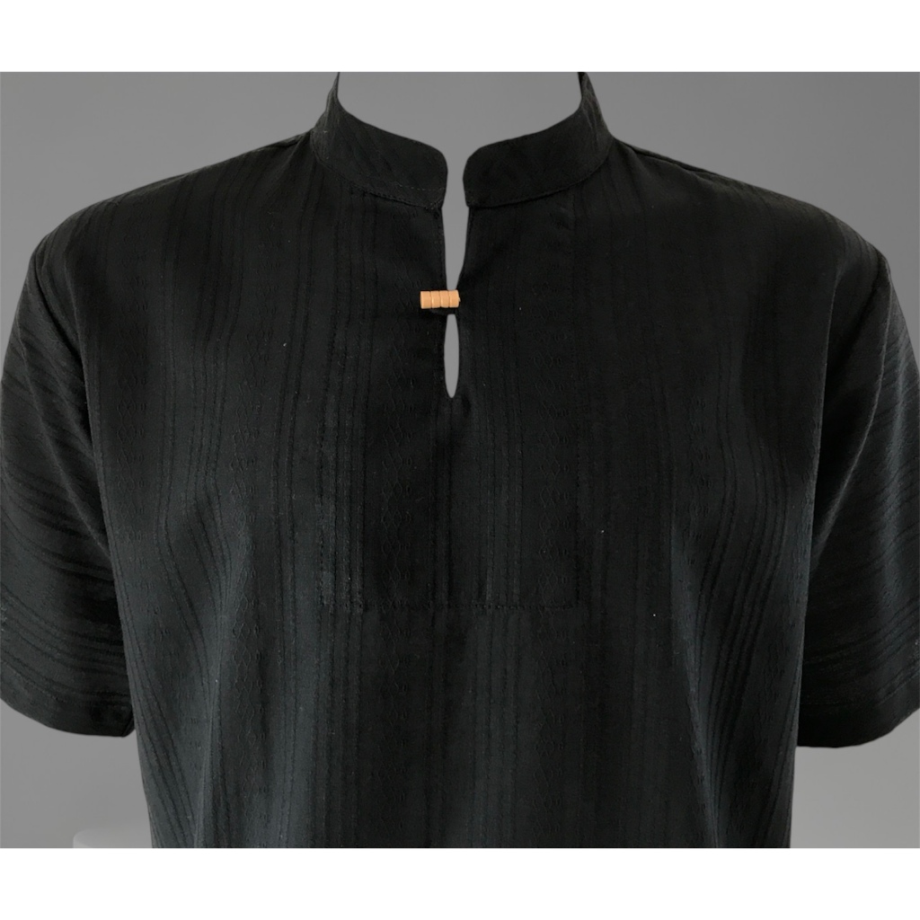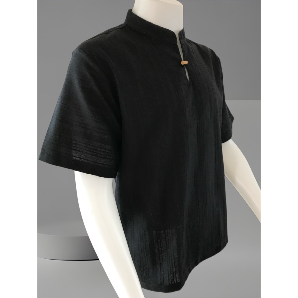 เสื้อผ้าฝ้าย ผ้าพื้นเมือง (DY9) คอจีน กระดุม 1 เม็ด แขนสั้น