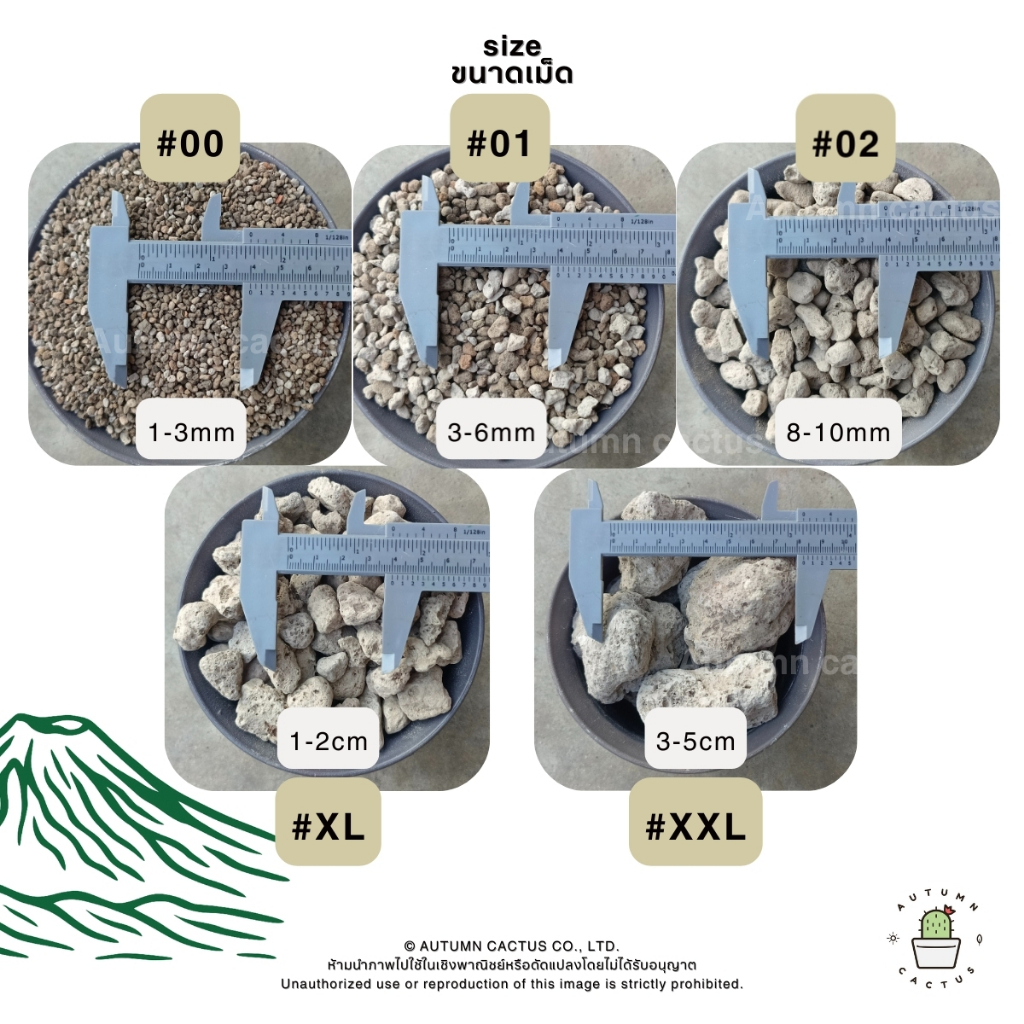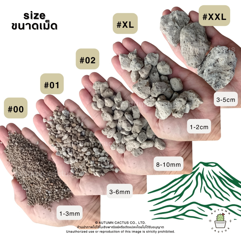 ⛰🌵 หินภูเขาไฟ วัสดุปลูกแคคตัส กระ บองเพชร รองก้นกระถาง ผสมดินปลูก หินทำถุงหอม เบอร์00 เบอร์01 เบอร์02 XL- XXL