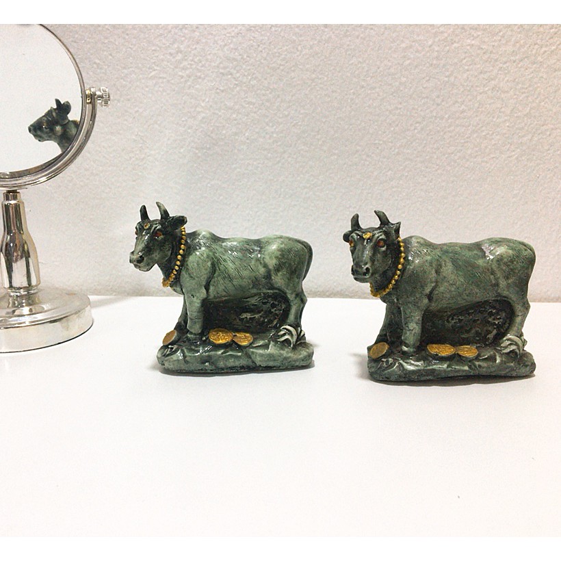 ปูนปั้น ฉลู วัว ปีนักษัตร 2 ตัว(สีหยกเขียว)