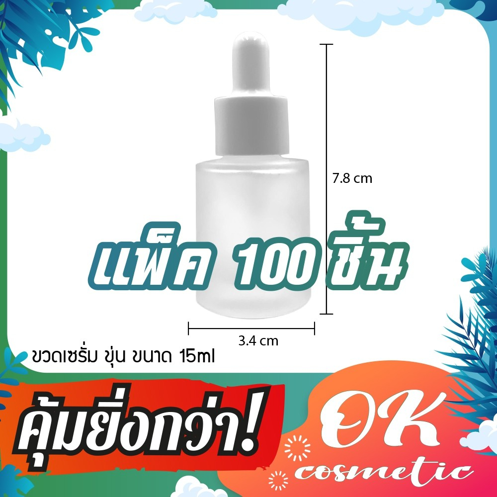 [COSS](แพ็ค100) ขวดแก้วดรอปเปอร์หัวบีบหยด ขนาด 15ml (คอตัด ฝาขาวเรียบจุกขาว) ขวดแก้วใส ขวดแก้วขุ่น หัวหยด