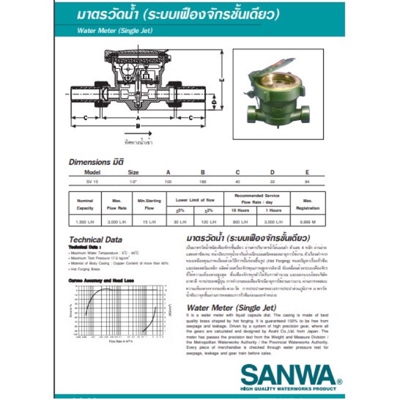 SANWA-Duss มาตรวัดน้ำ มิเตอร์น้ำ มาตรน้ำ มิเตอร์ 1/2" (4หุน) มาตรน้ำ