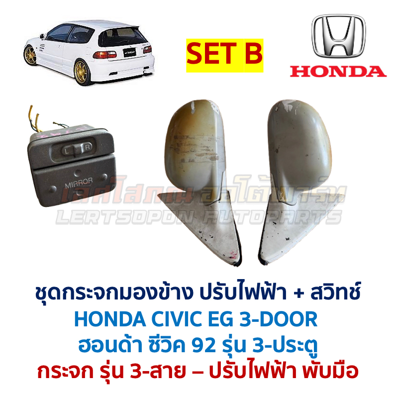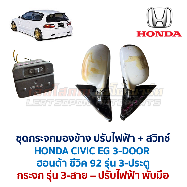 กระจกมองข้าง ปรับไฟฟ้า พร้อม สวิทช์ ฮอนด้า ซีวิค 3ดอ HONDA CIVIC EG 1992 3-Door (อะไหล่แท้ มือสองญี่ปุ่น มีรับประกัน)