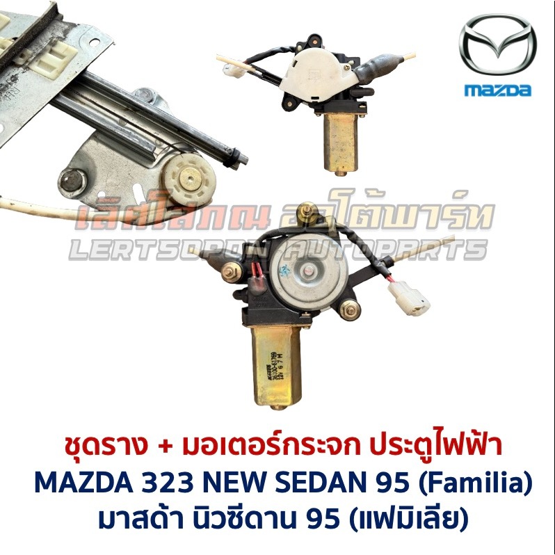 ชุดมอเตอร์ + รางกระจก ประตูไฟฟ้า มาสด้า นิวซีดาน MAZDA 323 NEW SEDAN 95 FAMILIA ครบชุด (อะไหล่แท้ มือสองญี่ปุ่น สภาพดี)