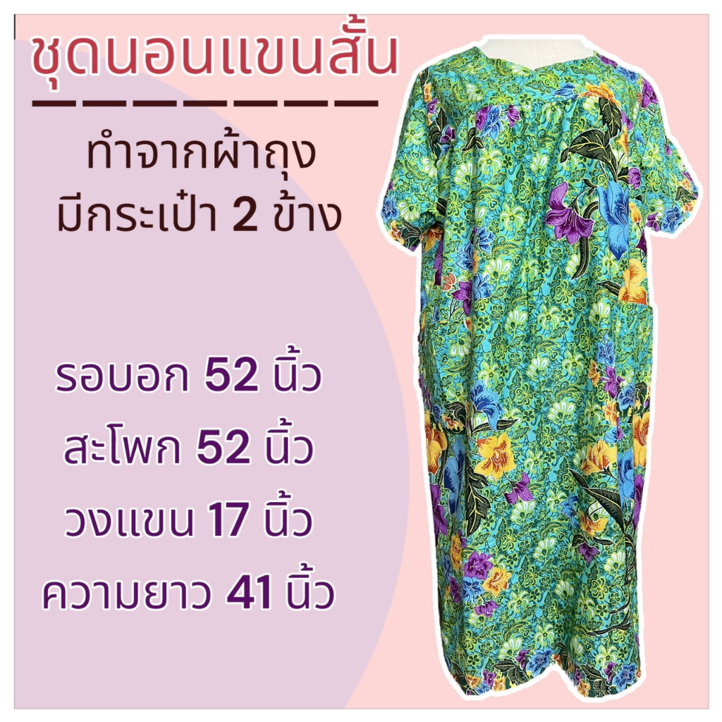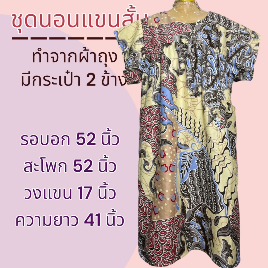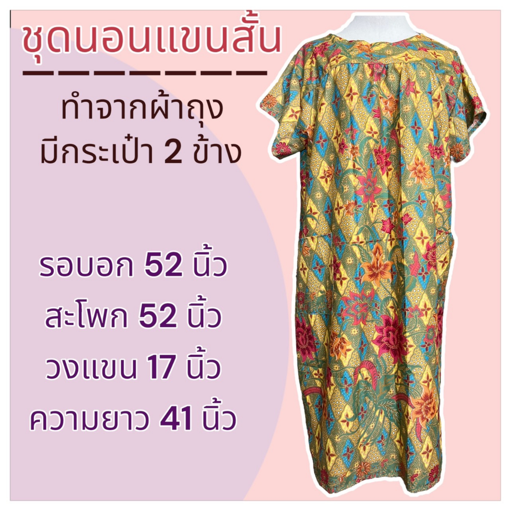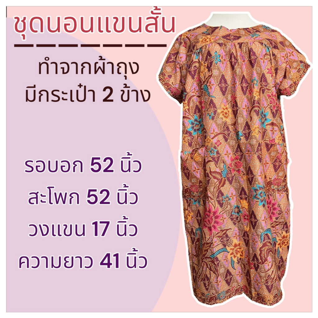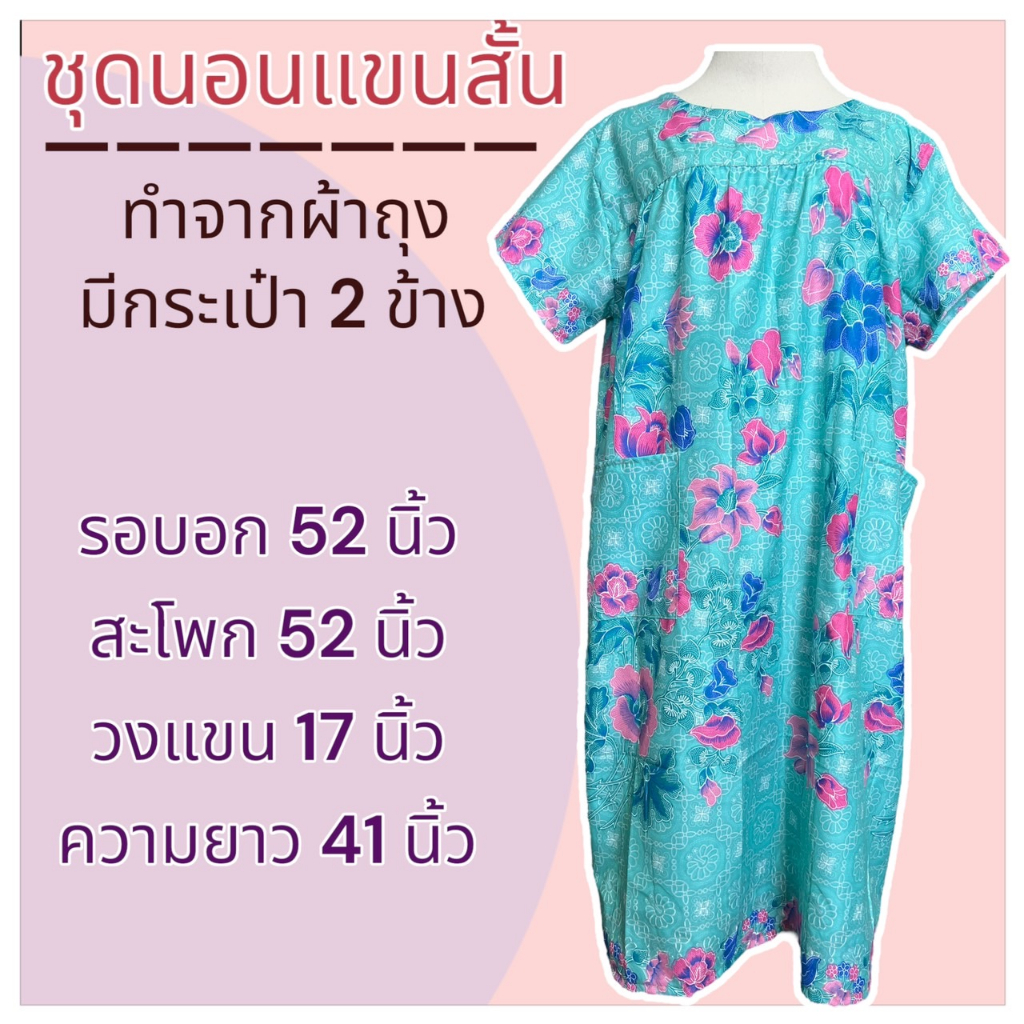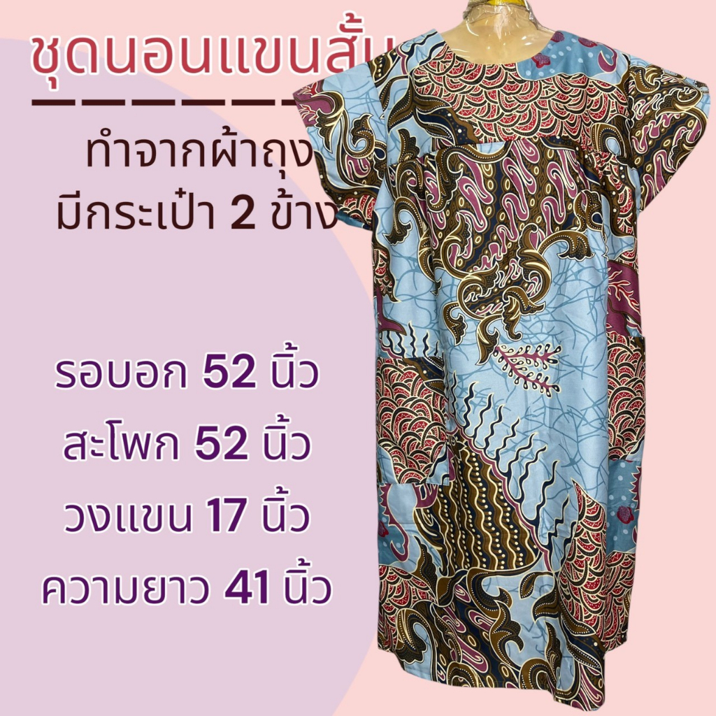 ชุดนอน กระโปรง แขนสั้น ทำจากผ้าถุง ไซส์ใหญ่ ผ้าคอตตอน ผ้านิ่มใส่สบาย B01