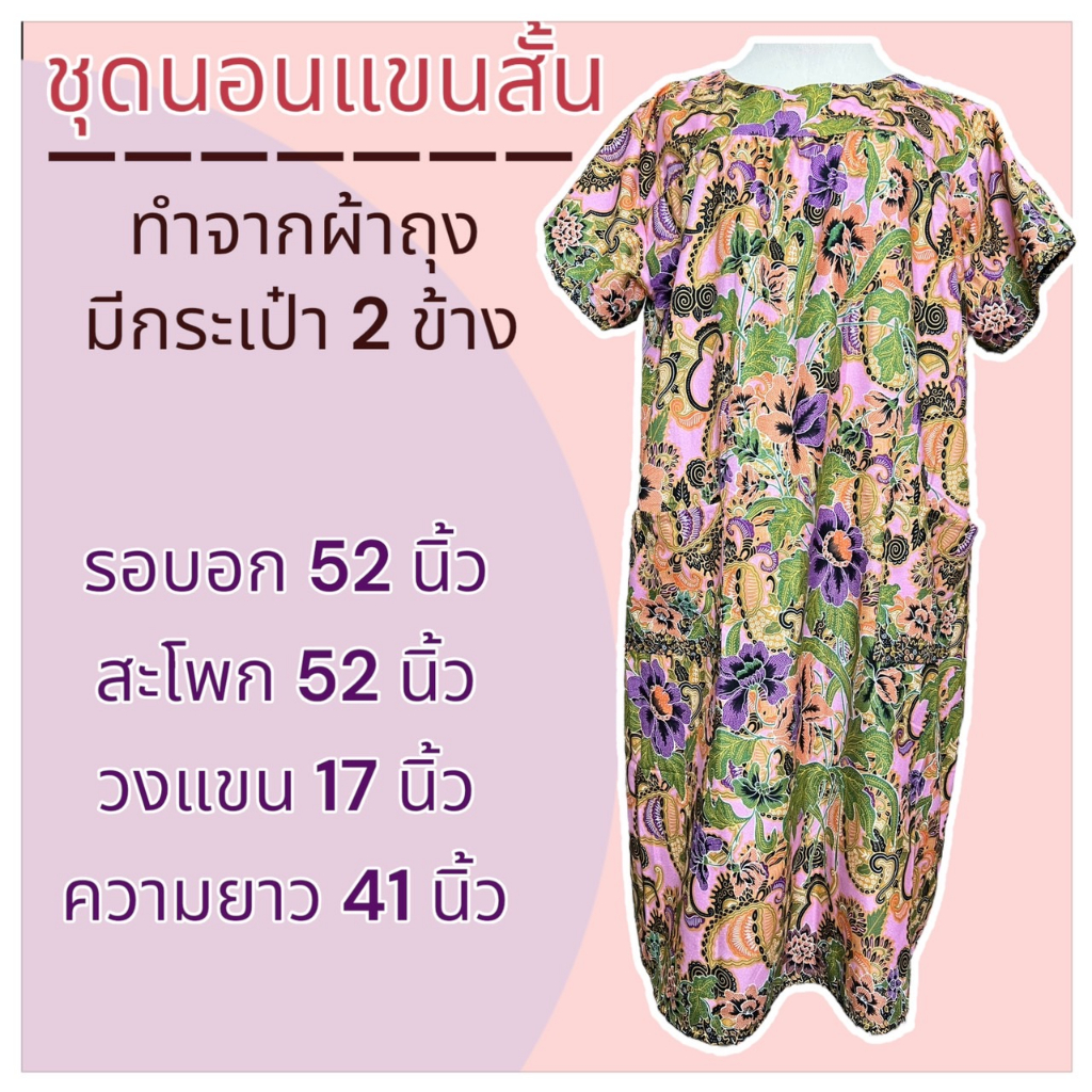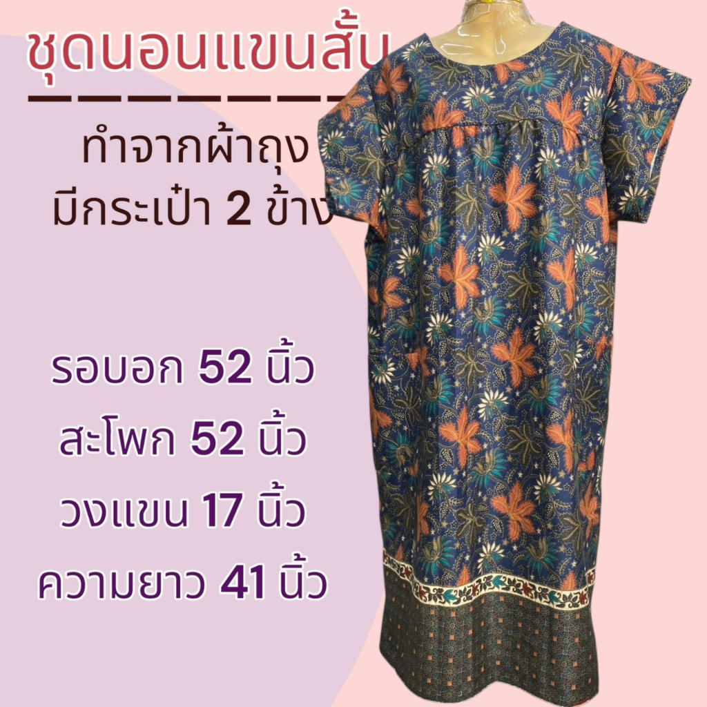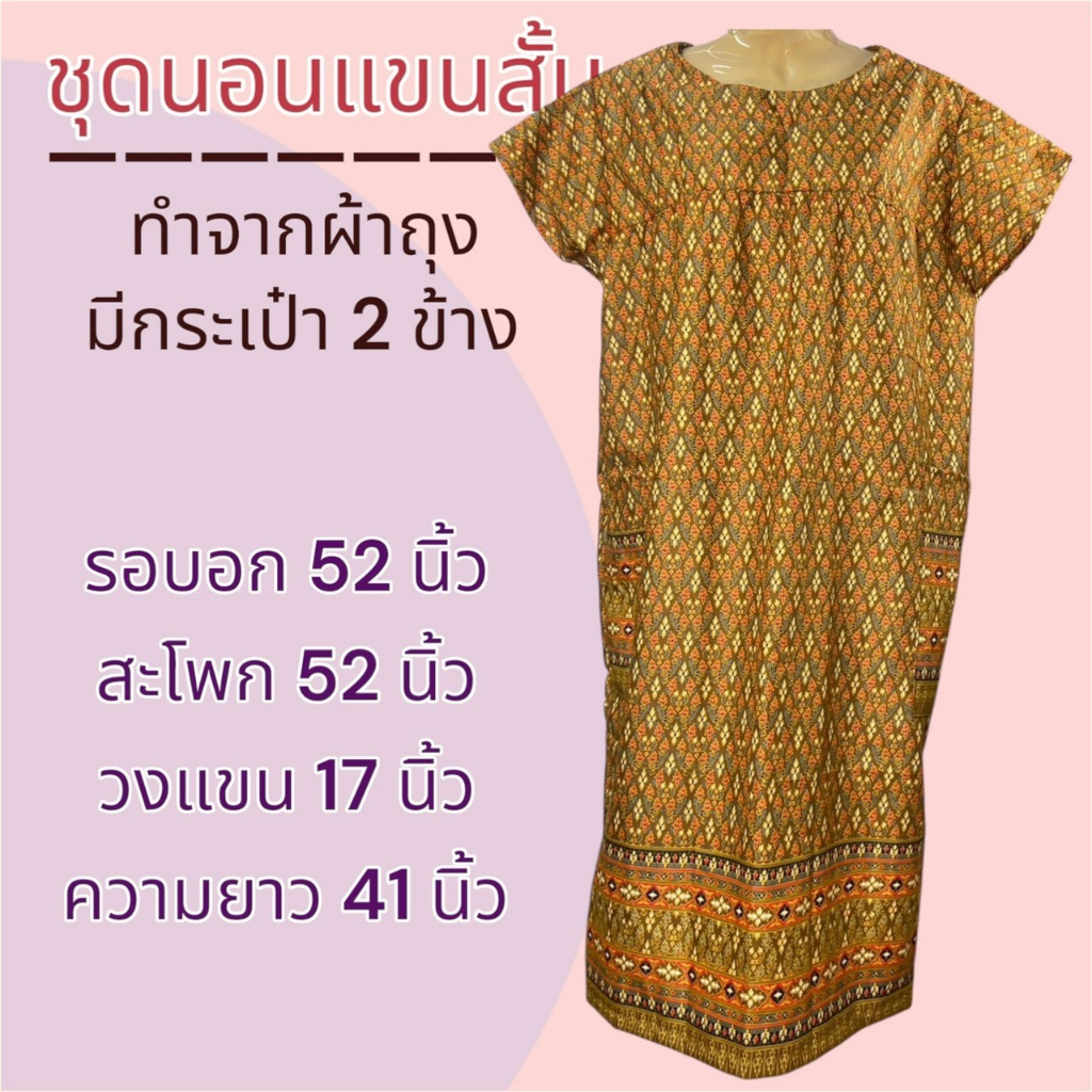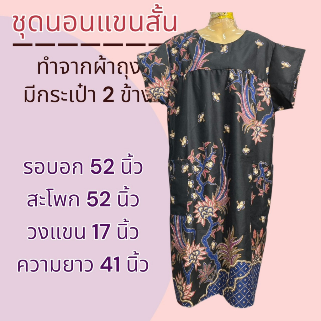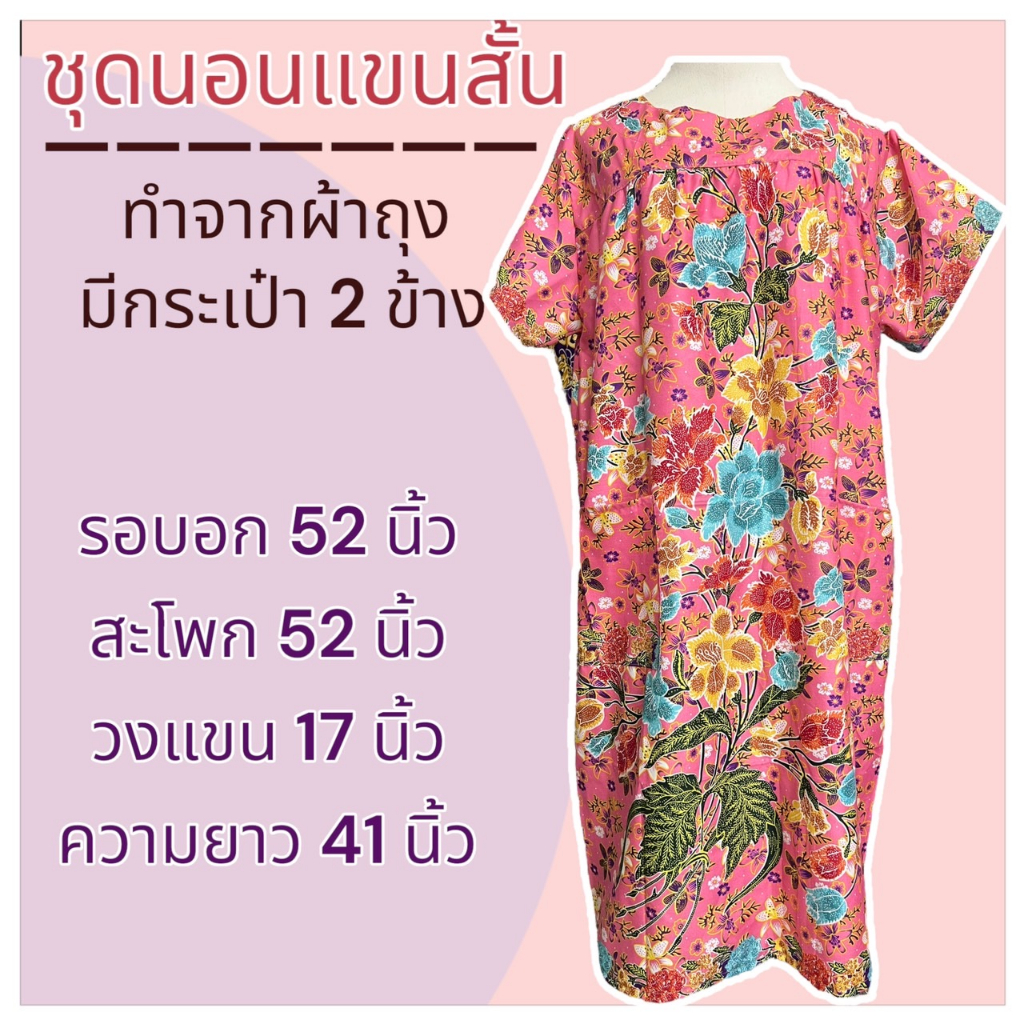 ชุดนอน กระโปรง แขนสั้น ทำจากผ้าถุง ไซส์ใหญ่ ผ้าคอตตอน ผ้านิ่มใส่สบาย B01