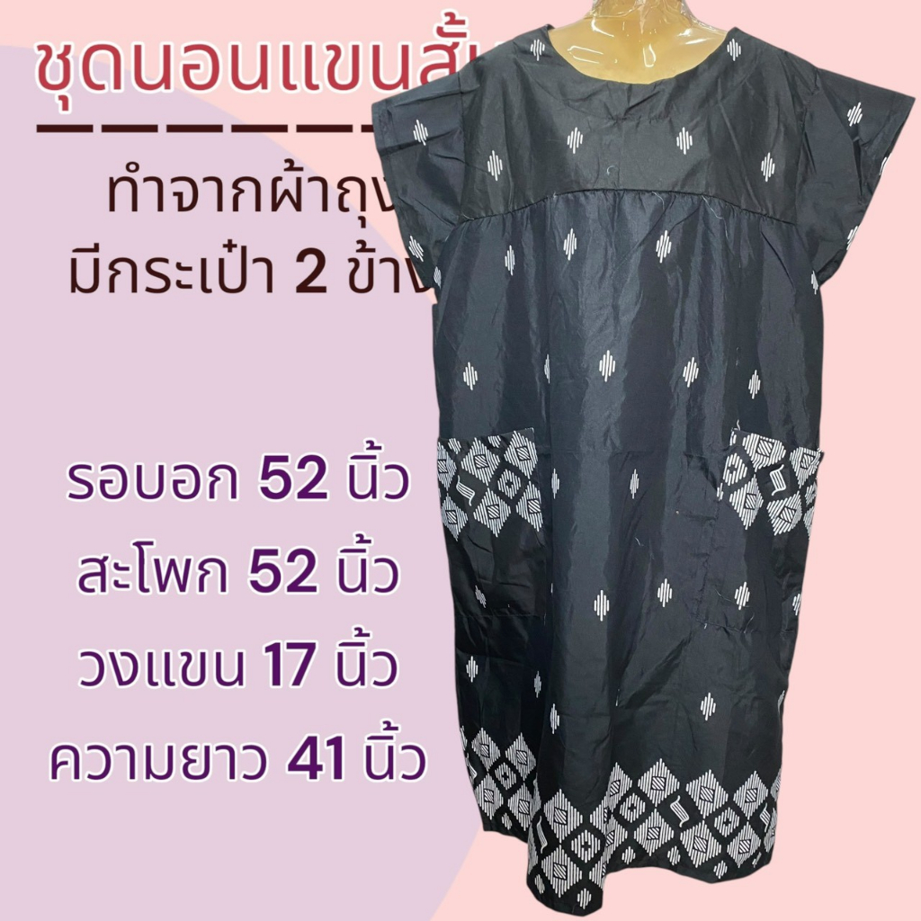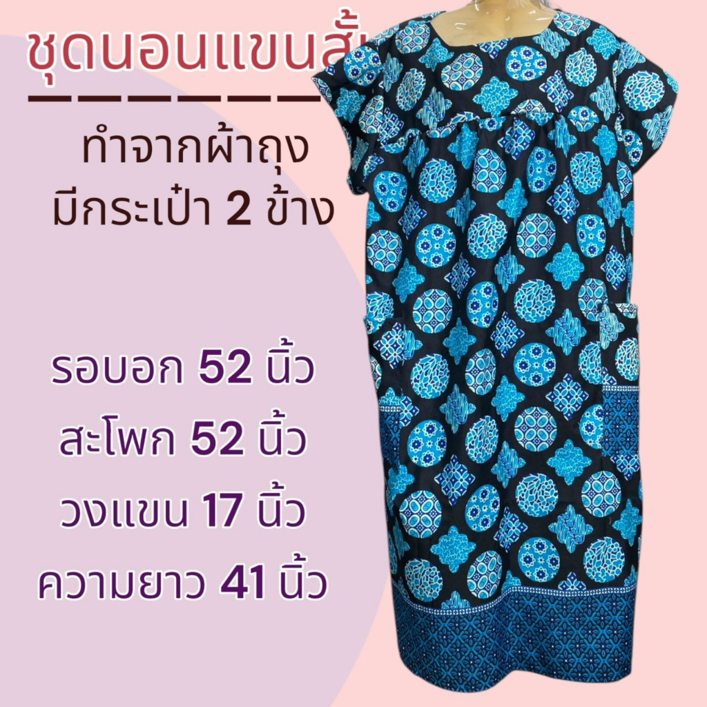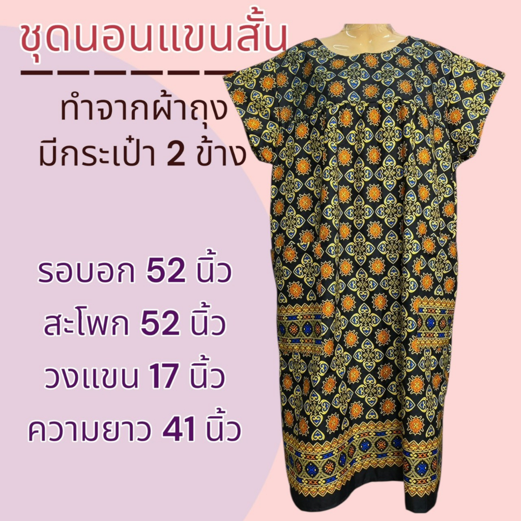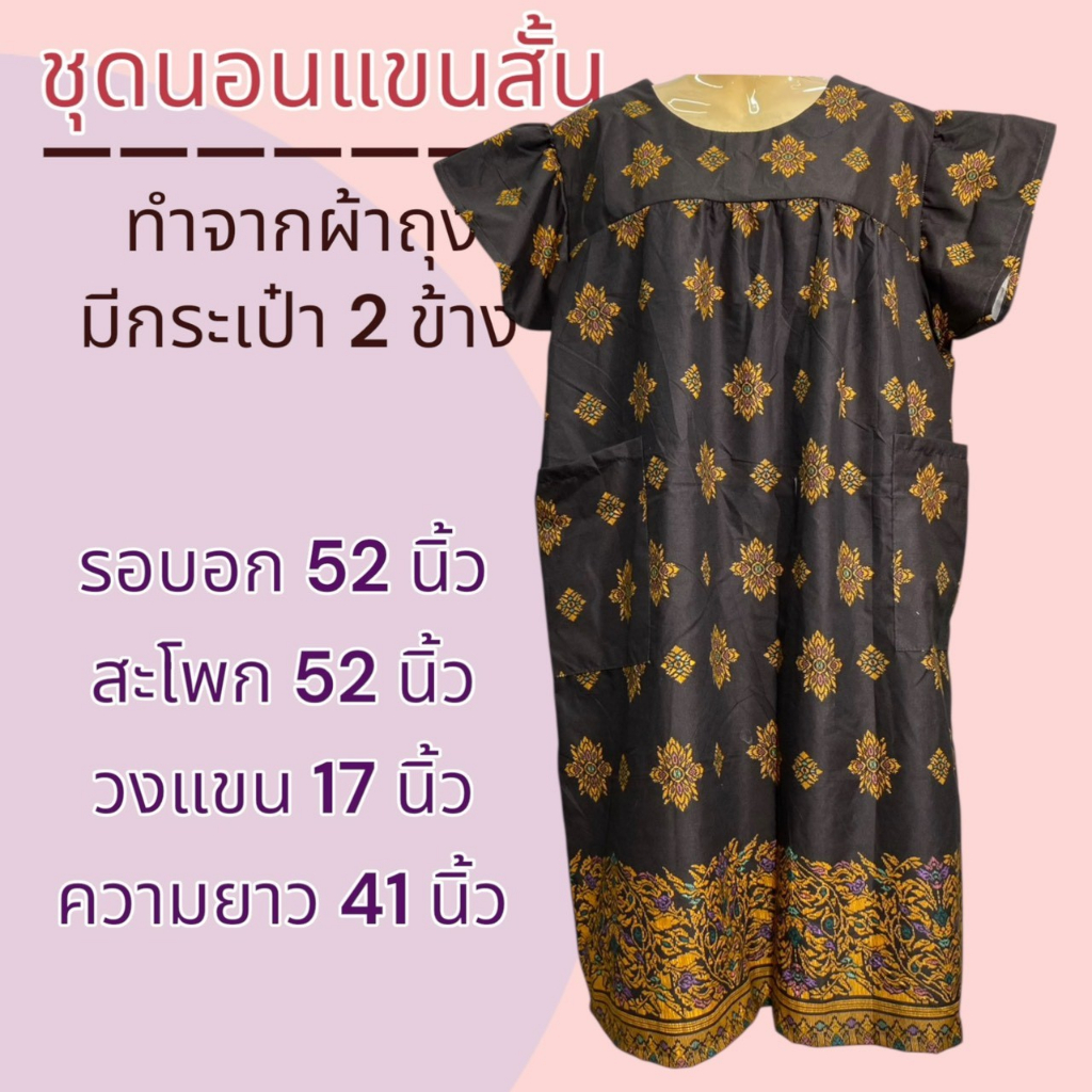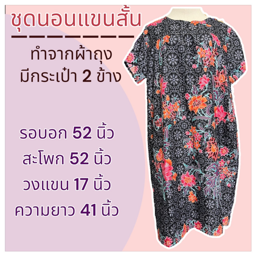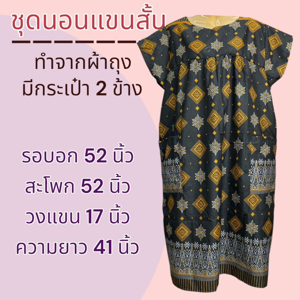 ชุดนอน กระโปรง แขนสั้น ทำจากผ้าถุง ไซส์ใหญ่ ผ้าคอตตอน ผ้านิ่มใส่สบาย B01