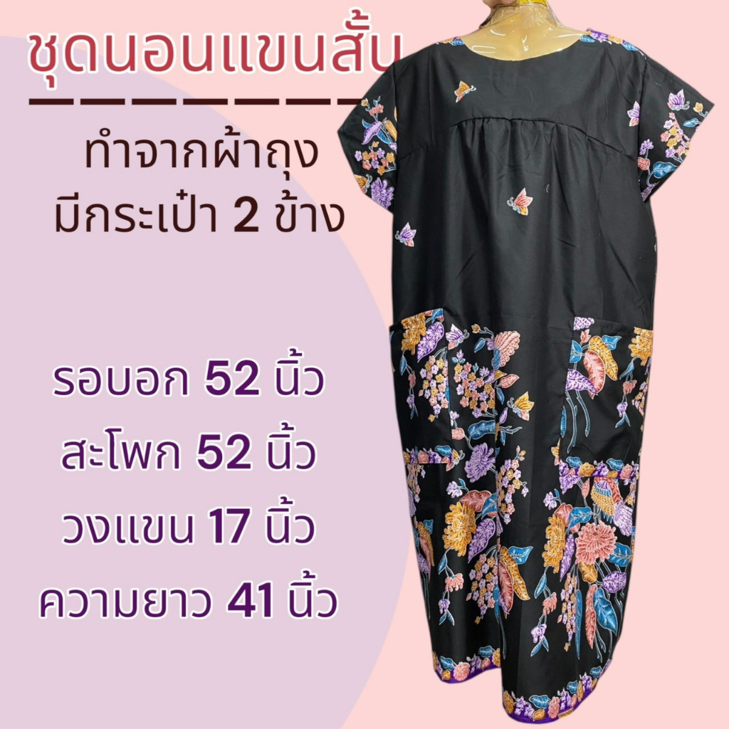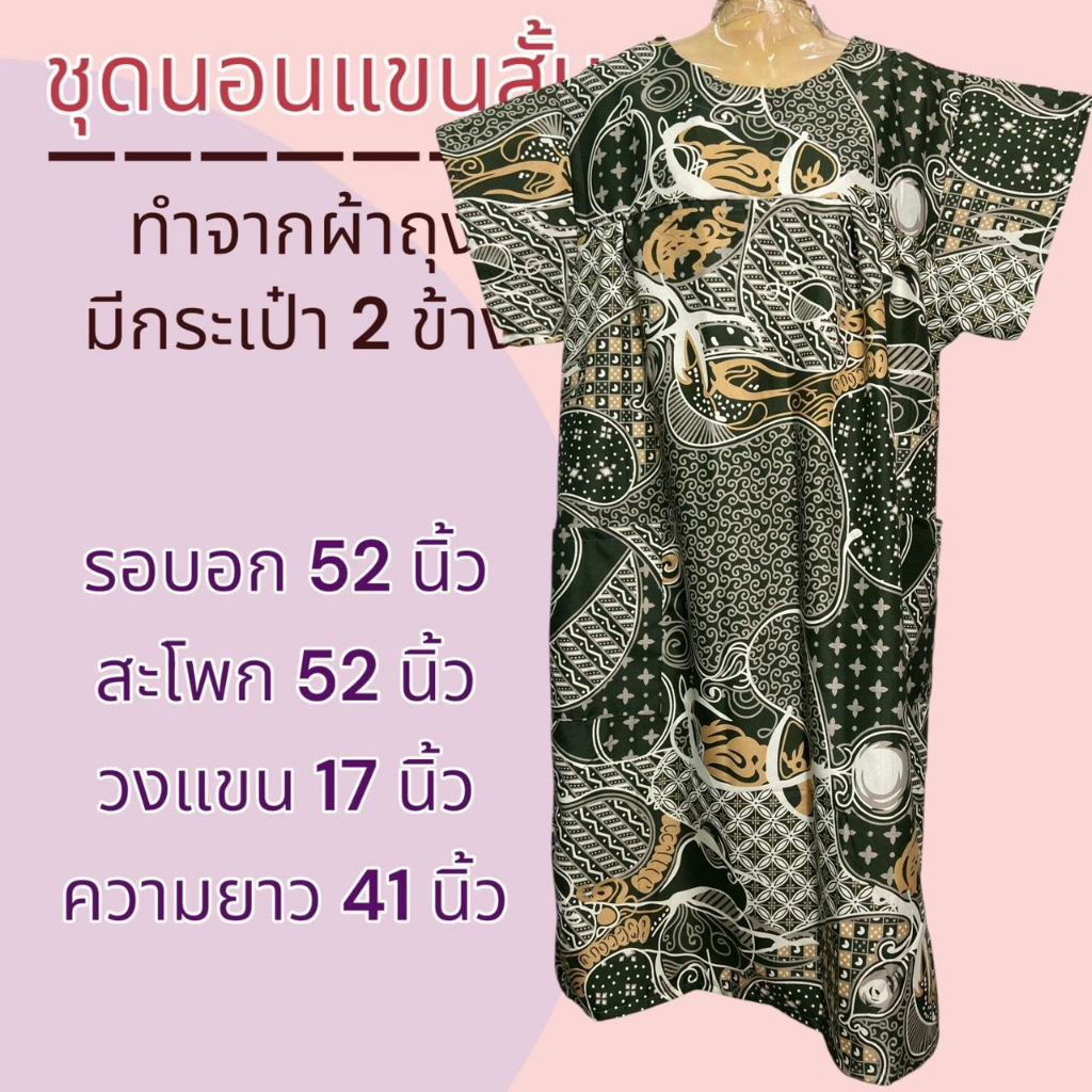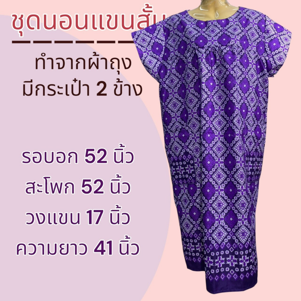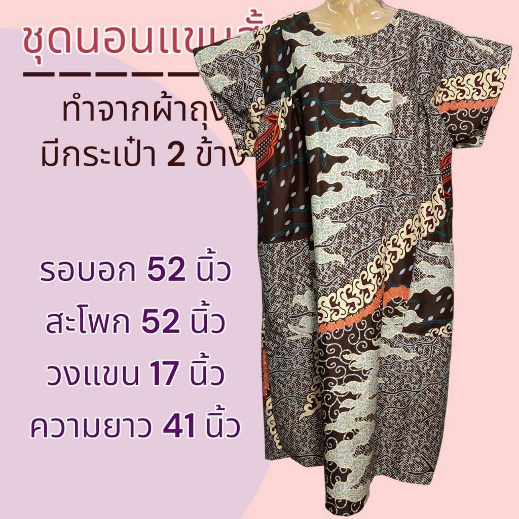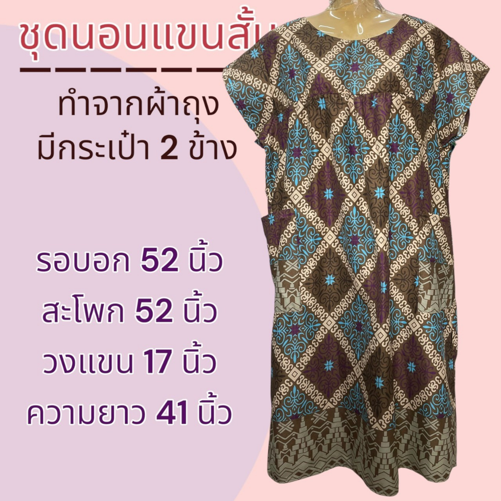 ชุดนอน กระโปรง แขนสั้น ทำจากผ้าถุง ไซส์ใหญ่ ผ้าคอตตอน ผ้านิ่มใส่สบาย B01