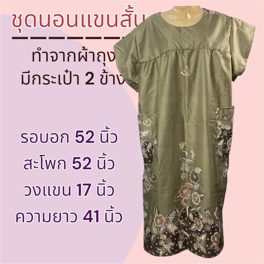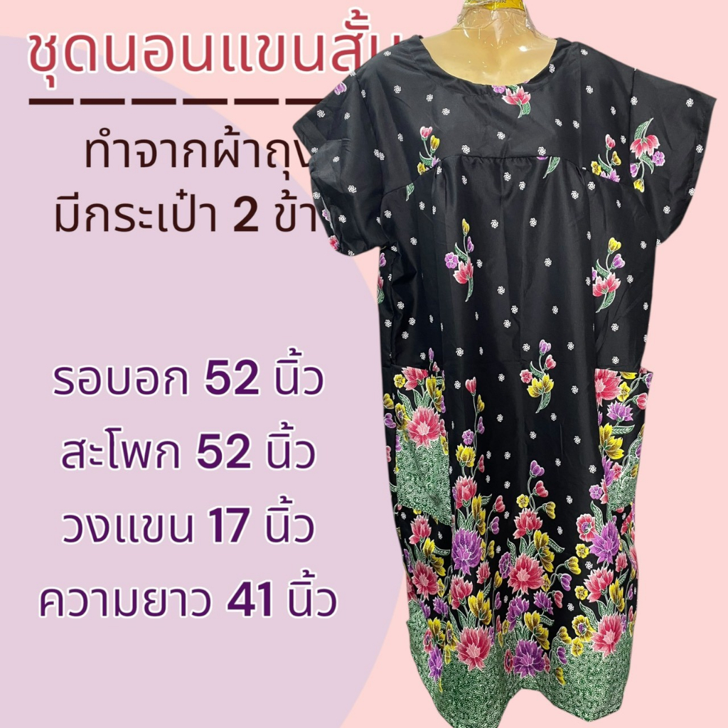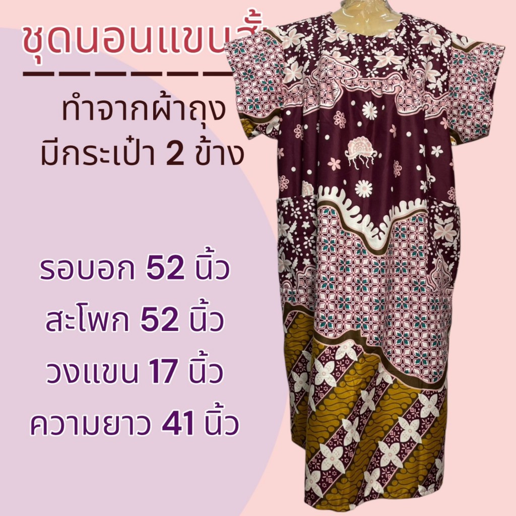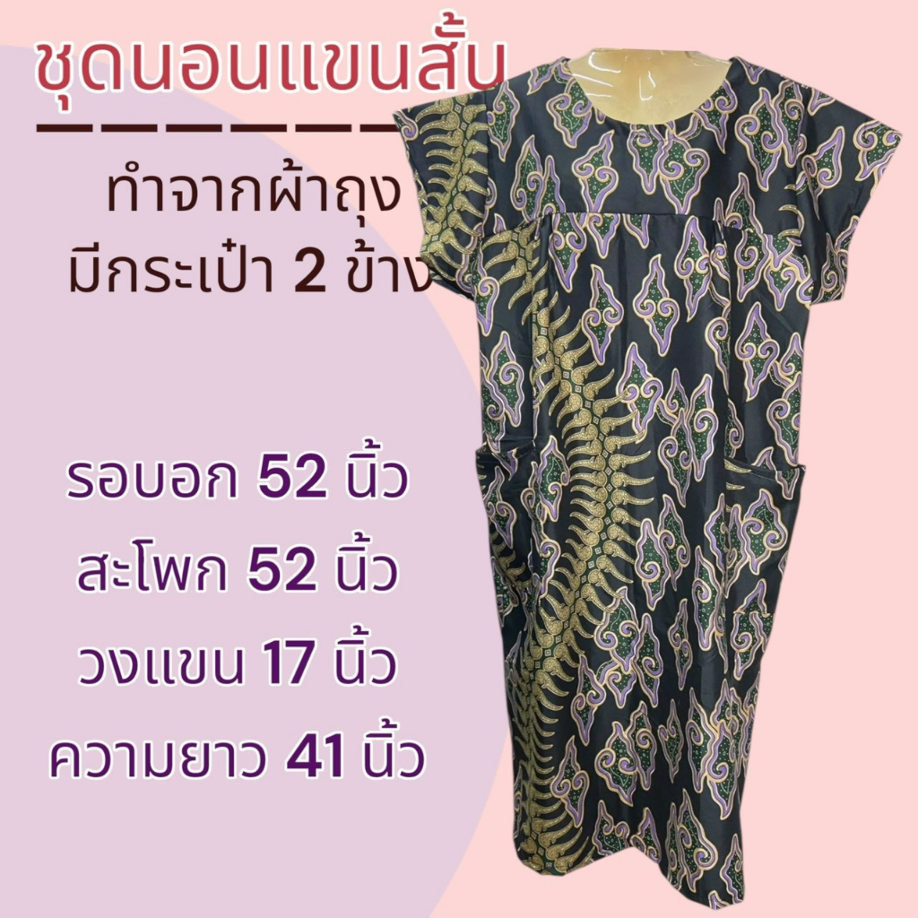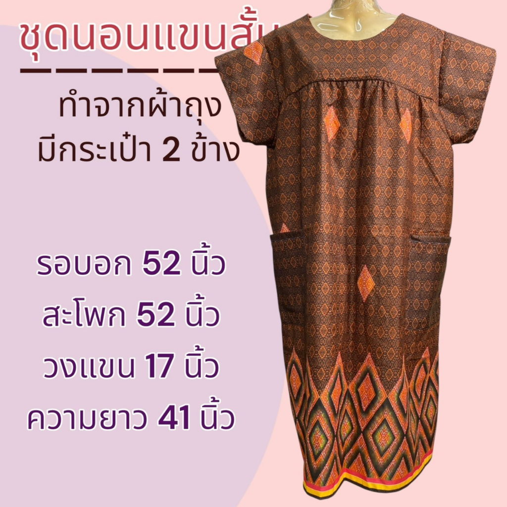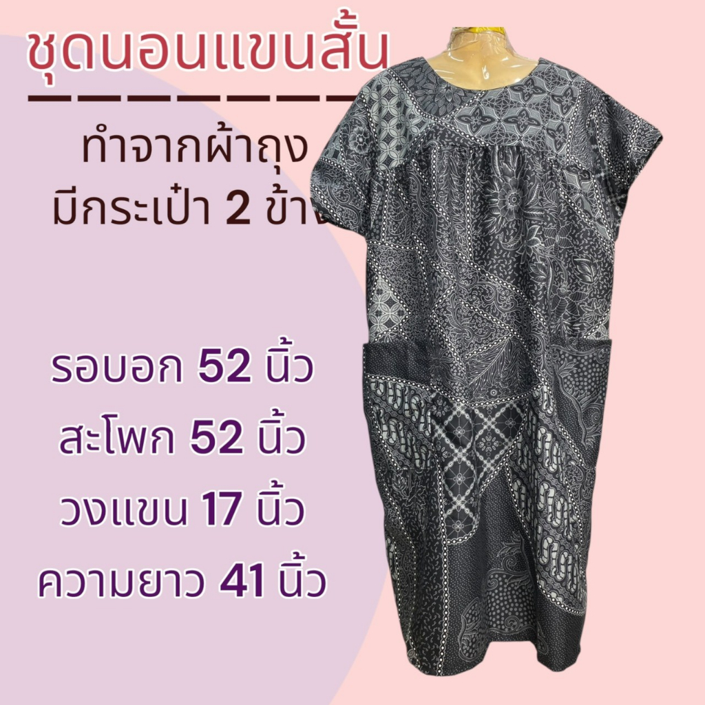 ชุดนอน กระโปรง แขนสั้น ทำจากผ้าถุง ไซส์ใหญ่ ผ้าคอตตอน ผ้านิ่มใส่สบาย B01