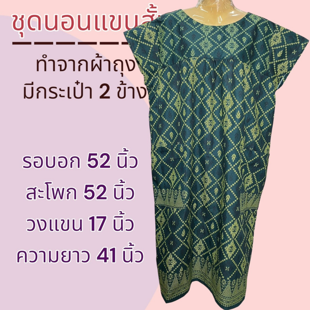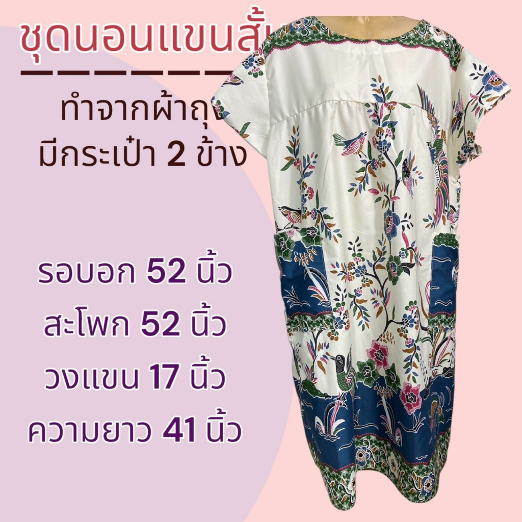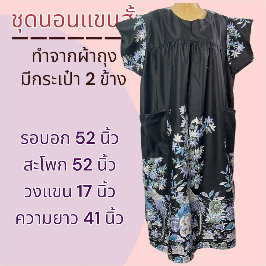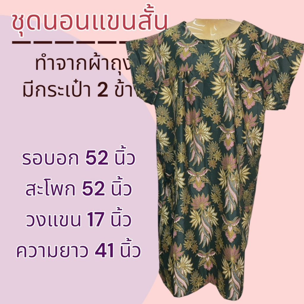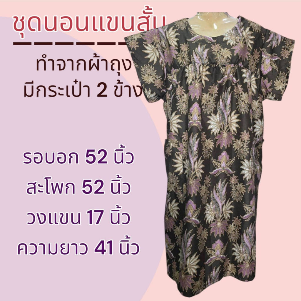 ชุดนอน กระโปรง แขนสั้น ทำจากผ้าถุง ไซส์ใหญ่ ผ้าคอตตอน ผ้านิ่มใส่สบาย B01