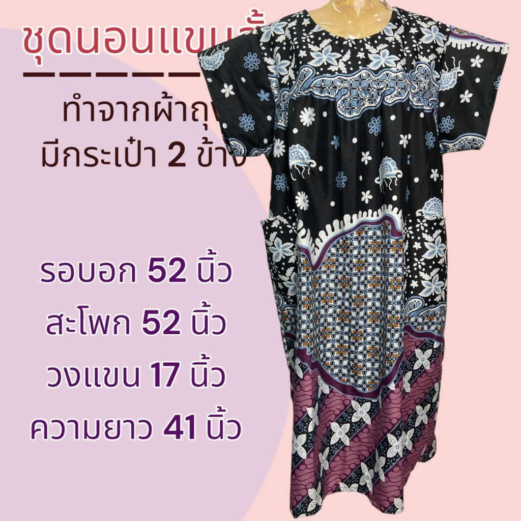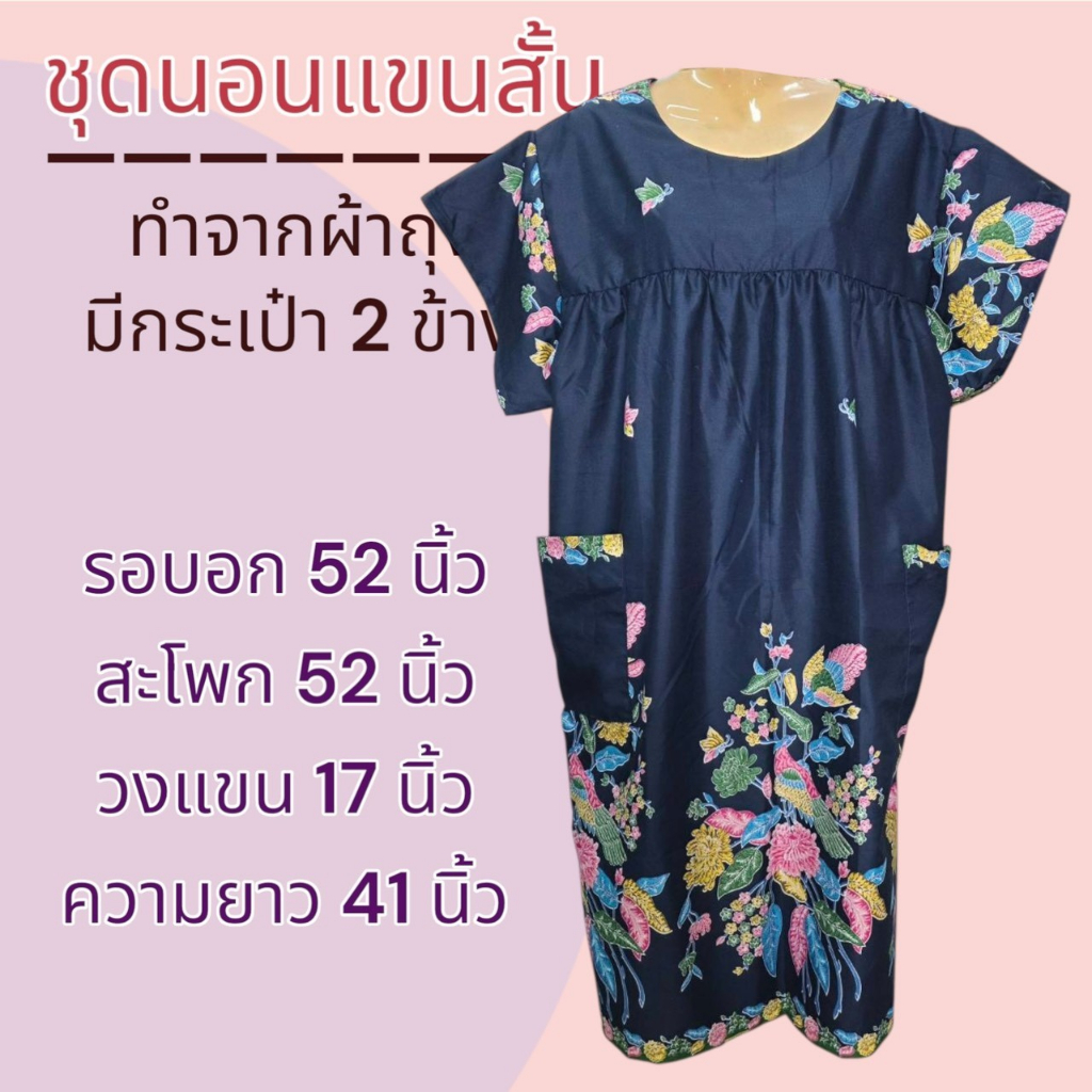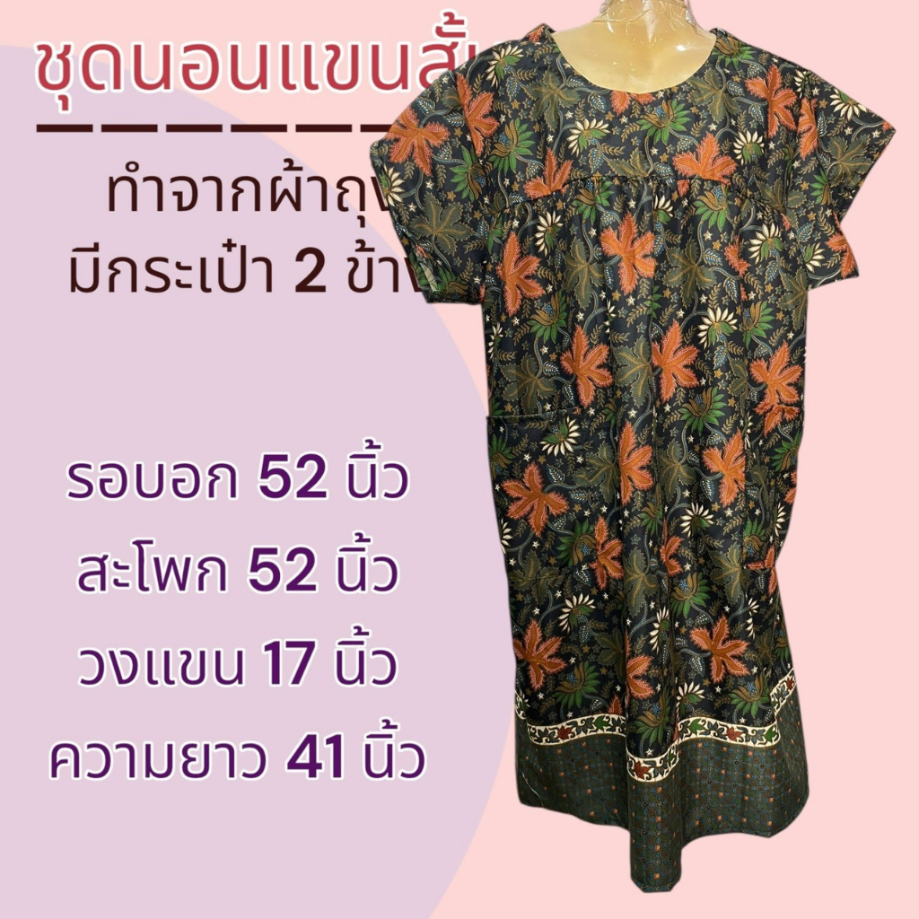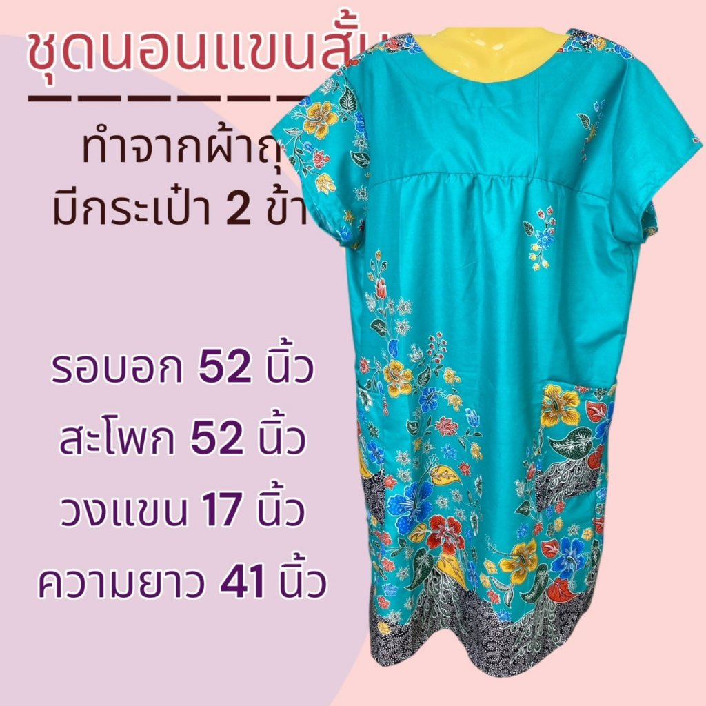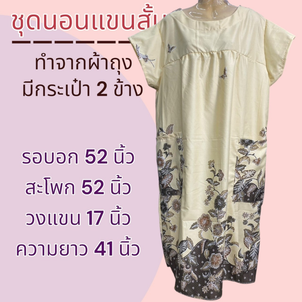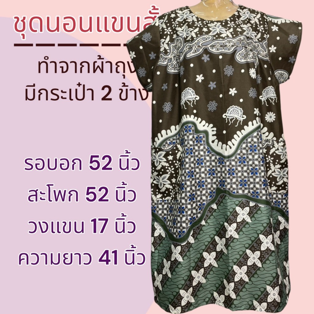 ชุดนอน กระโปรง แขนสั้น ทำจากผ้าถุง ไซส์ใหญ่ ผ้าคอตตอน ผ้านิ่มใส่สบาย B01