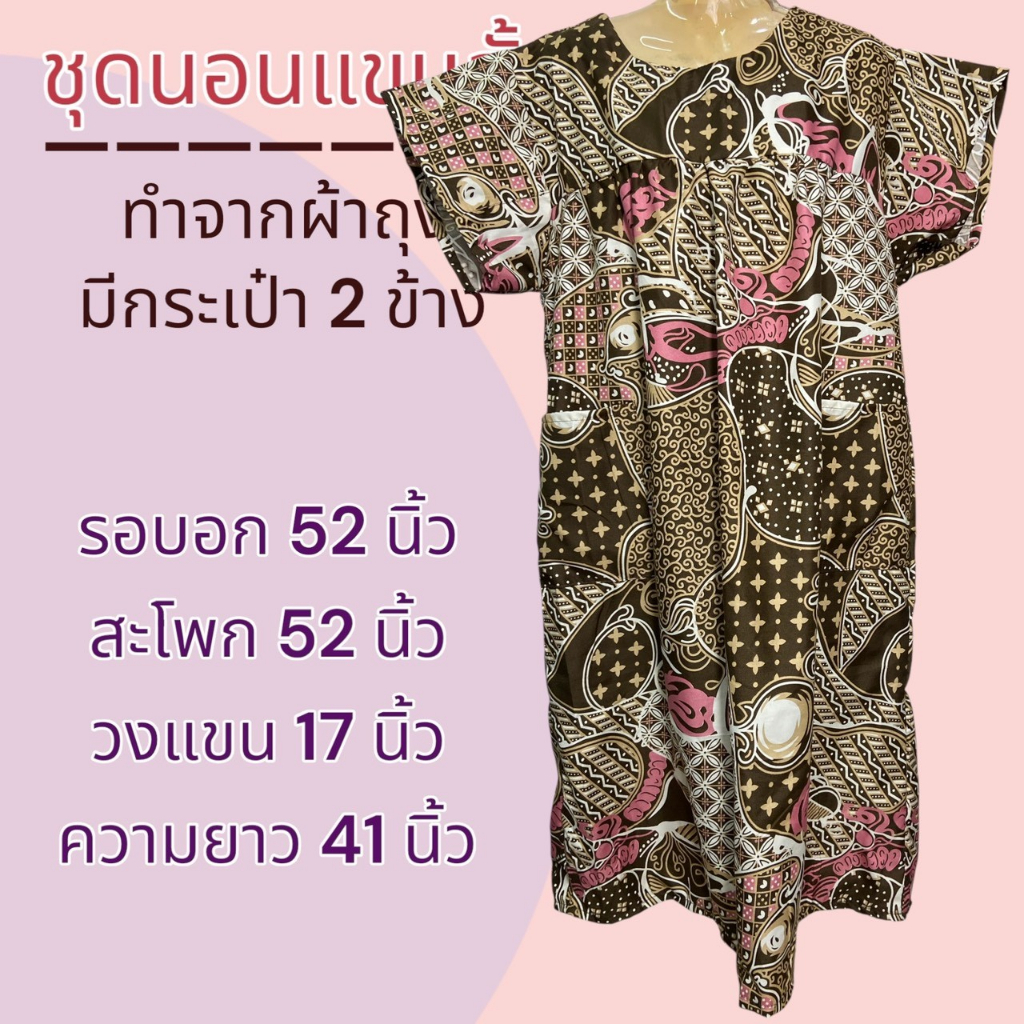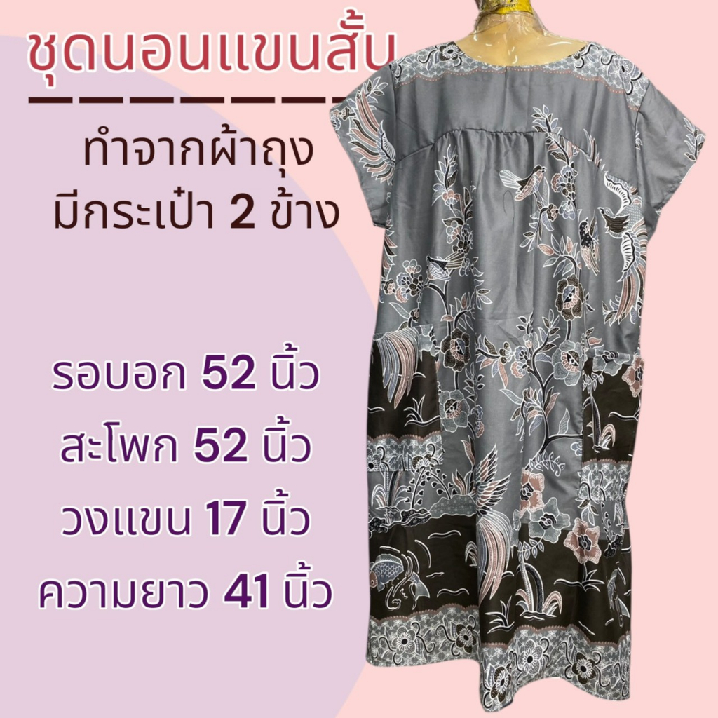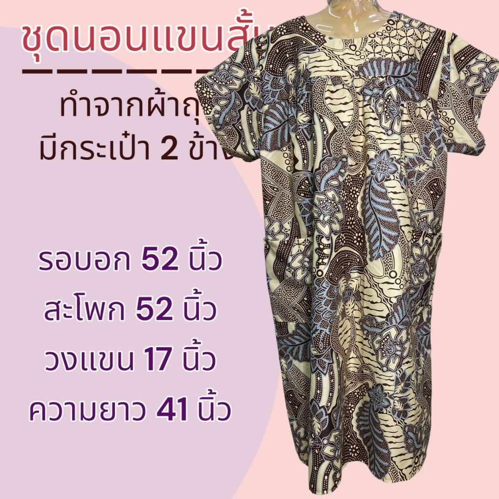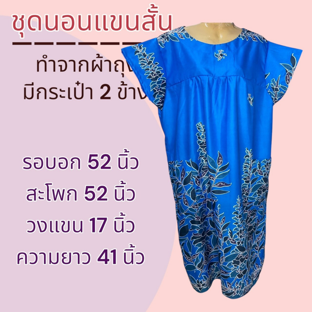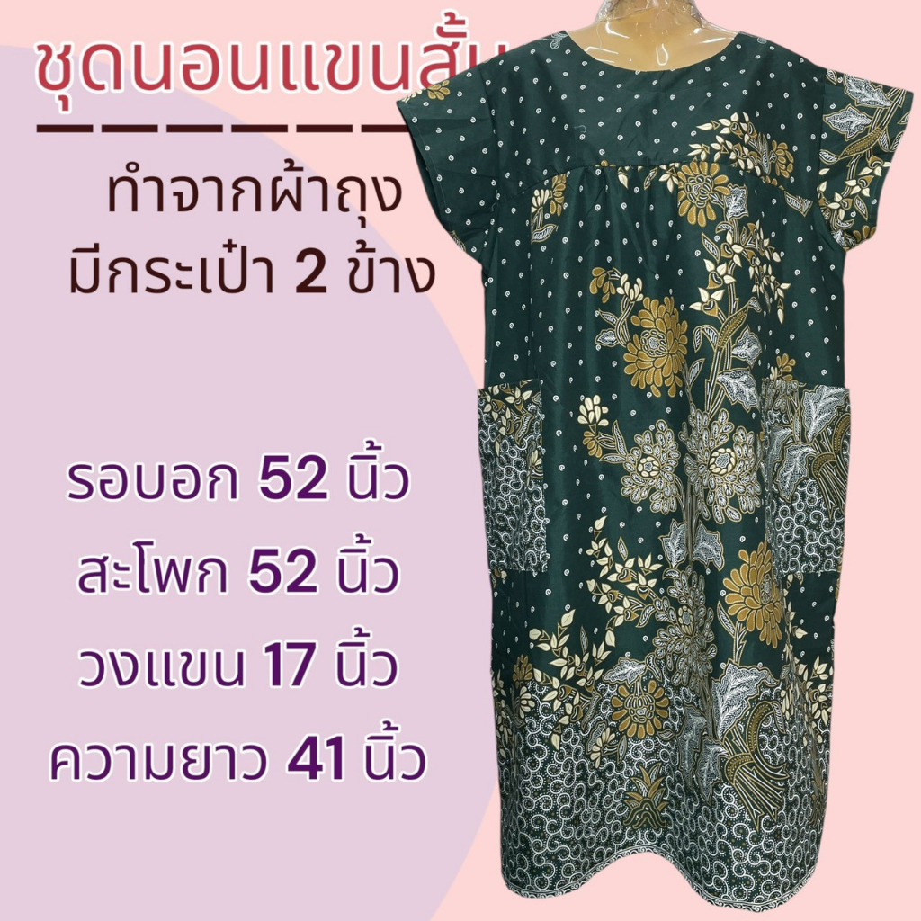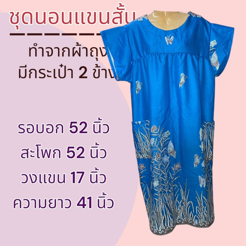 ชุดนอน กระโปรง แขนสั้น ทำจากผ้าถุง ไซส์ใหญ่ ผ้าคอตตอน ผ้านิ่มใส่สบาย B01