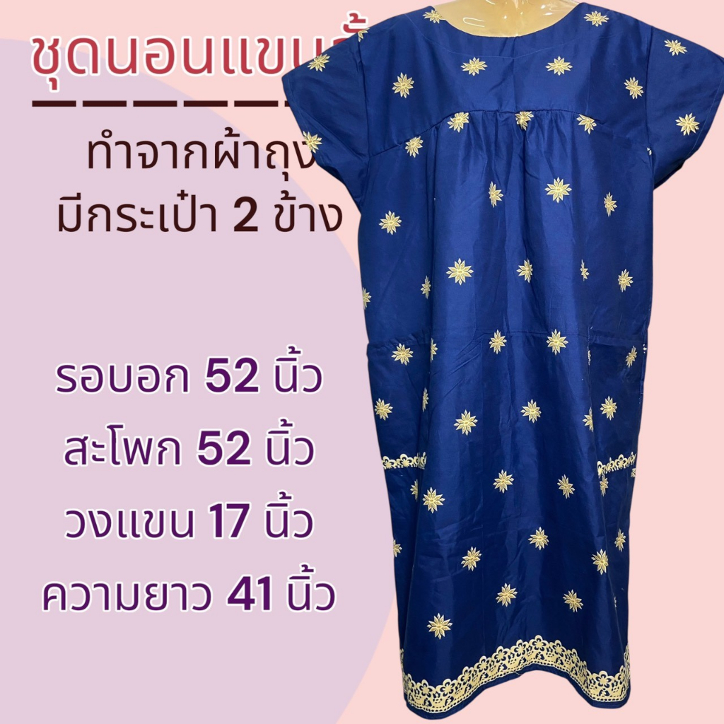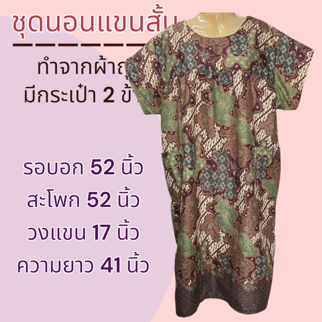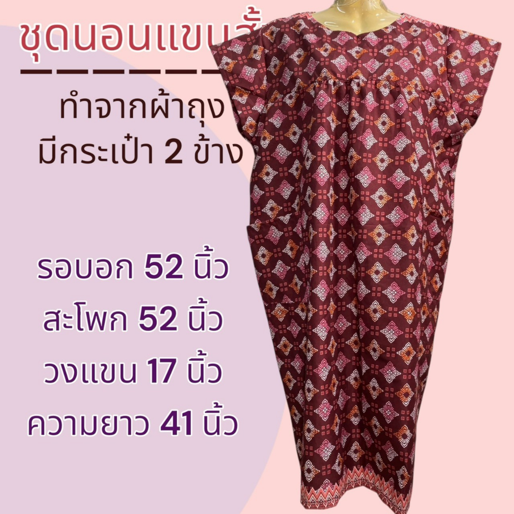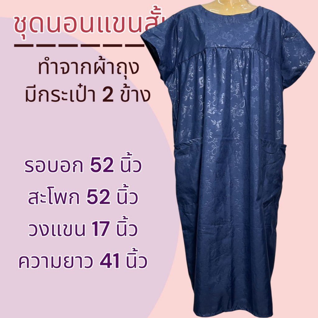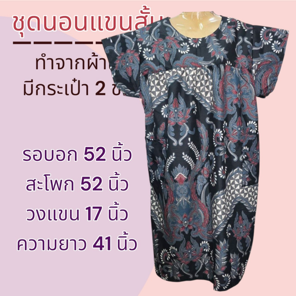 ชุดนอน กระโปรง แขนสั้น ทำจากผ้าถุง ไซส์ใหญ่ ผ้าคอตตอน ผ้านิ่มใส่สบาย B01