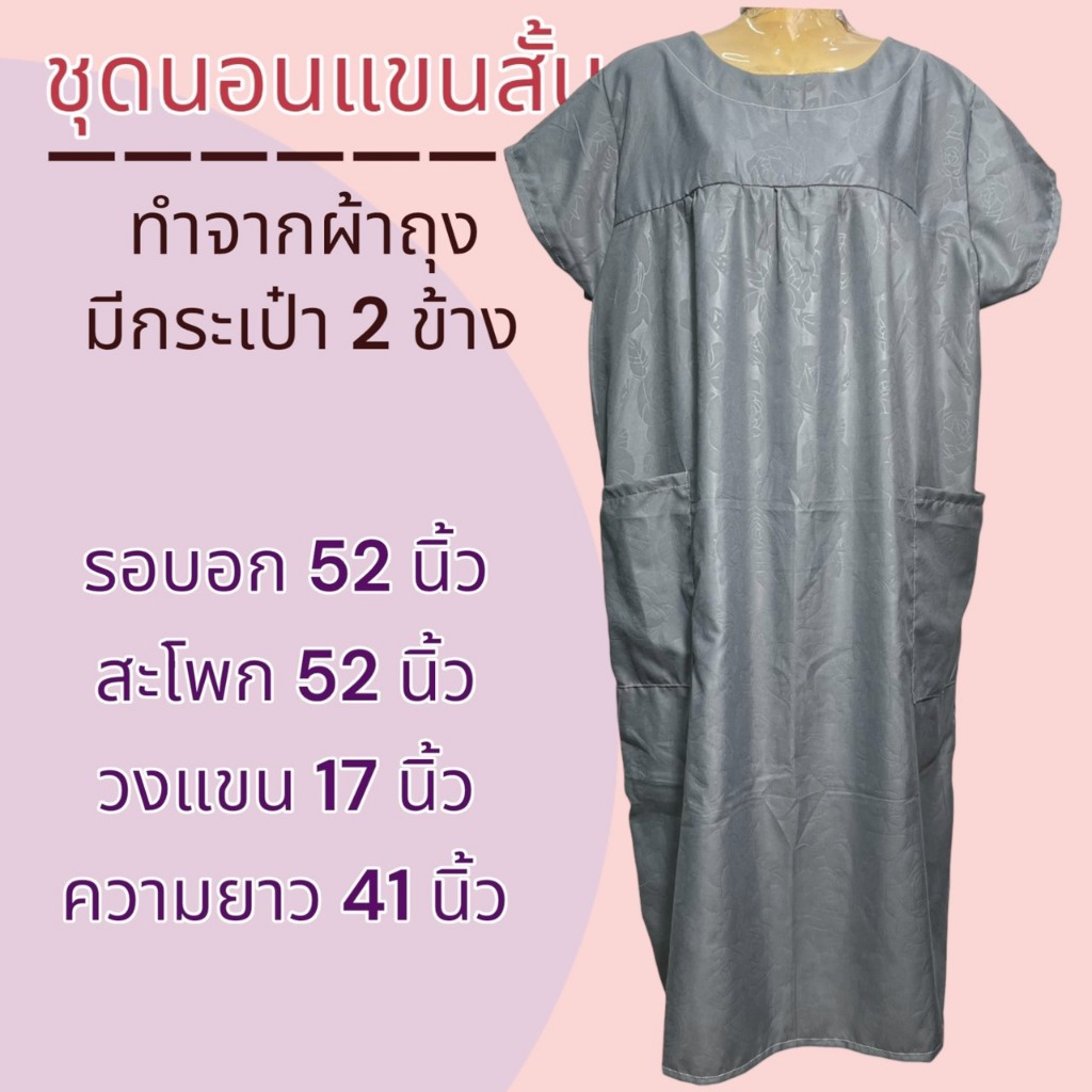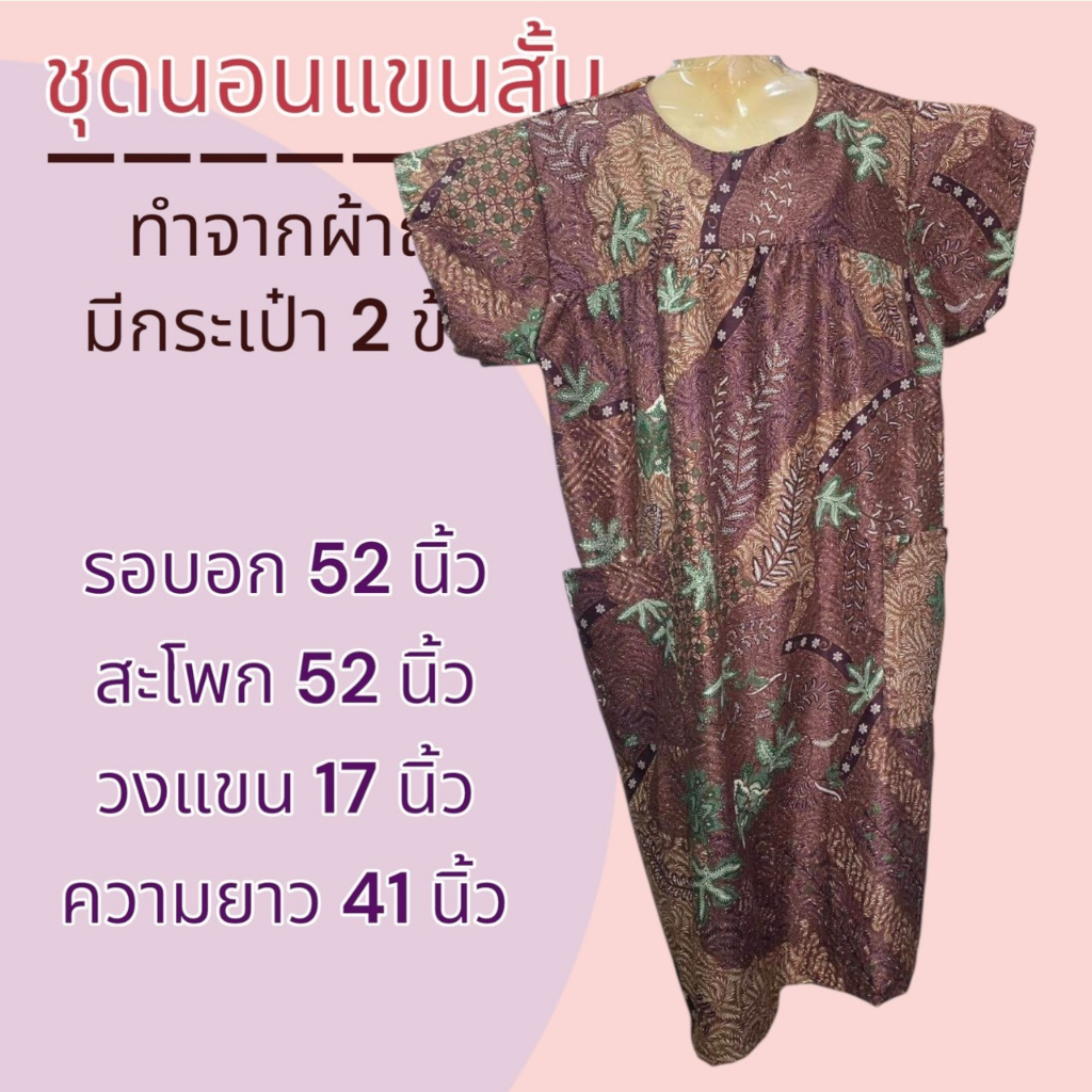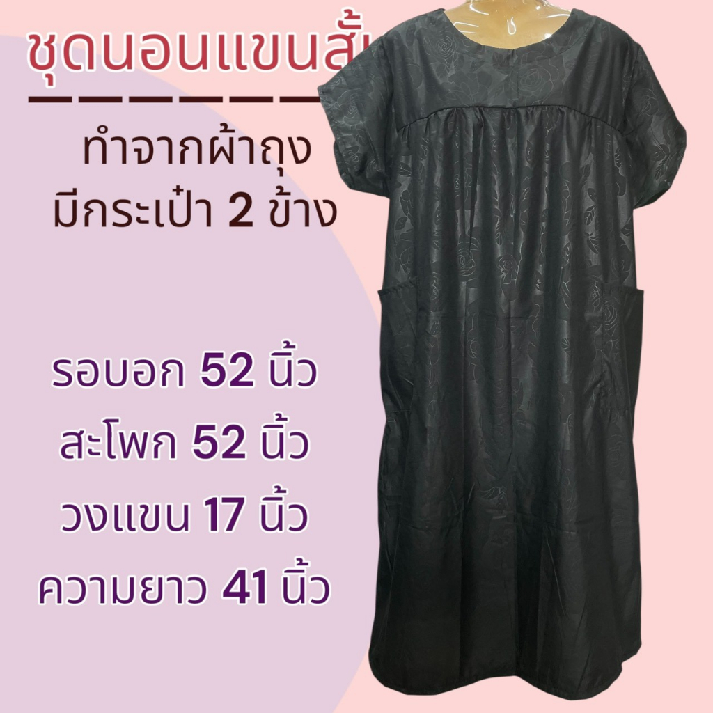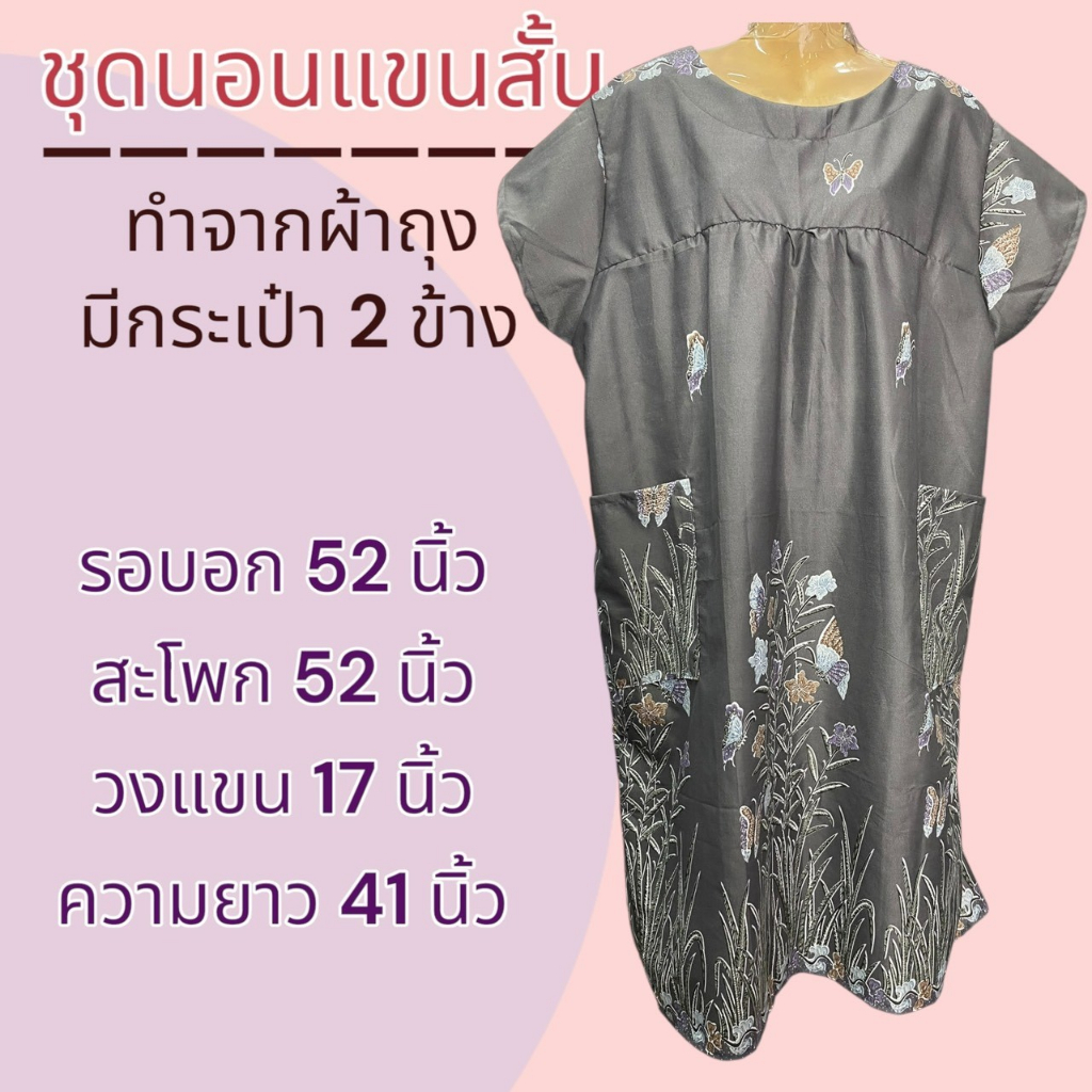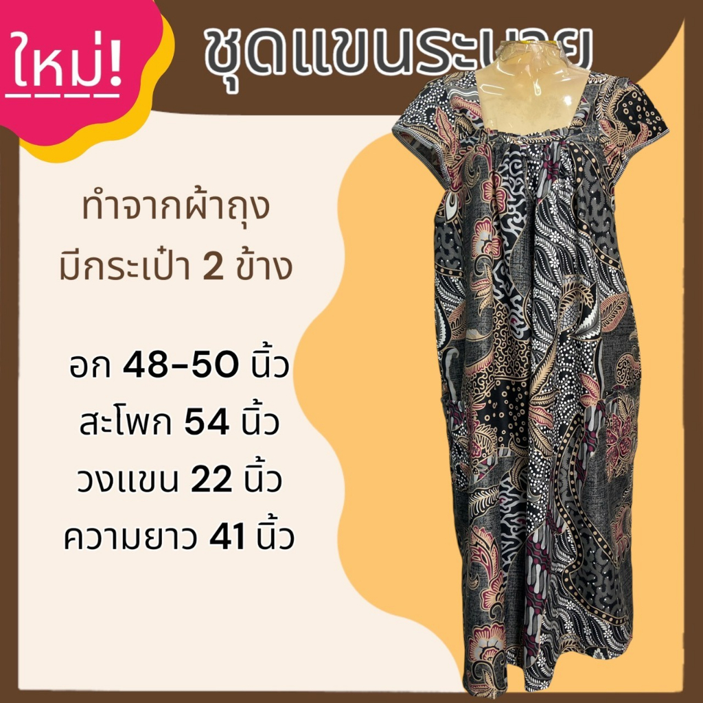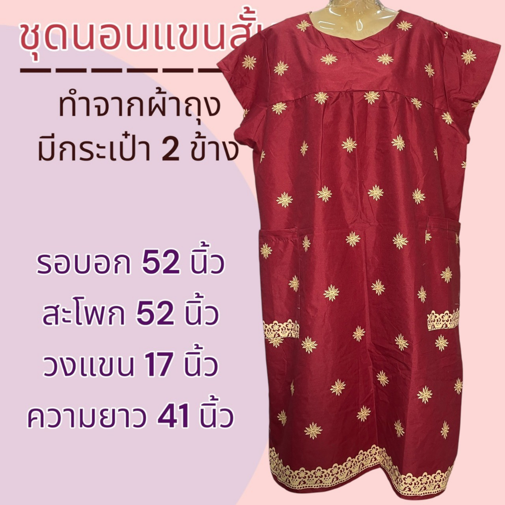 ชุดนอน กระโปรง แขนสั้น ทำจากผ้าถุง ไซส์ใหญ่ ผ้าคอตตอน ผ้านิ่มใส่สบาย B01