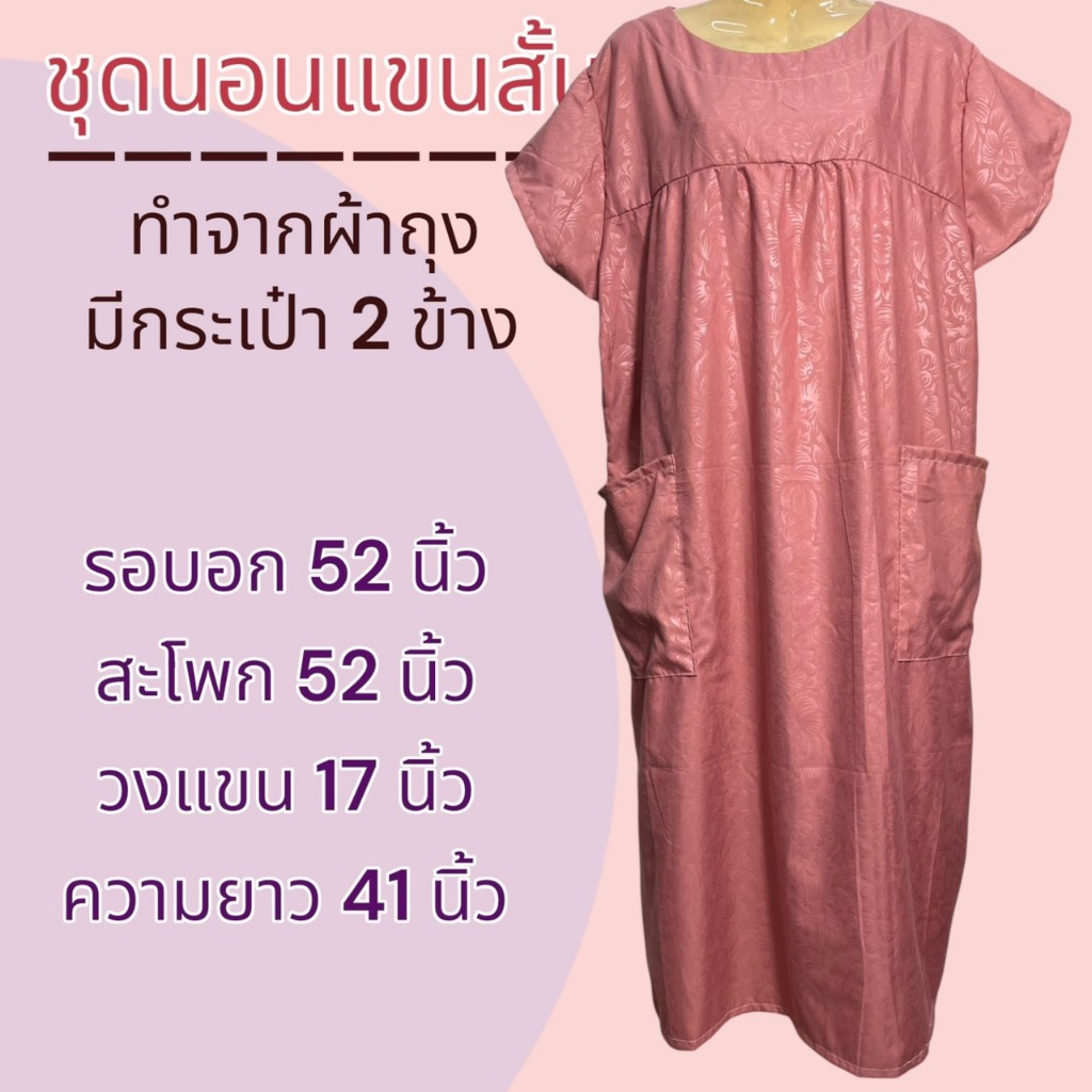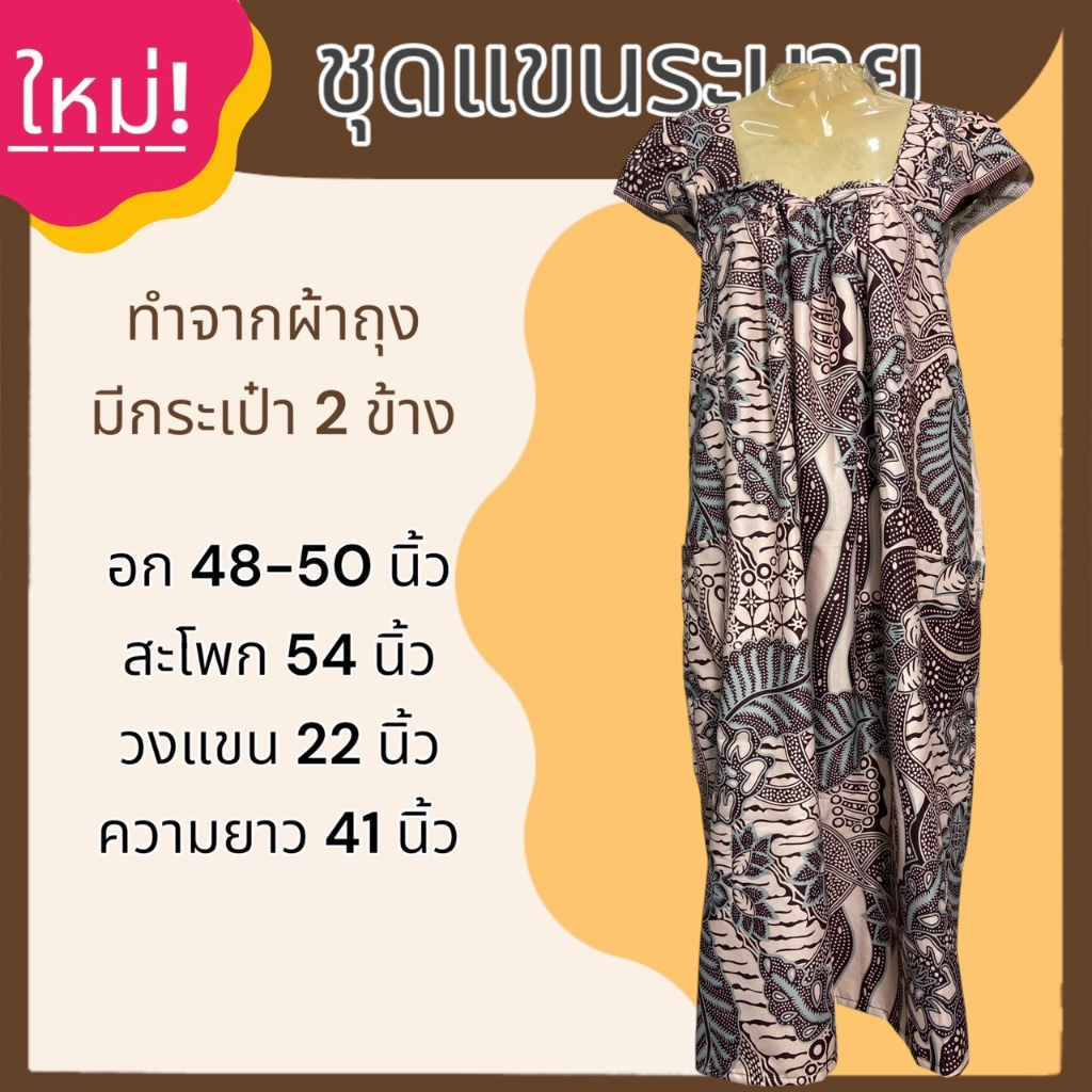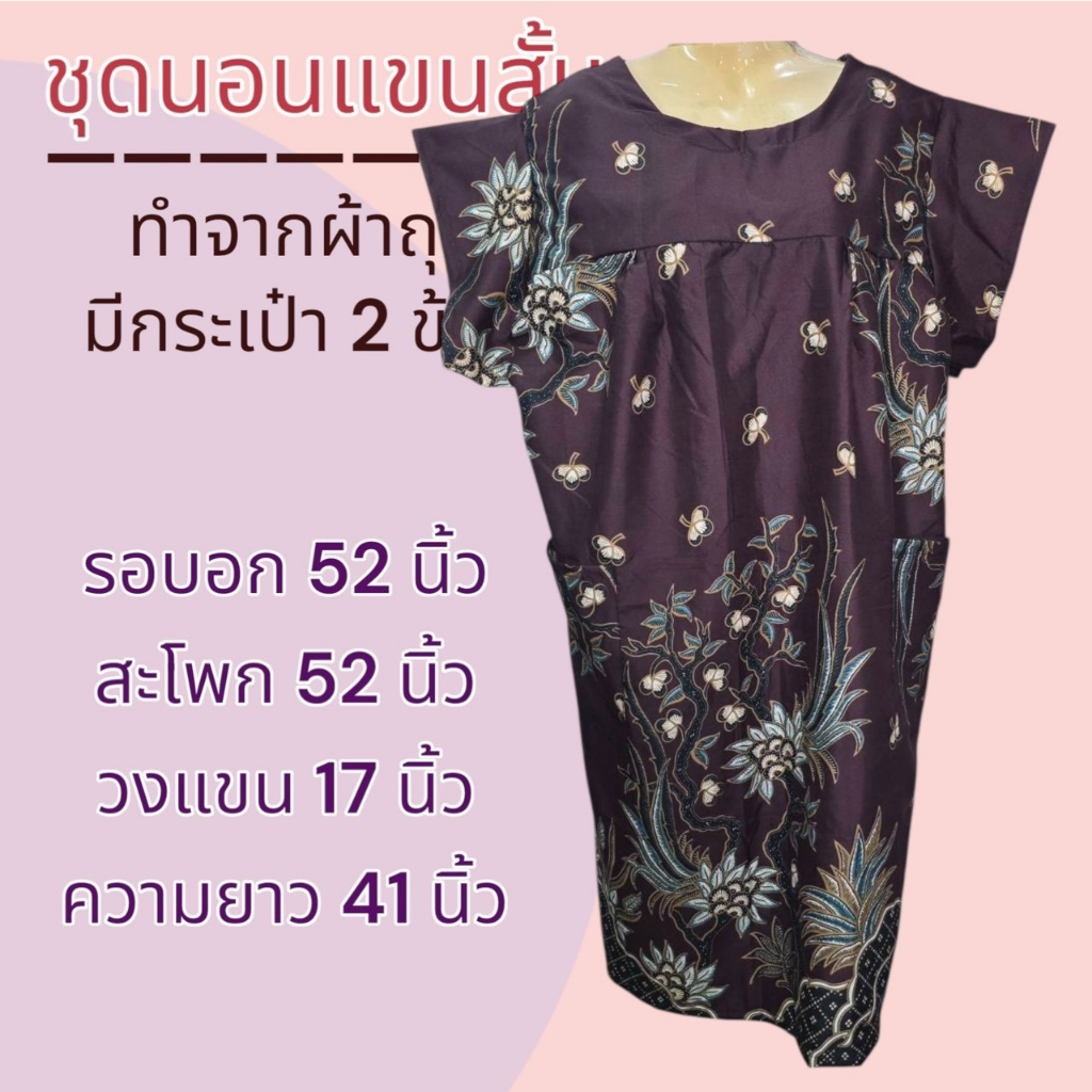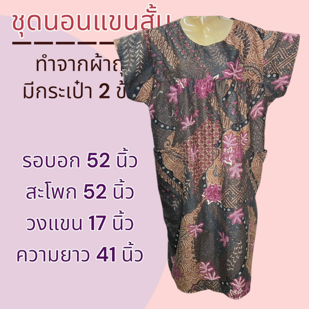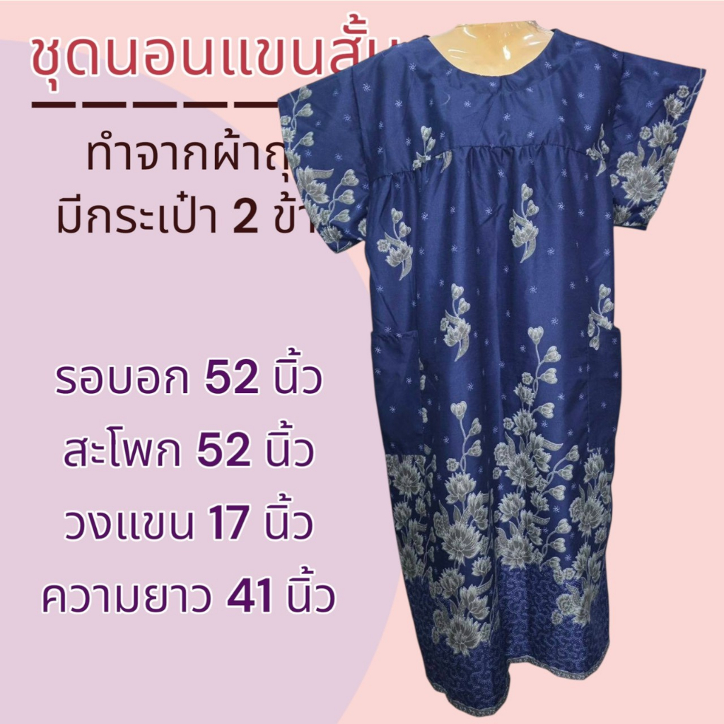 ชุดนอน กระโปรง แขนสั้น ทำจากผ้าถุง ไซส์ใหญ่ ผ้าคอตตอน ผ้านิ่มใส่สบาย B01