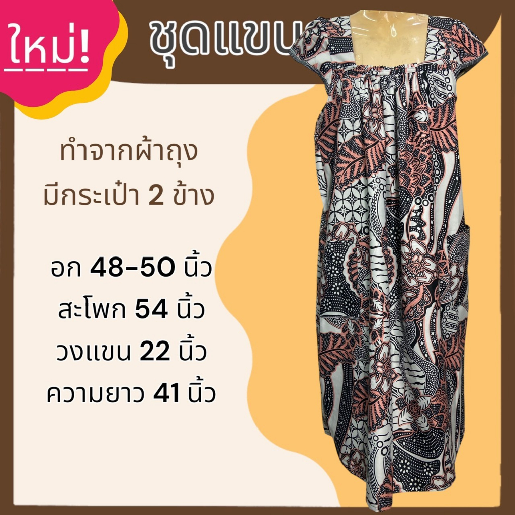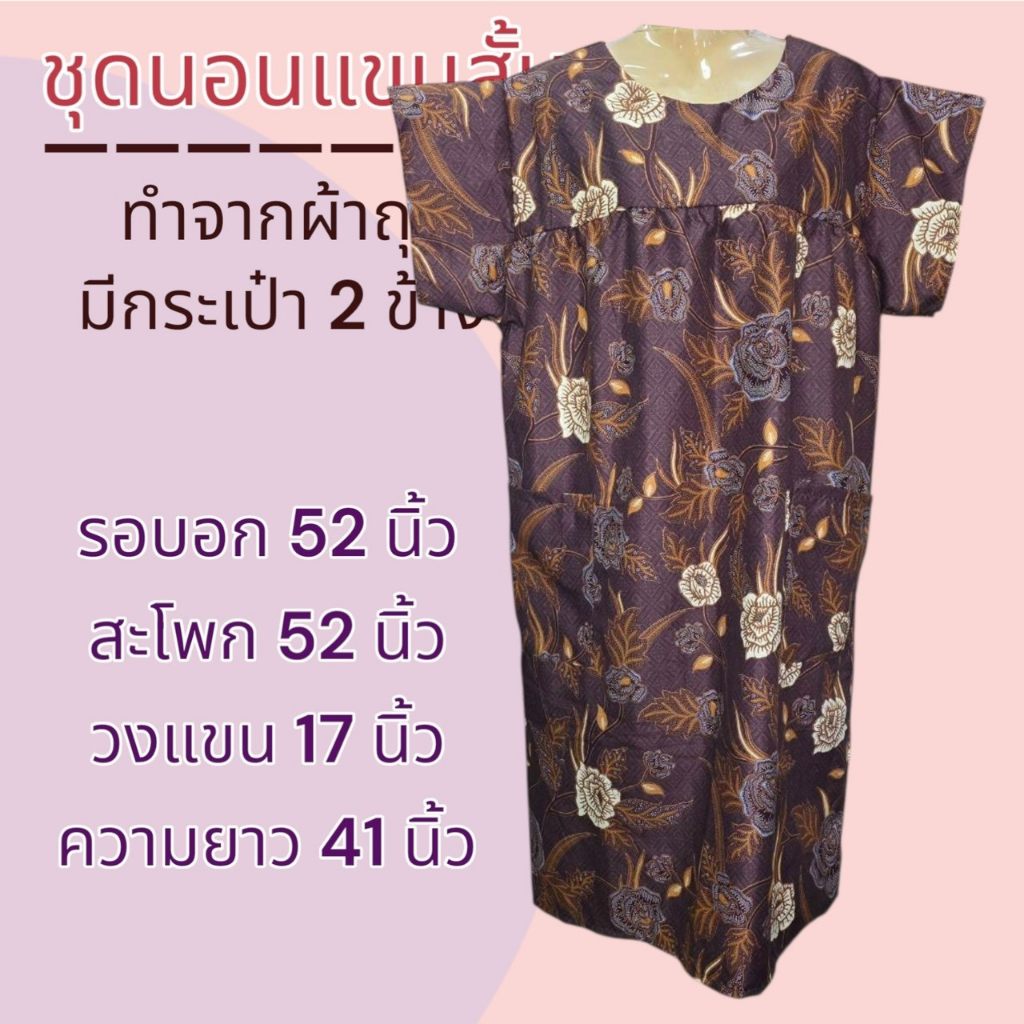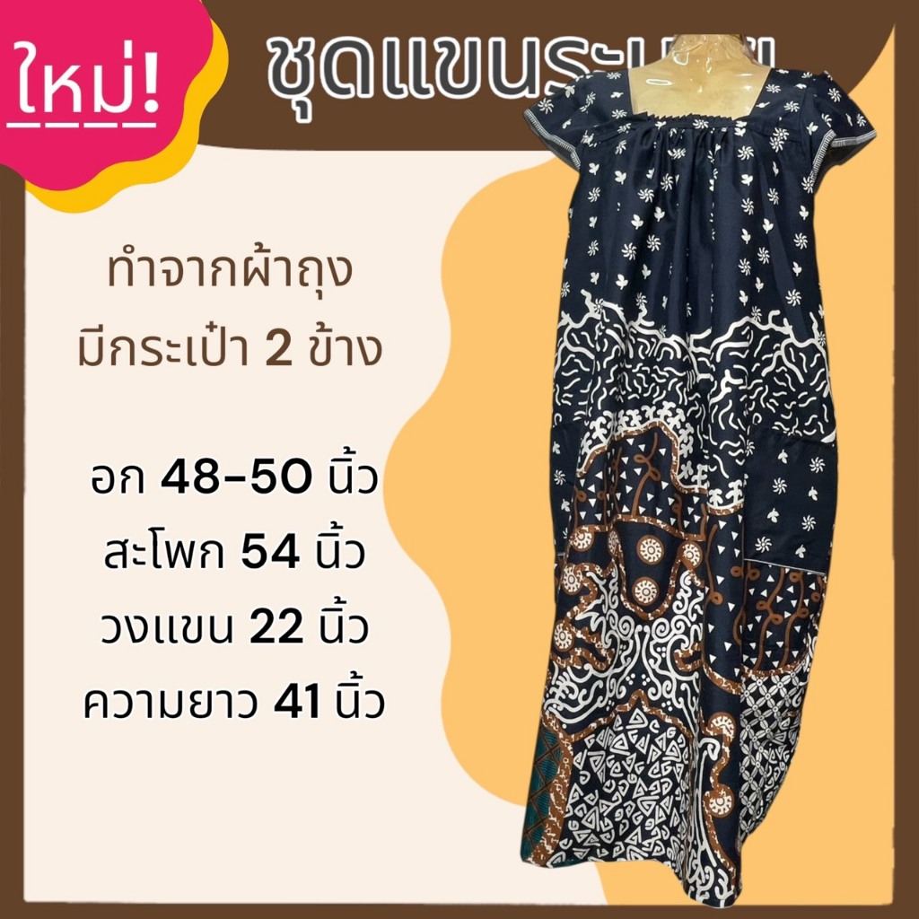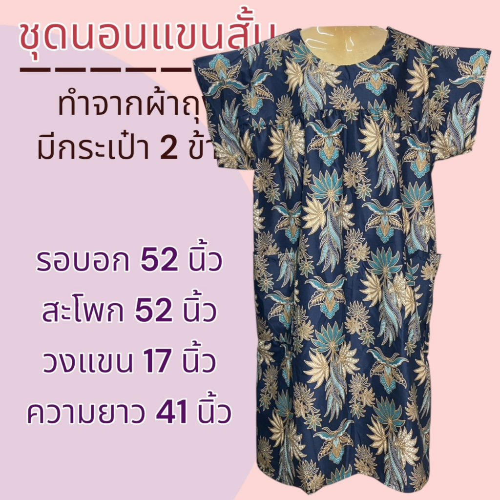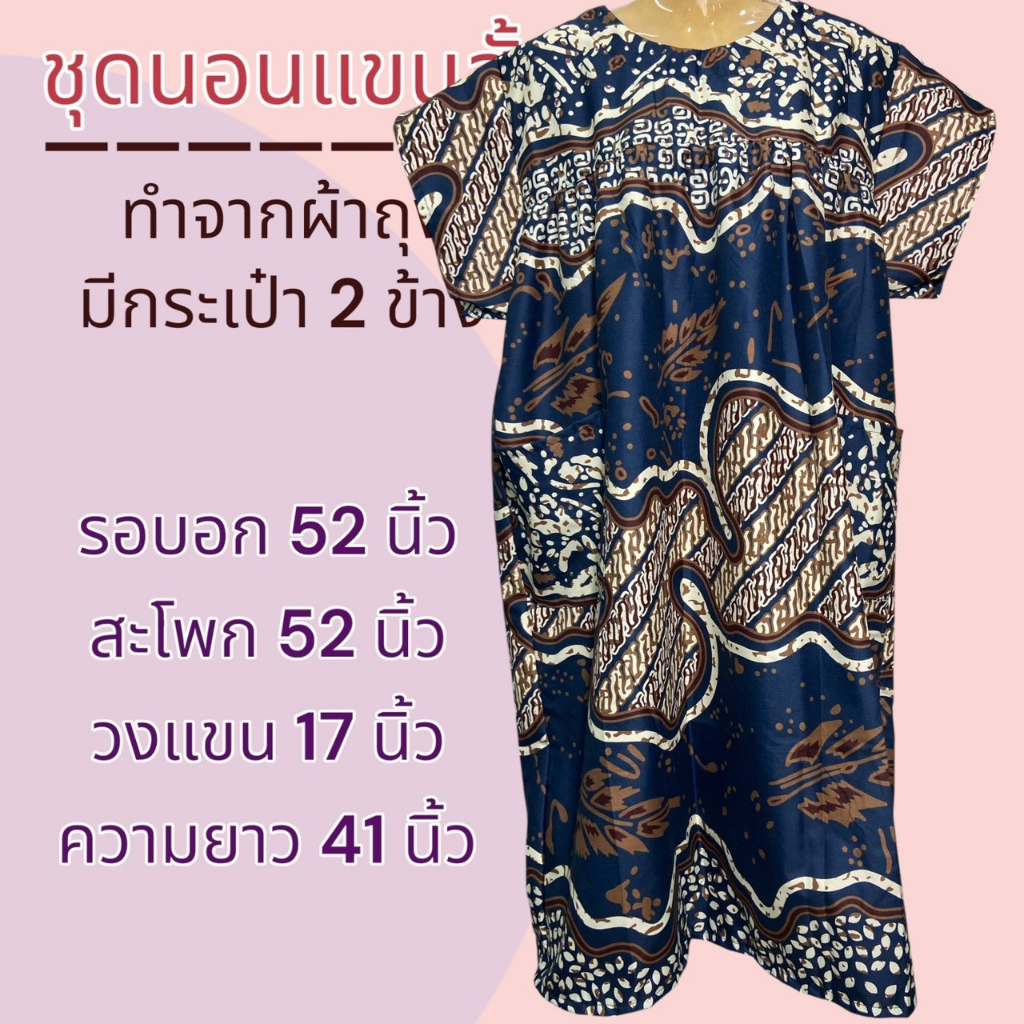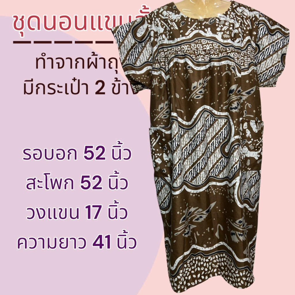 ชุดนอน กระโปรง แขนสั้น ทำจากผ้าถุง ไซส์ใหญ่ ผ้าคอตตอน ผ้านิ่มใส่สบาย B01