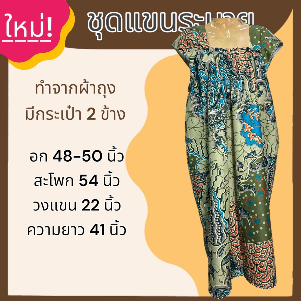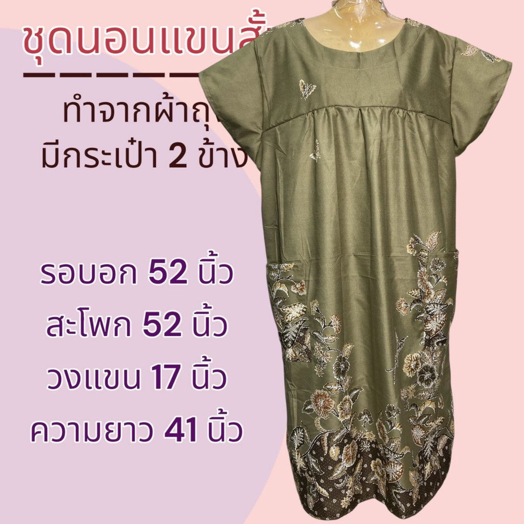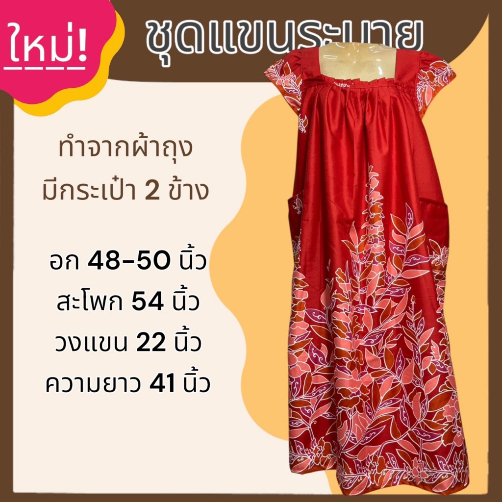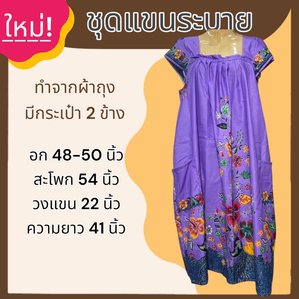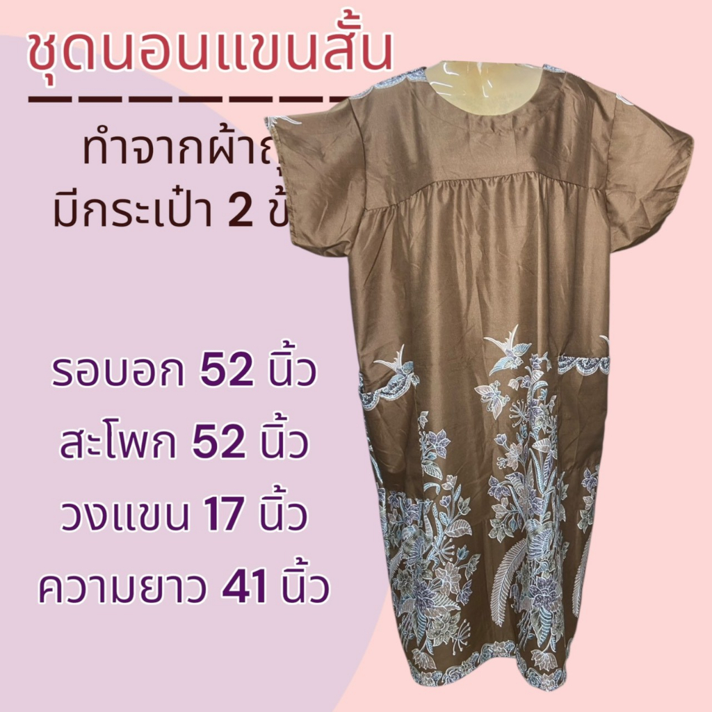 ชุดนอน กระโปรง แขนสั้น ทำจากผ้าถุง ไซส์ใหญ่ ผ้าคอตตอน ผ้านิ่มใส่สบาย B01