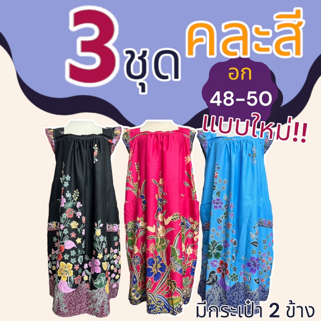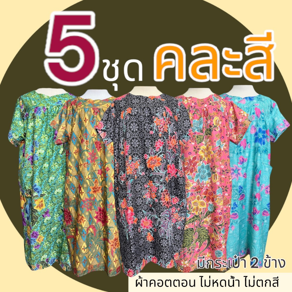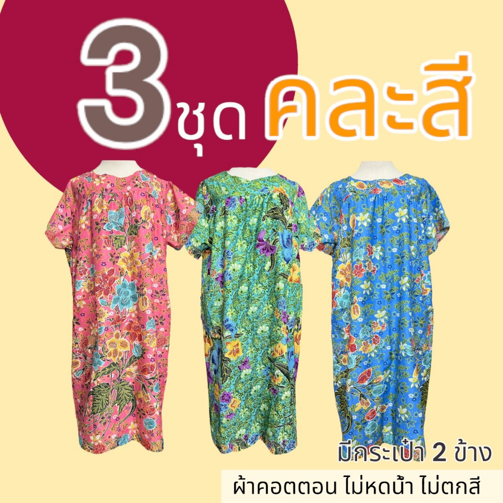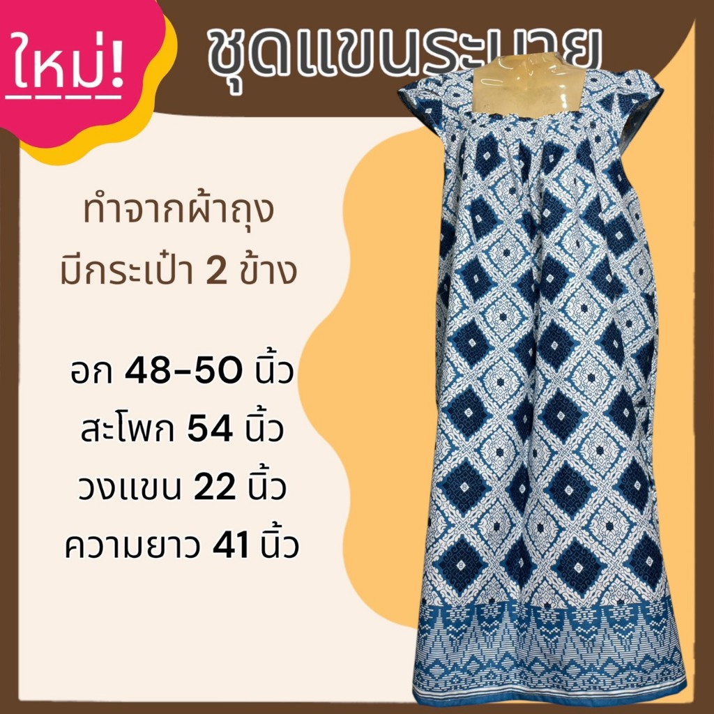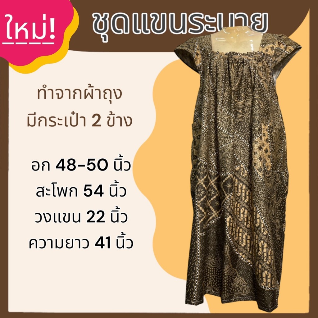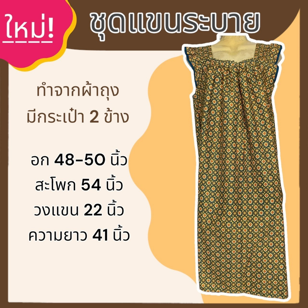 ชุดนอน กระโปรง แขนสั้น ทำจากผ้าถุง ไซส์ใหญ่ ผ้าคอตตอน ผ้านิ่มใส่สบาย B01