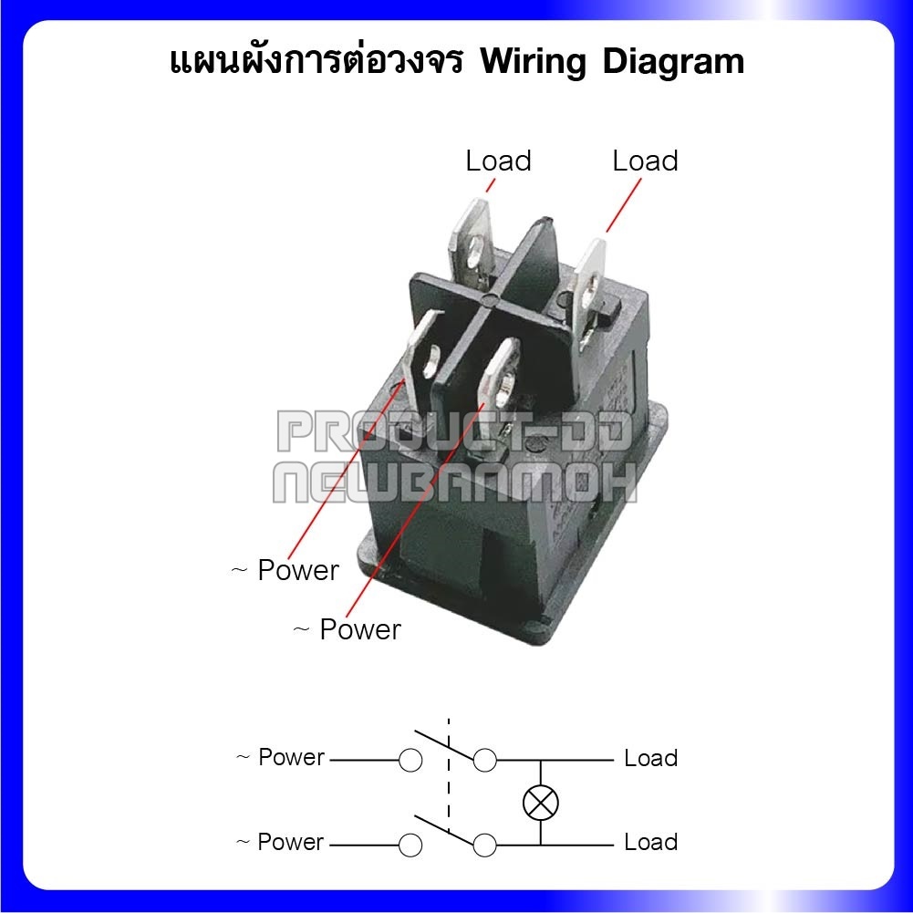 KCD1 สวิตช์กระดก ON-OFF (I-O) 4 ขา สีส้มมีไฟ 6A 250V AC