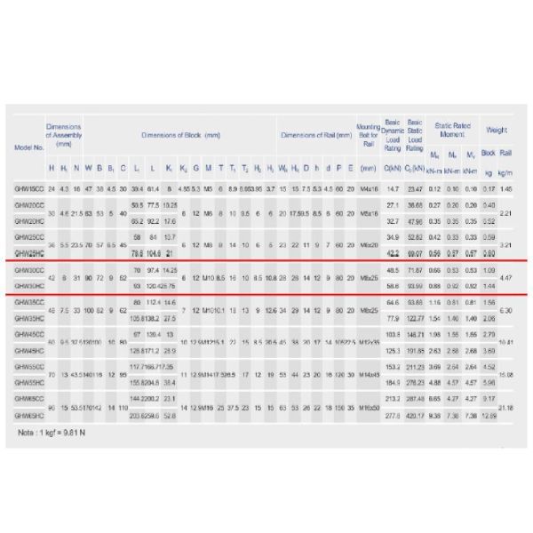บล็อกสไลด์ HGW30CC/GHW30CC Linear Bearing สำหรับราง HGR30