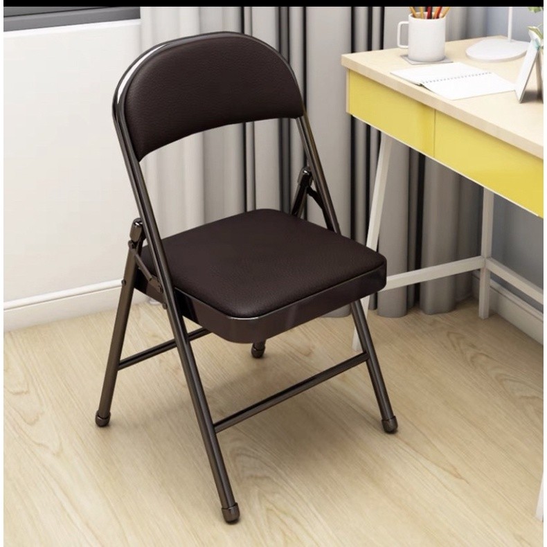 เก้าอี้เหล็กสีดำ เบาะหนัง พับได้ ขนาดเมื่อกาง 45x47x98 cm รับน้ำหนัก 150KG