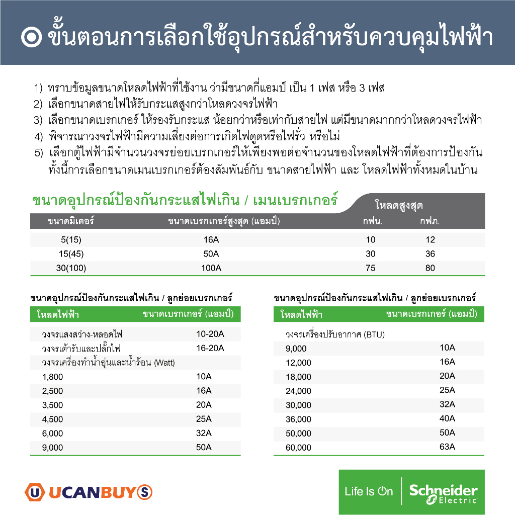 Schneider SET ตู้แสควร์ดี 6 ช่อง + เมนเบรกเกอร์ 50 แอมป์ + ลูกย่อยเซอร์กิตเบรกเกอร์ 32A/20A/16A ตู้ไฟ1 เฟส 2สาย 240โวลท์