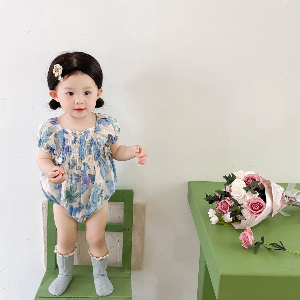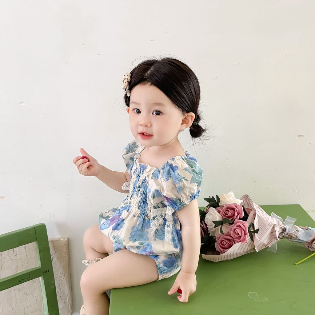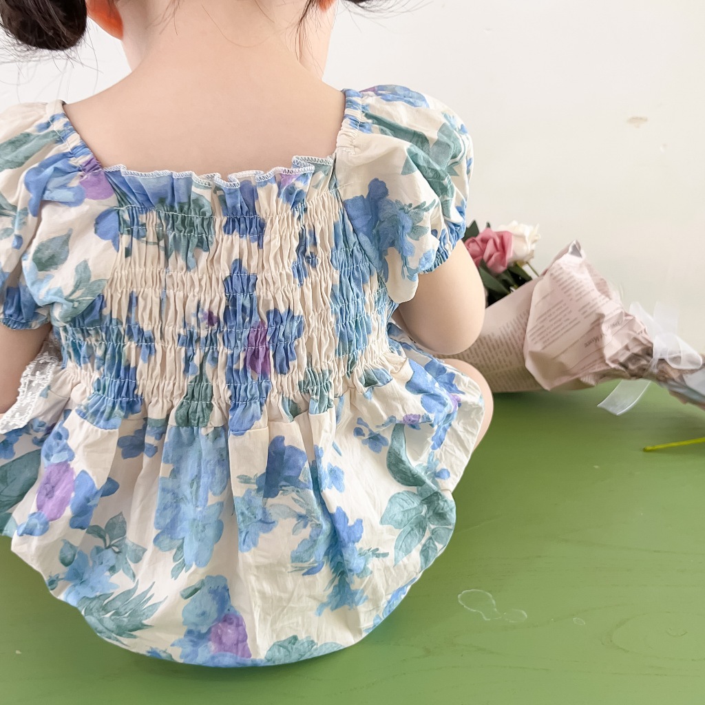 NT Baby - 045 (สินค้าพร้อมส่ง) ชุดเดรส จั๊มสูทรอมเปอร์ ลายดอกไม้ แฟชั่นฤดูร้อน สําหรับเด็กผู้หญิง