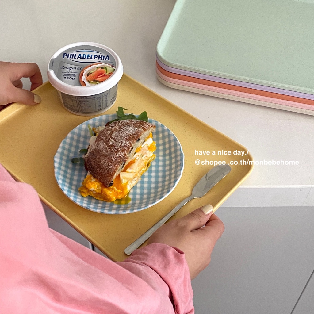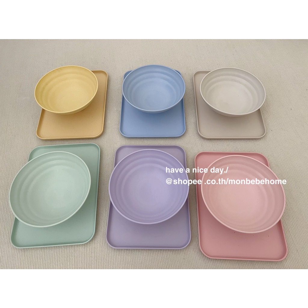ถาด ถาดพลาสติก เนื้อข้าวสาลีเพื่อสุขภาพ ที่ใส่อาหาร มี 7 สีให้เลือก พร้อมส่ง