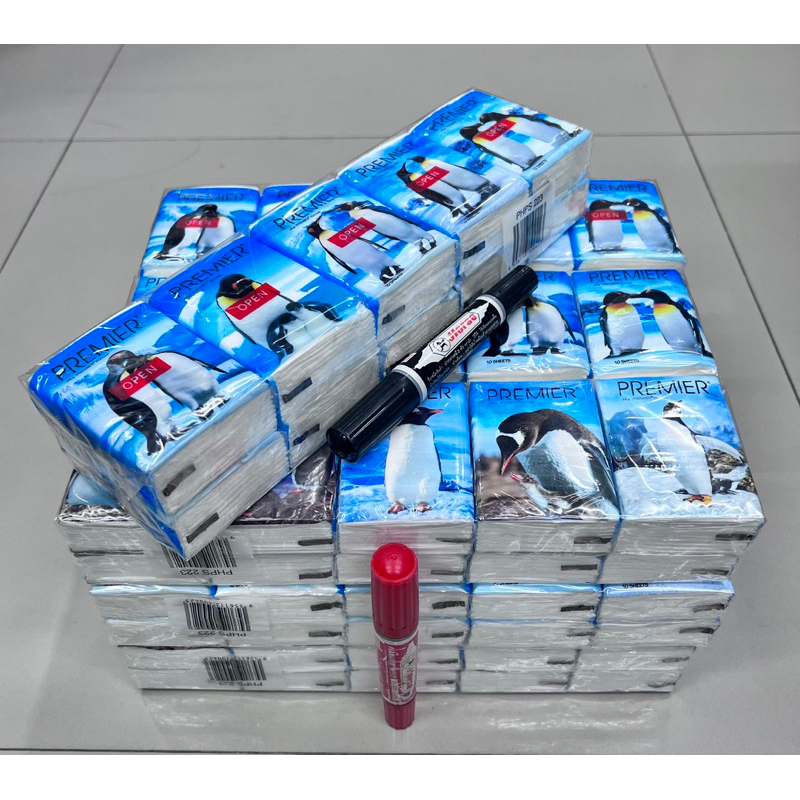 กระดาษทิชชู่แบบพกพา PREMIER ลังละ 10 แพ็ค *ขายยกลัง*