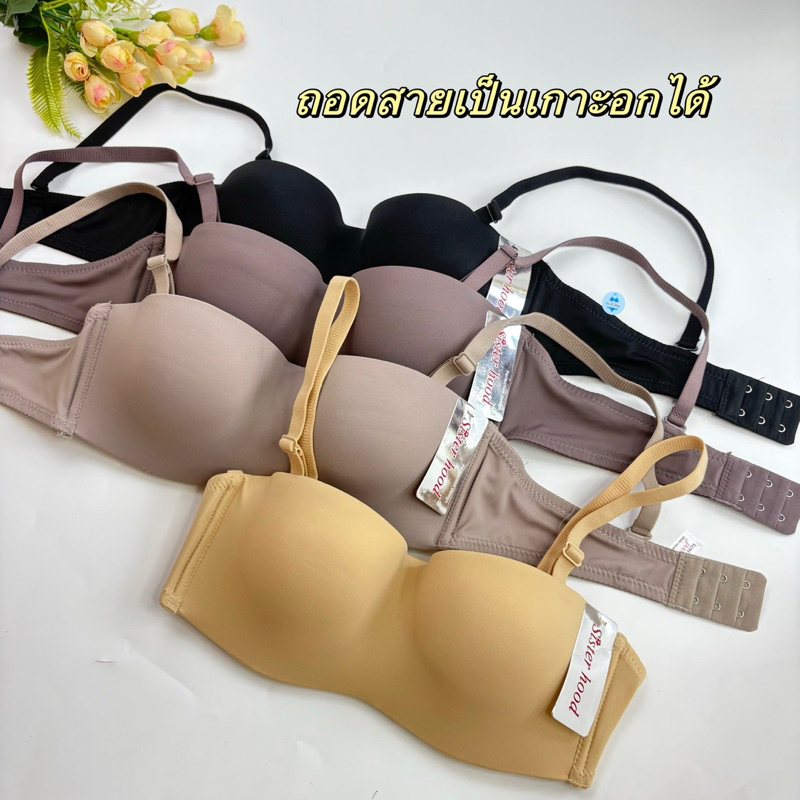 🌈9685#เสื้อในทรงเกาะอกฟองน้ำหนา 4Cถอดสายได้ ดันทรง Doom Doom เพิ่มคัพ Sister hood