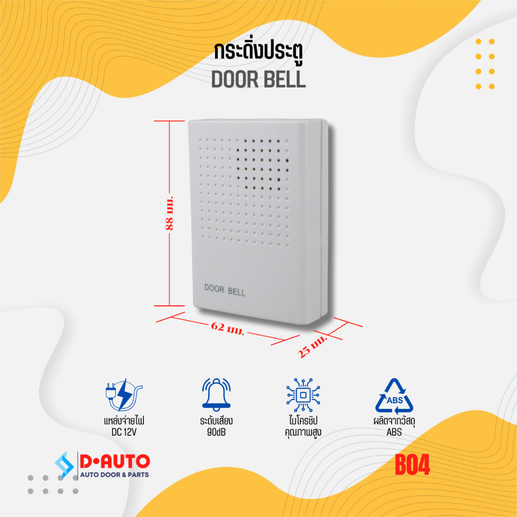 กระดิ่งประตู B04 Door Bell เสียงดัง 90dB ใช้ไฟ DC12V สำหรับบ้านและสำนักงาน | พร้อมส่ง