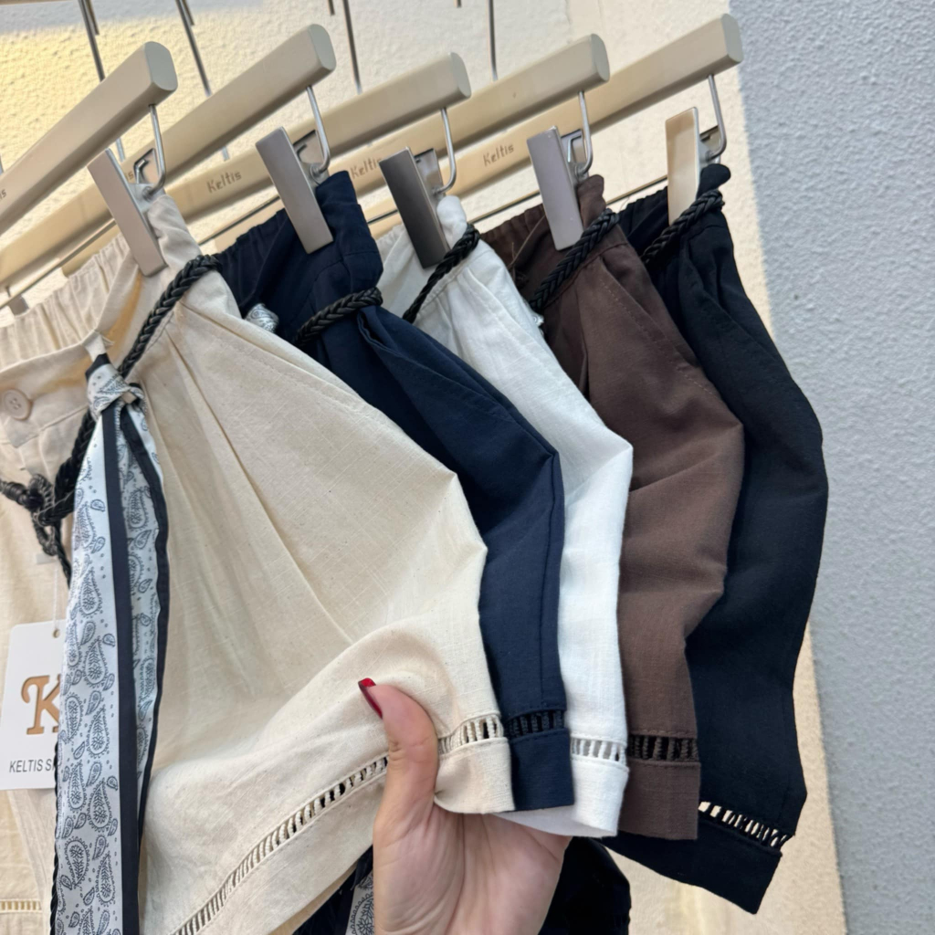 [ รุ่น ขาสั้นผูก ] เซ็ต 3 ชิ้น กางเกงขาสั้น พร้อมเข็มขัดถัก และผ้าผูก