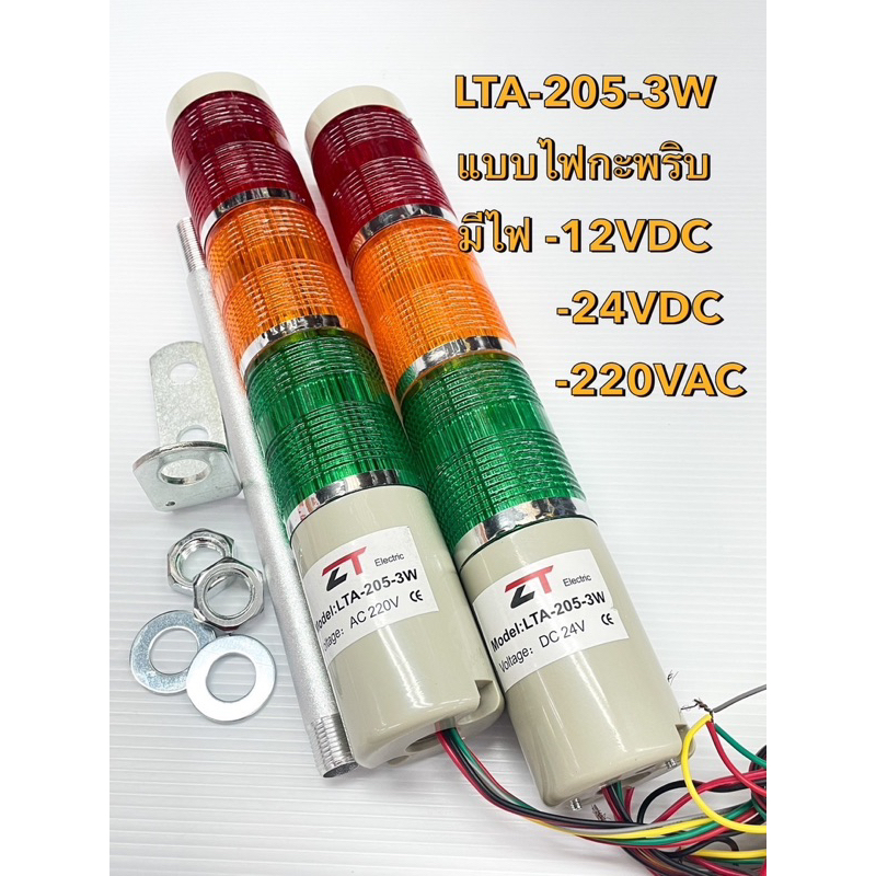 (แพ็ค1ตัว) LTA-205-3W ทาวเวอร์ไลท์ 3ชั้น แบบไฟกะพริบ ไม่มีเสียงเตือน มีไฟ 12VDC,24VDC,220VAC ให้เลือก สัญญาณเตือน