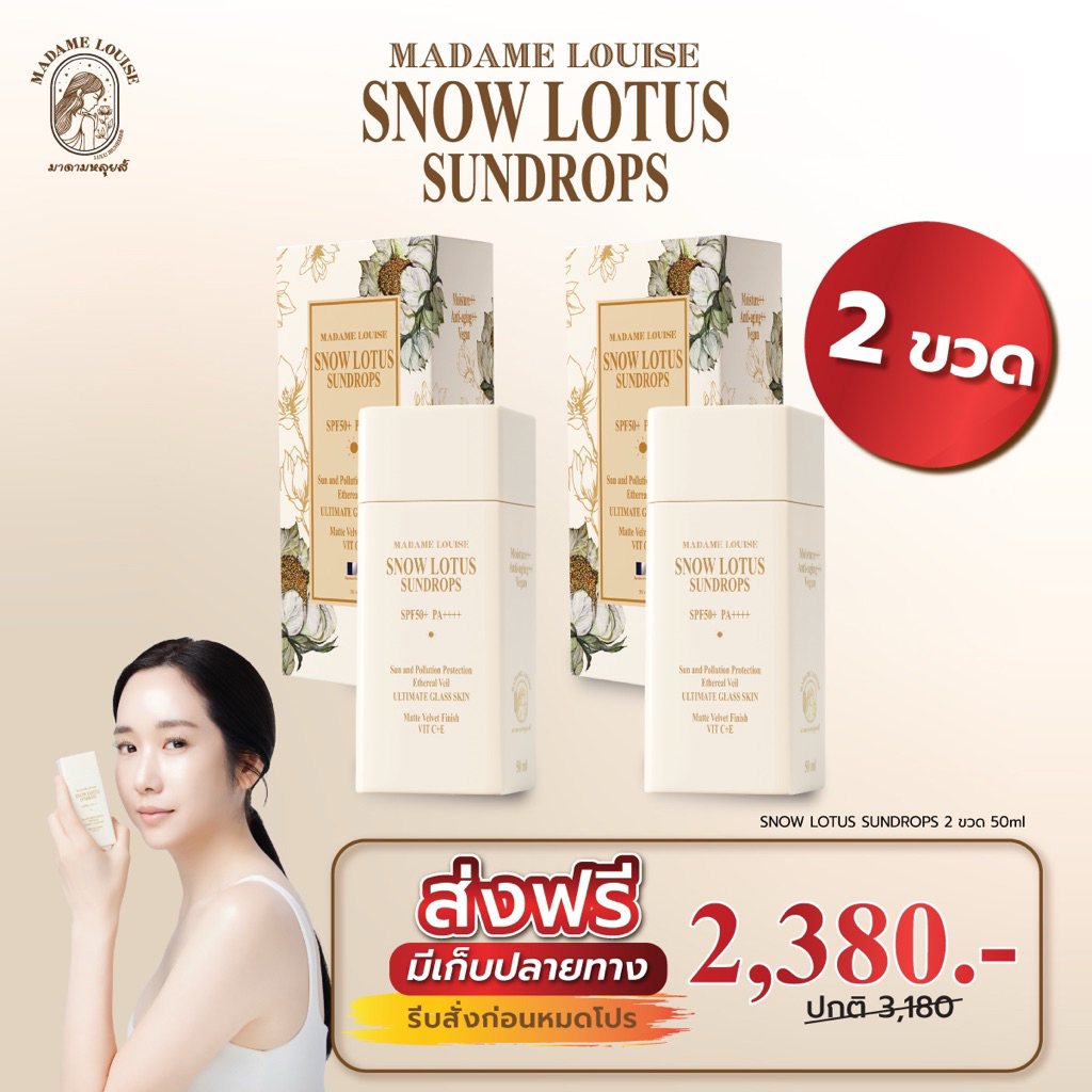 (ส่งฟรี!) ครีมกันเเดดบัวหิมะมาดามหลุยส์ สโนว์ โลตัส ซันดรอป spf50+ พีเอ++++ กันแดด Madame Louise