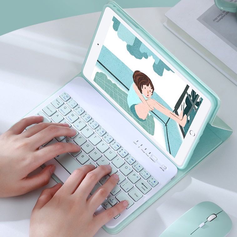 (เคสซองหนัง +คีย์บอร์ดไทยอังกฤษ)สำหรับไอแพด for: Air4/5 10.9 Gen5/6 9.7 2019 Gen7/8/9 10.2 Air3 10.5 แป้นพิมพ์ Bluetooth