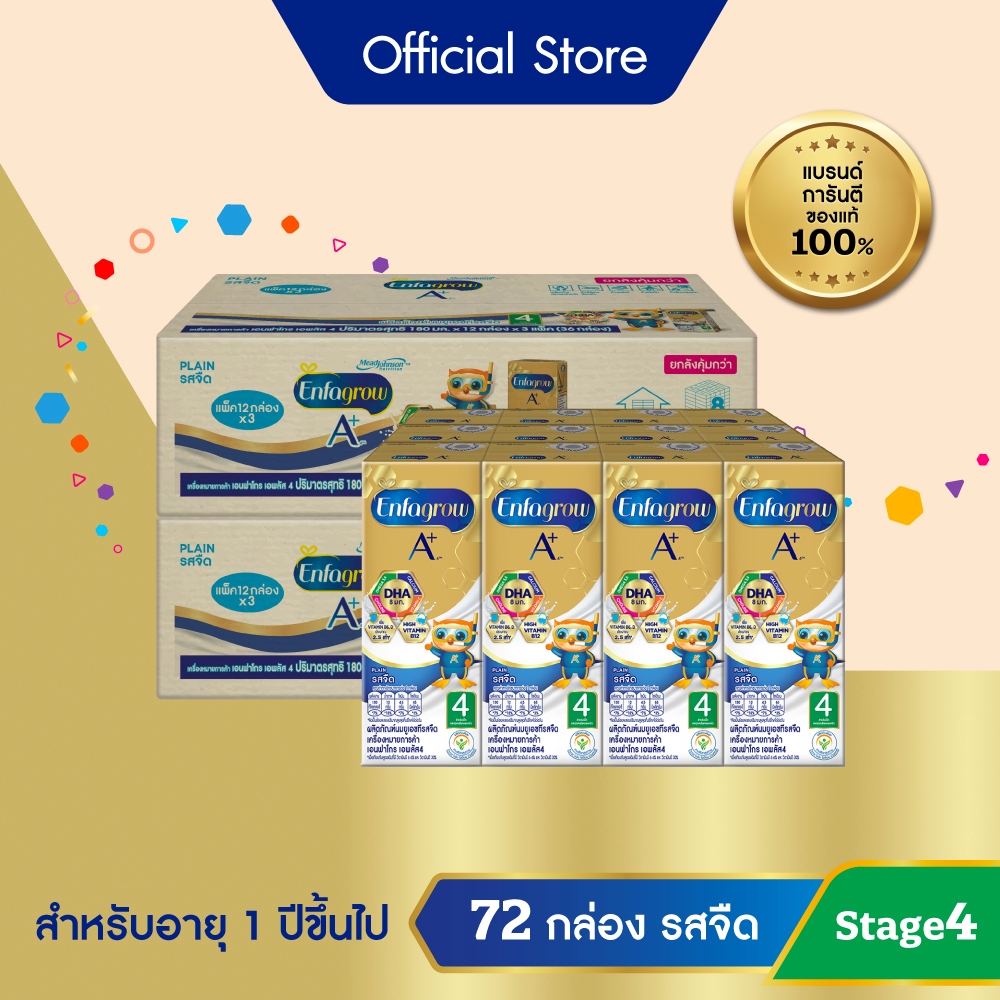 นมกล่อง เอนฟาโกร ยูเอชที สูตร4 ชนิดจืด (36 กล่อง) x2 ลัง Enfagrow UHT Stage4 Plain (36 boxes) x2 cases