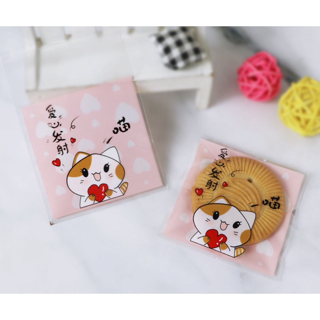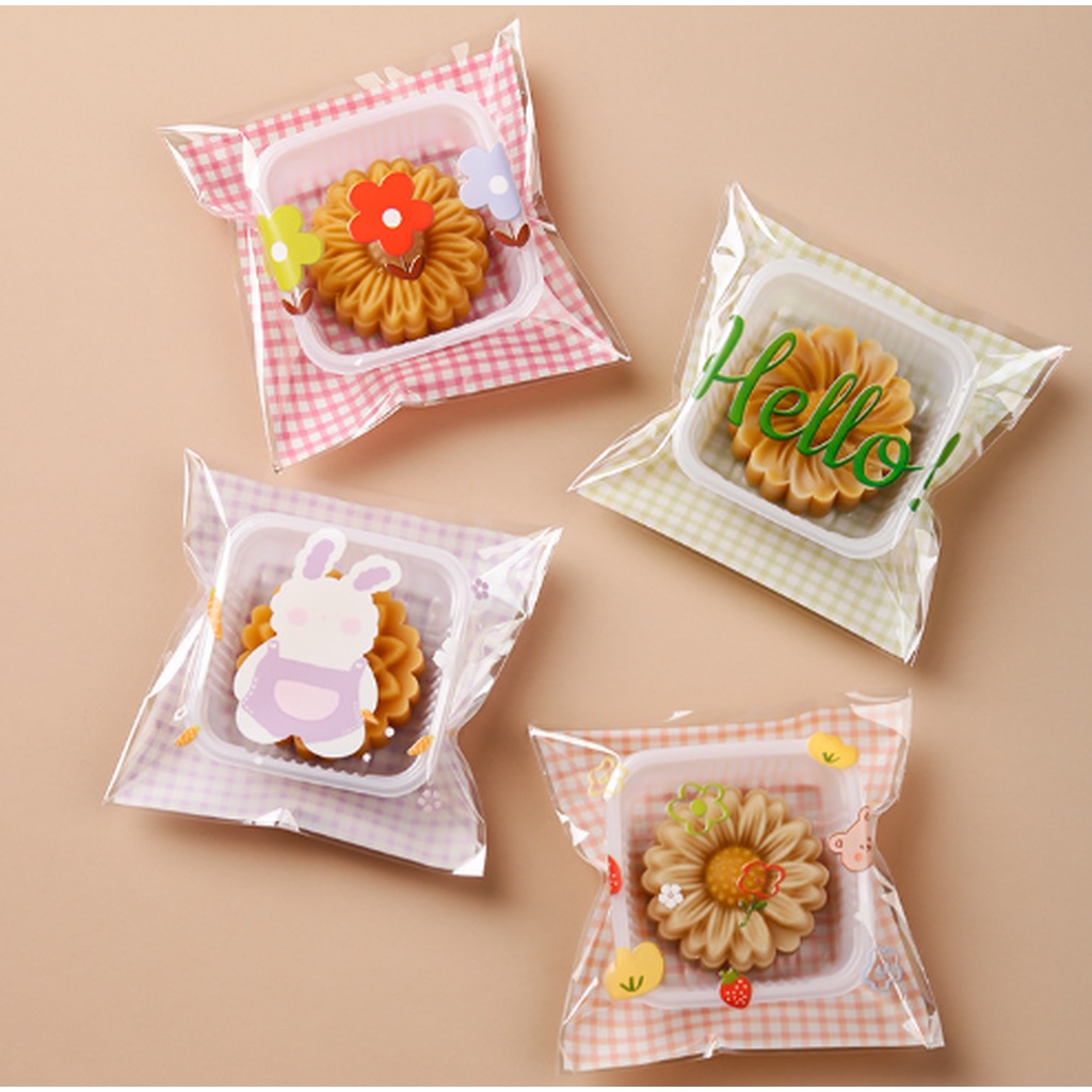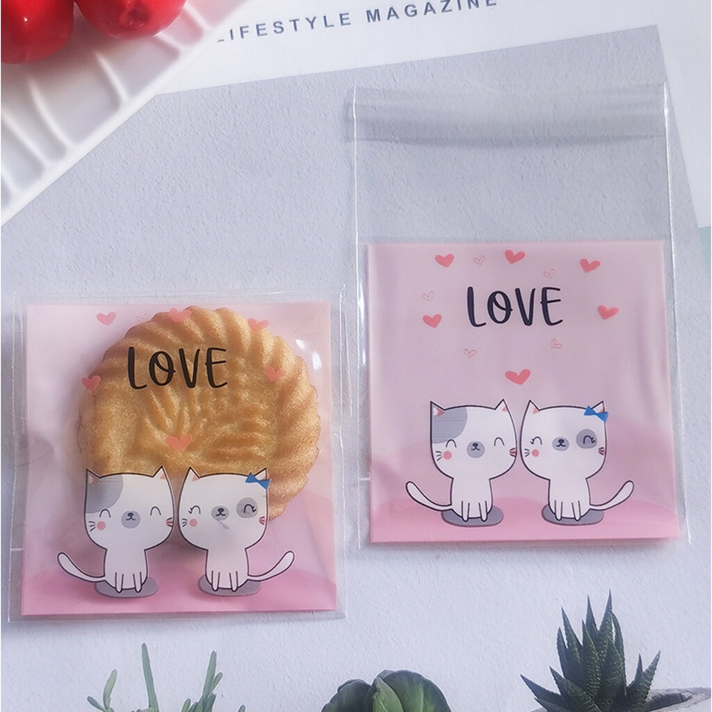ถุงคุ๊กกี้ ฝากาว ขนาด 10x10 ซม. (95-100 ใบ) ลายพิเศษ ชุดที่ 2/2