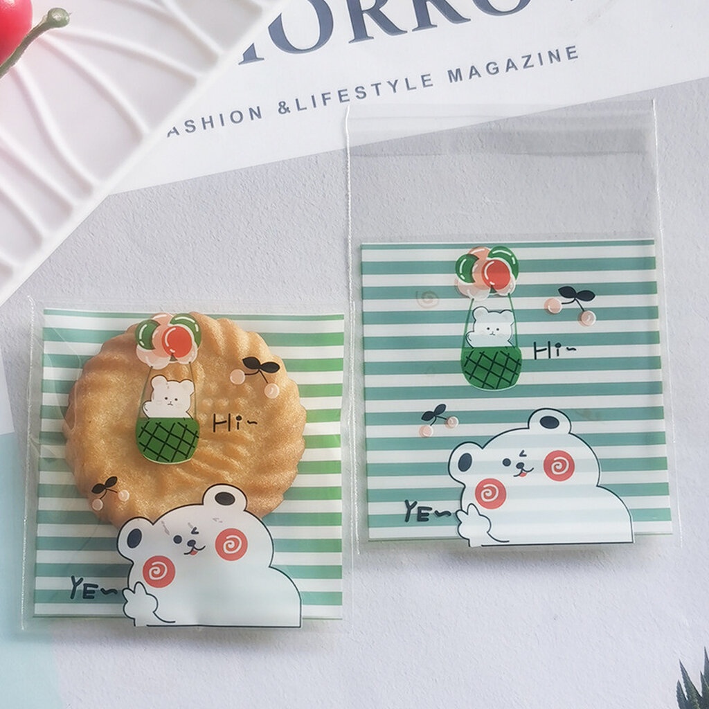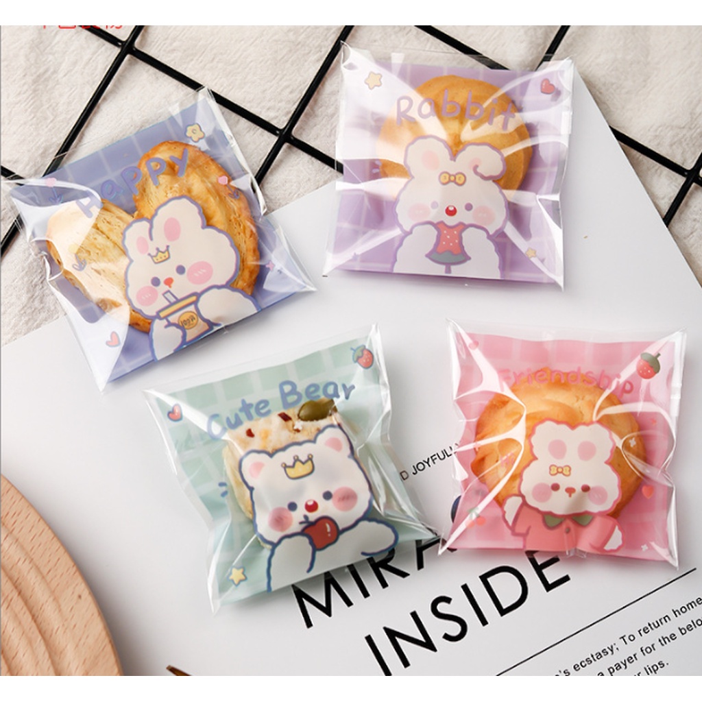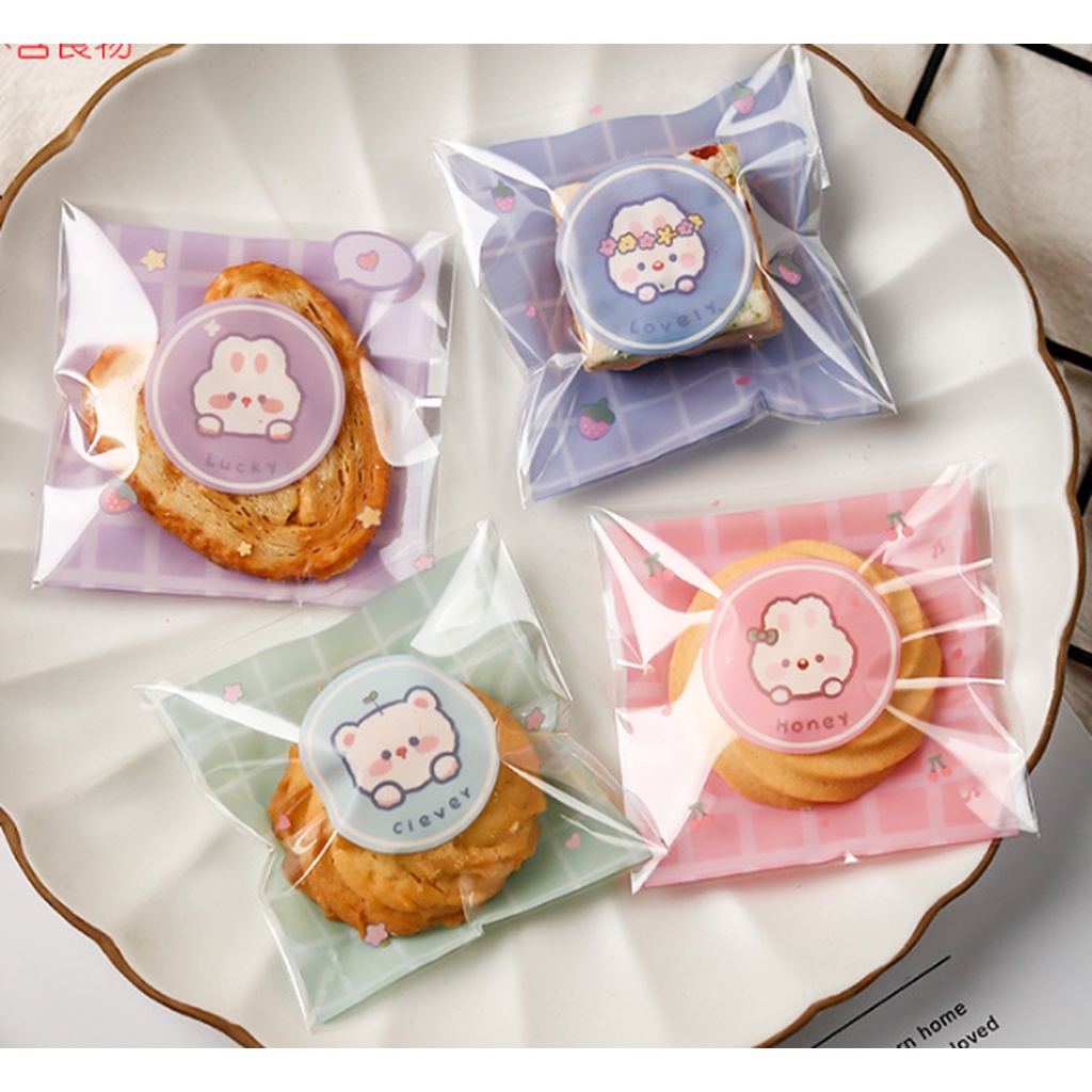 ถุงคุ๊กกี้ ฝากาว ขนาด 10x10 ซม. (95-100 ใบ) ลายพิเศษ ชุดที่ 2/2