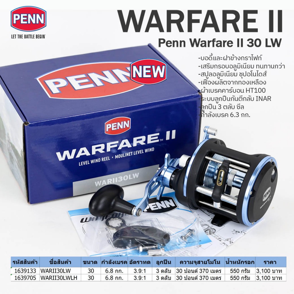 รอกหน้าดิน รอกทรอลลิ่ง รอกเบท เพ็นน์ วอร์แฟร์ 2 ขนาด 15-20-30 LW แขนซ้ายและขวา / Penn Warfare II 15-20-30LW