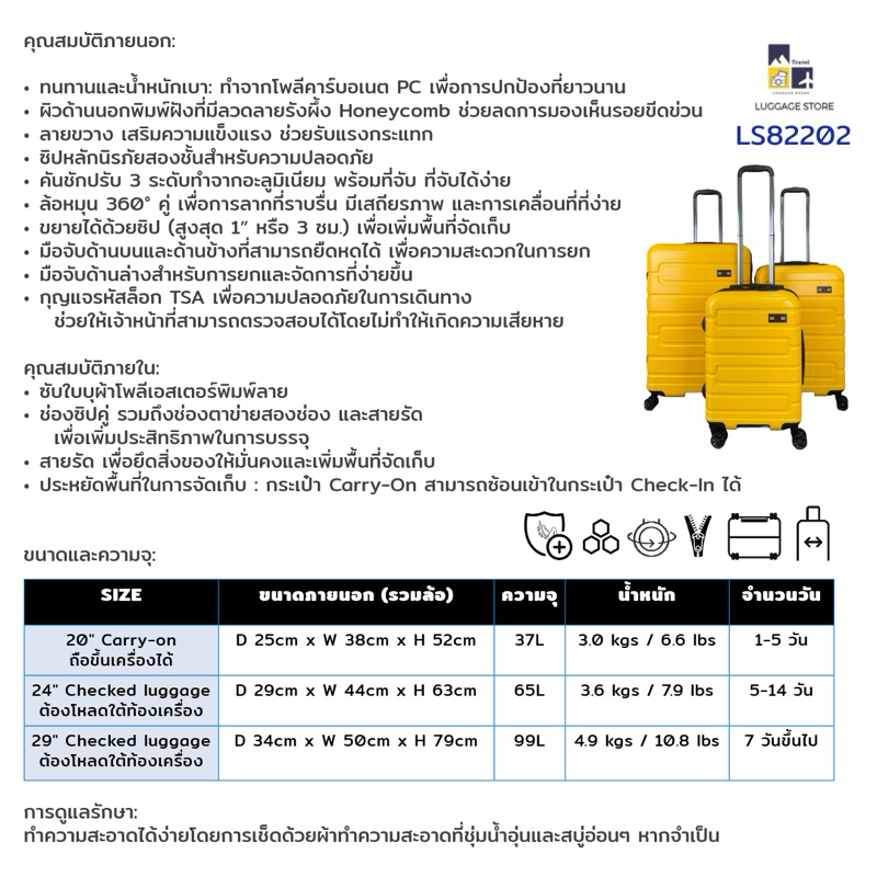 SAINT+2009 LS82202 กระเป๋าเดินทาง20-24-29นิ้ว pc100% ล้อคู่4ล้อ ซิปขยาย ซิป2ชั้น รับประกันอะไหล่1ปี Luggage store