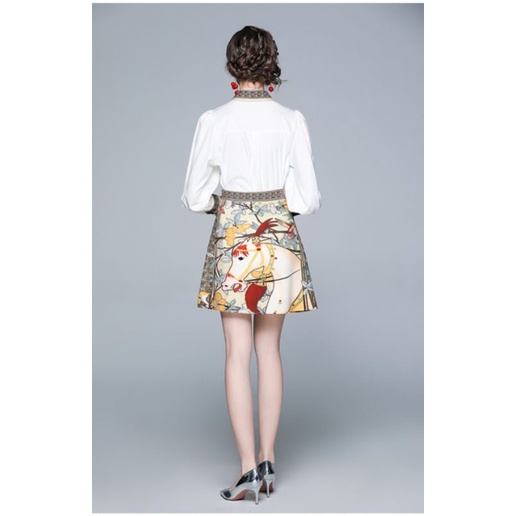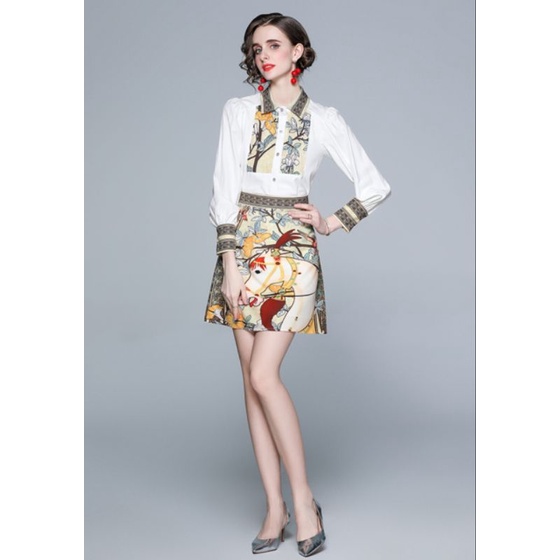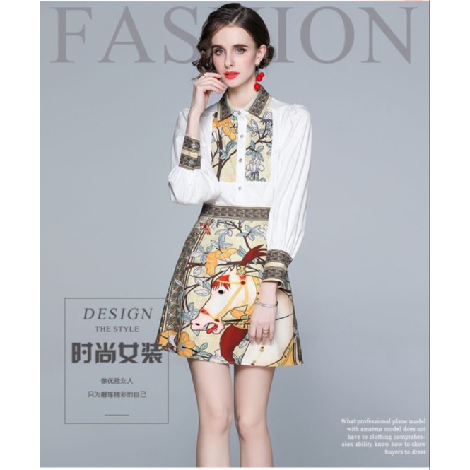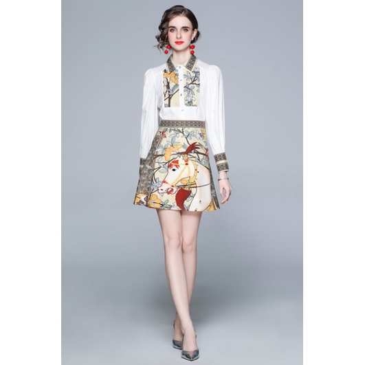 ชุดเสื้อแขนยาว+กระโปรงลายม้า