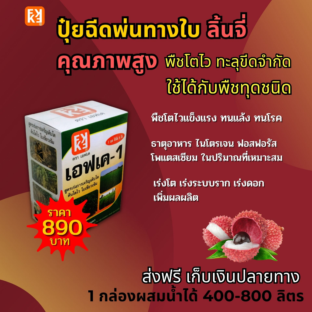 ลิ้นจี่ โตไว ใบเขียว ผลใหญ่ น้ำหนักดี ฉีดพ่นปุ๋ย FK-1 ต้นทุนต่อไร่ถูกกว่าปุ๋ยเม็ด 4เท่า เพิ่มผลผลิตสูงสุด 20เปอร์เซ็นต์